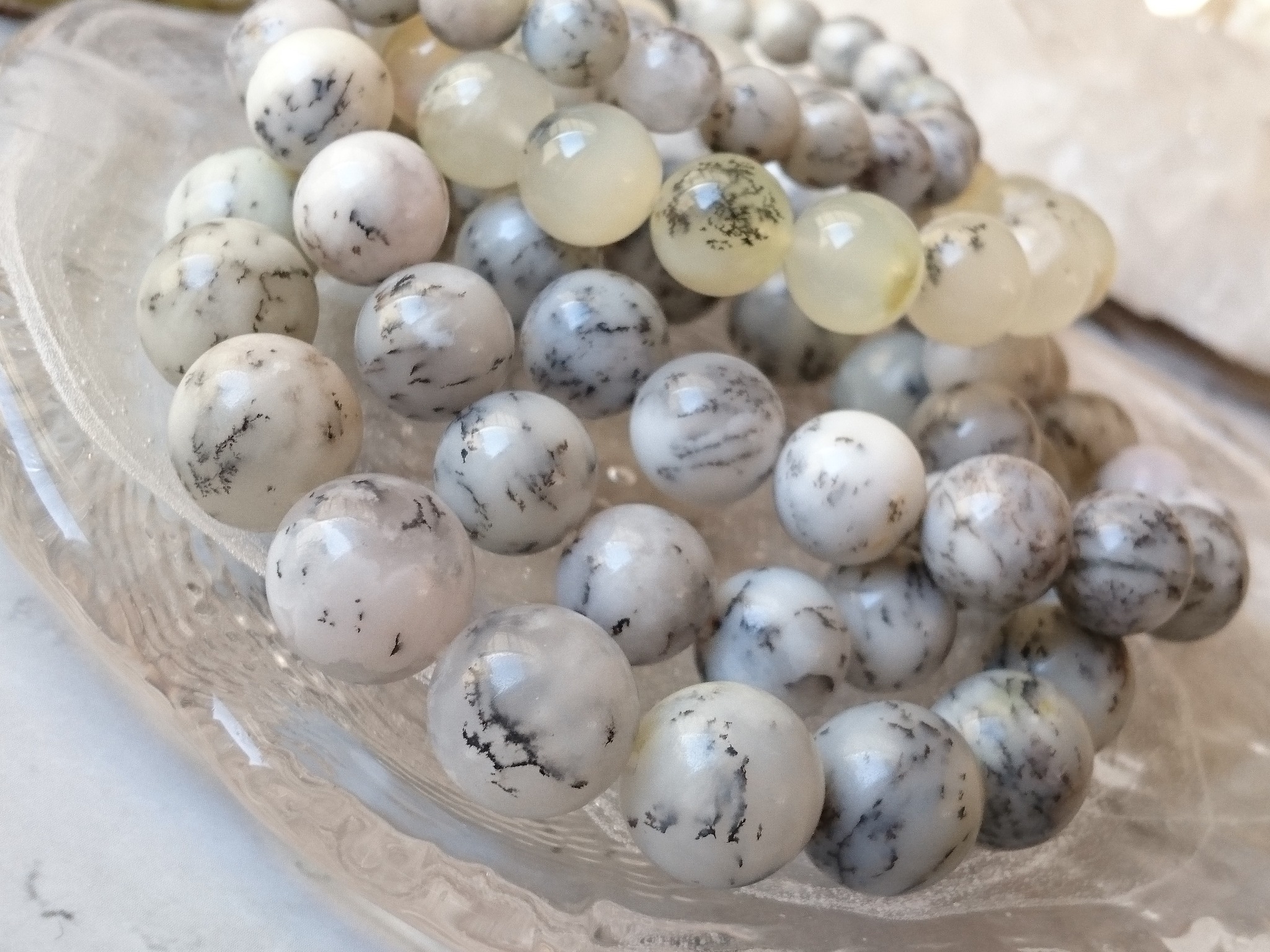メルリナイトは、遊色効果を持たないコモンオパールに、樹枝のようなデントライトが入ったストーンです。