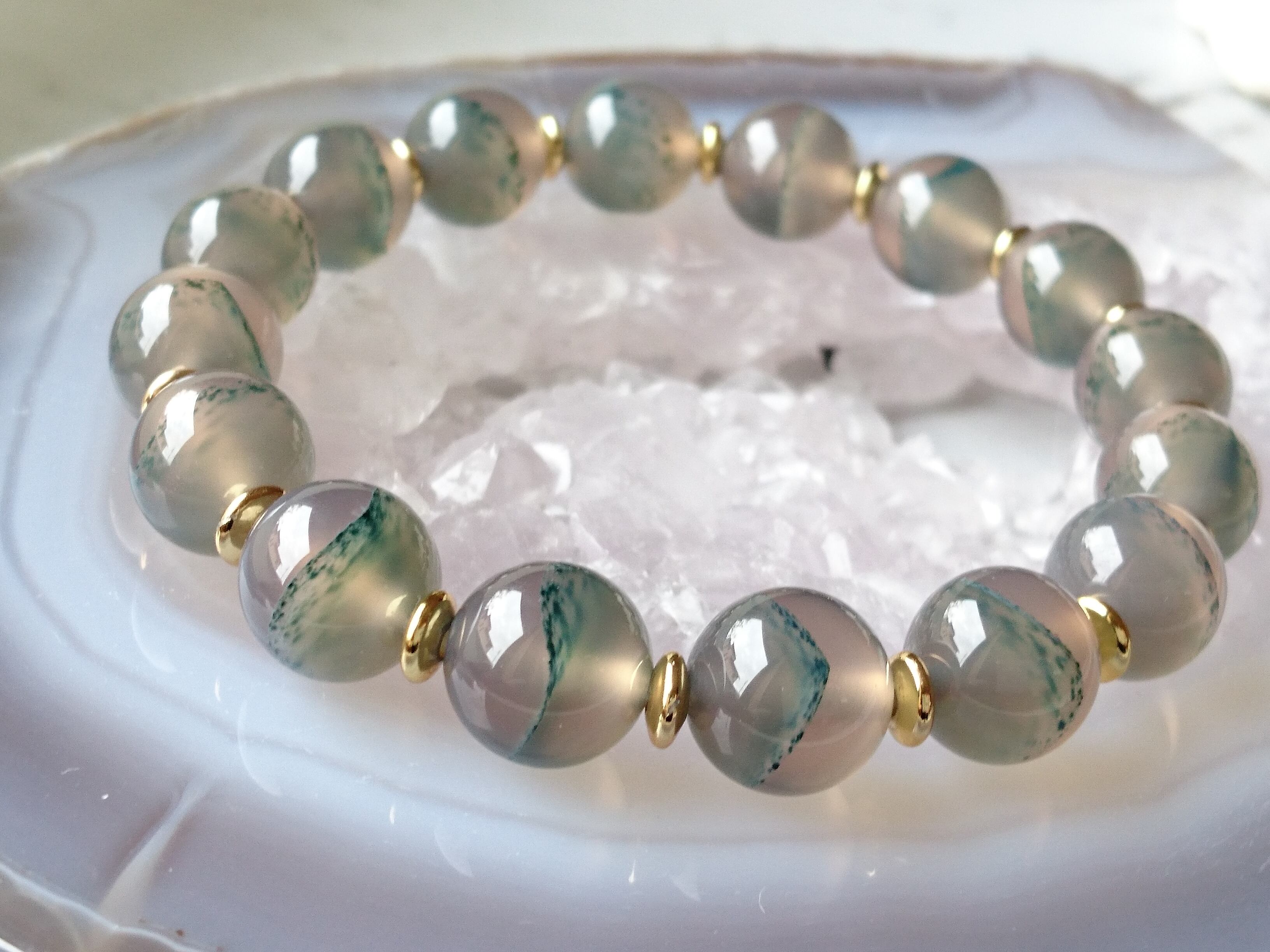 高品質✨グリーンシナバーカルセドニー✨ブレスレット シナバー天珠