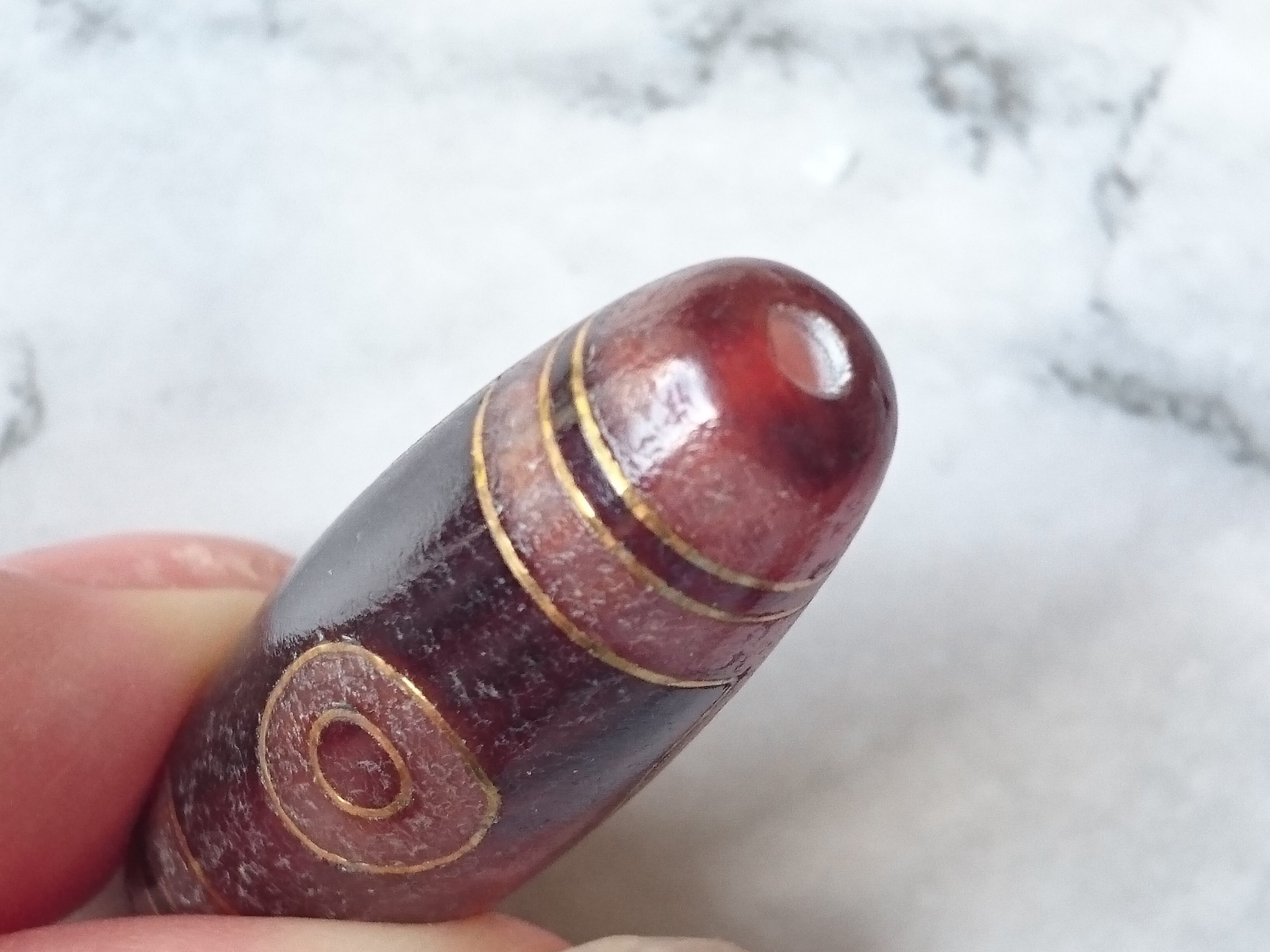 「福・禄・寿」つまり幸せとお金と長寿を叶える天珠。特に財運の向上に良いと伝えられおり、意のままに一切の富を得る霊力があるといわれています。 また癒しの力が強く失敗からの回復力も与えてくれるといわれています。