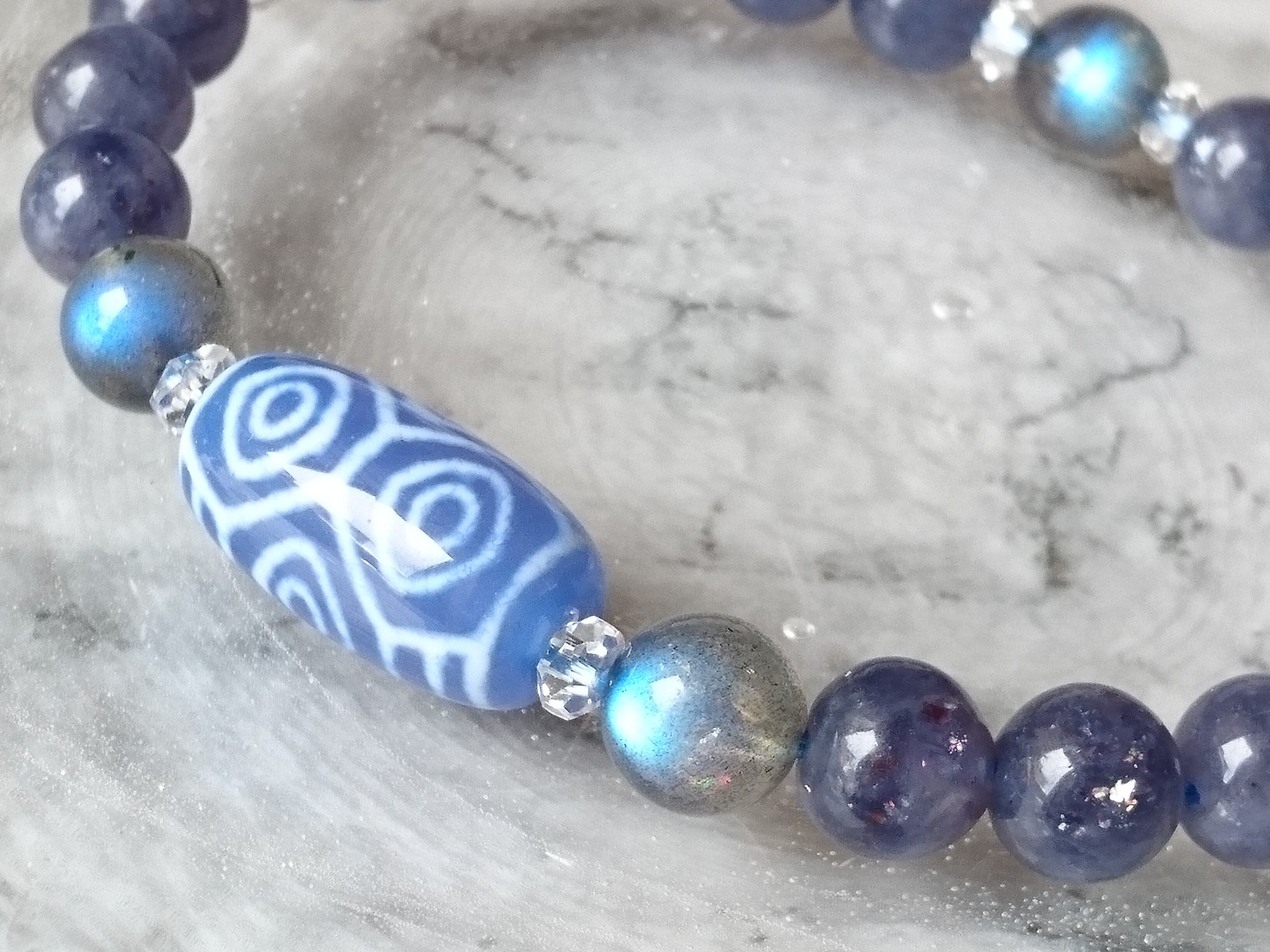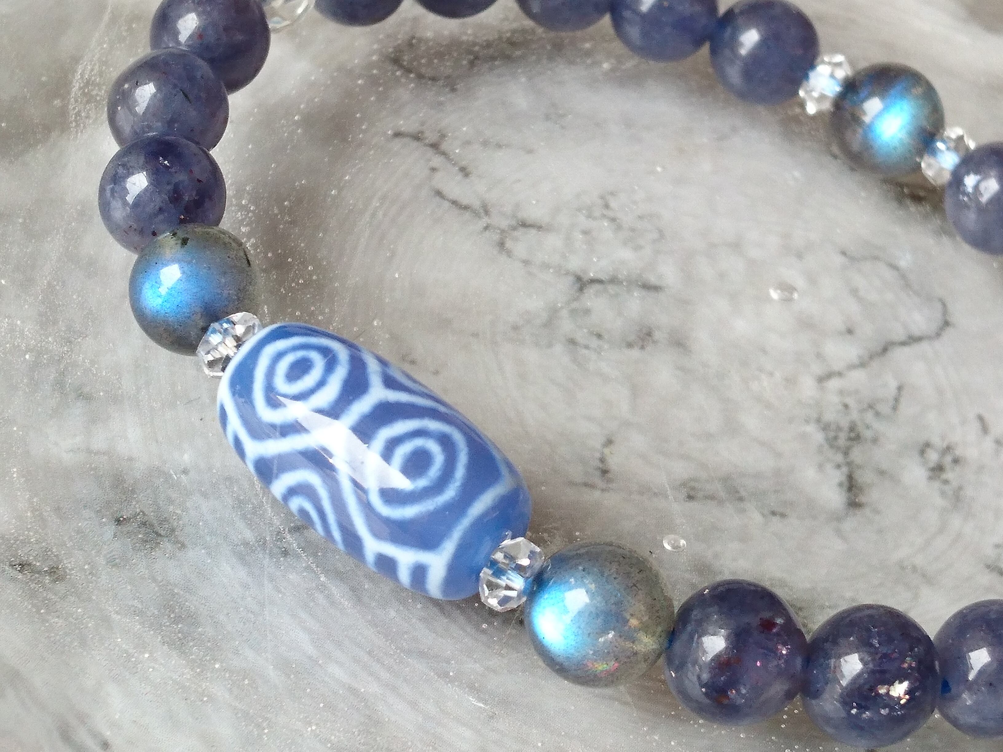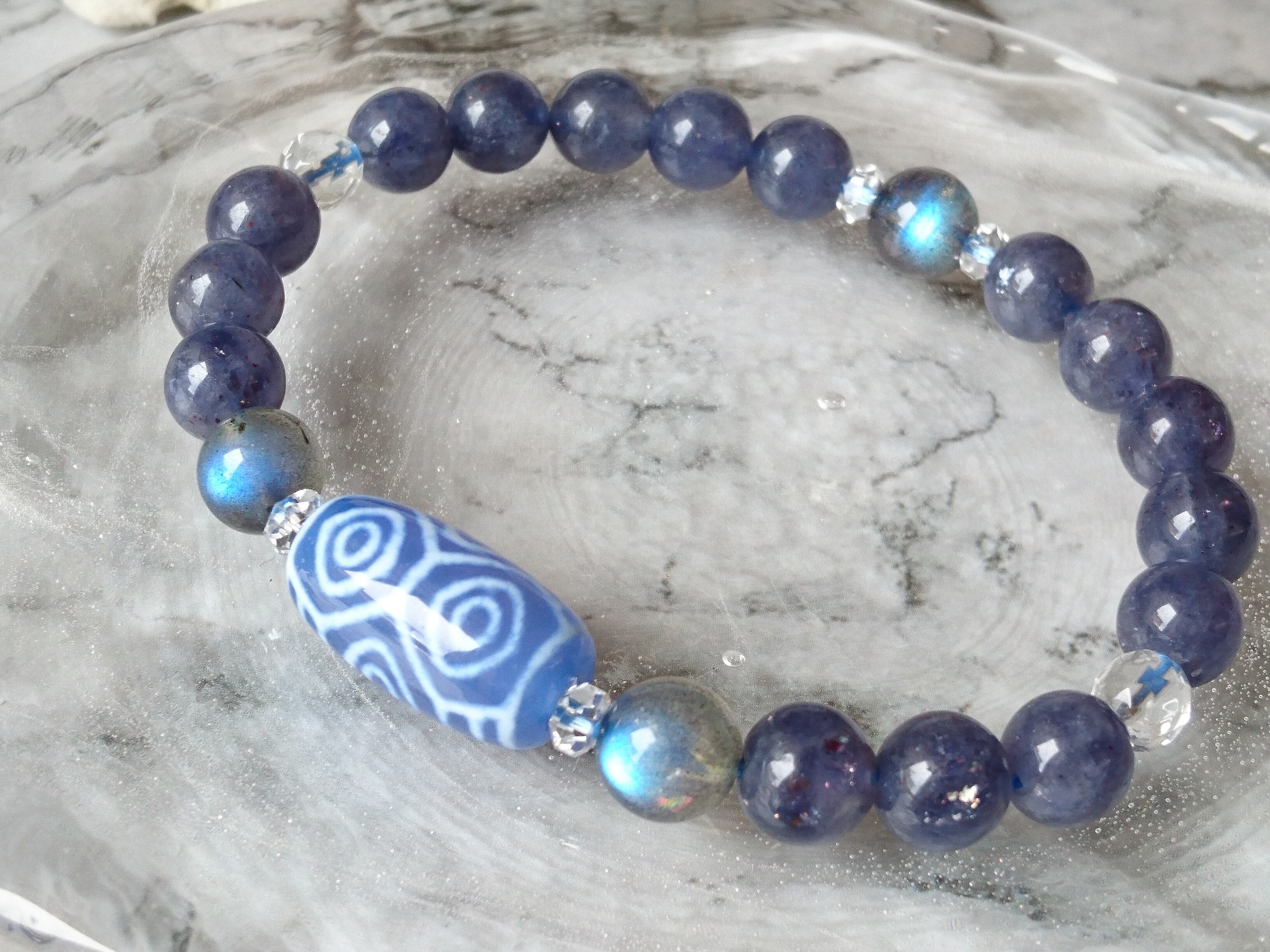 青玉髄龍眼天珠✨ストロベリーアイオライト✨ブレスレット