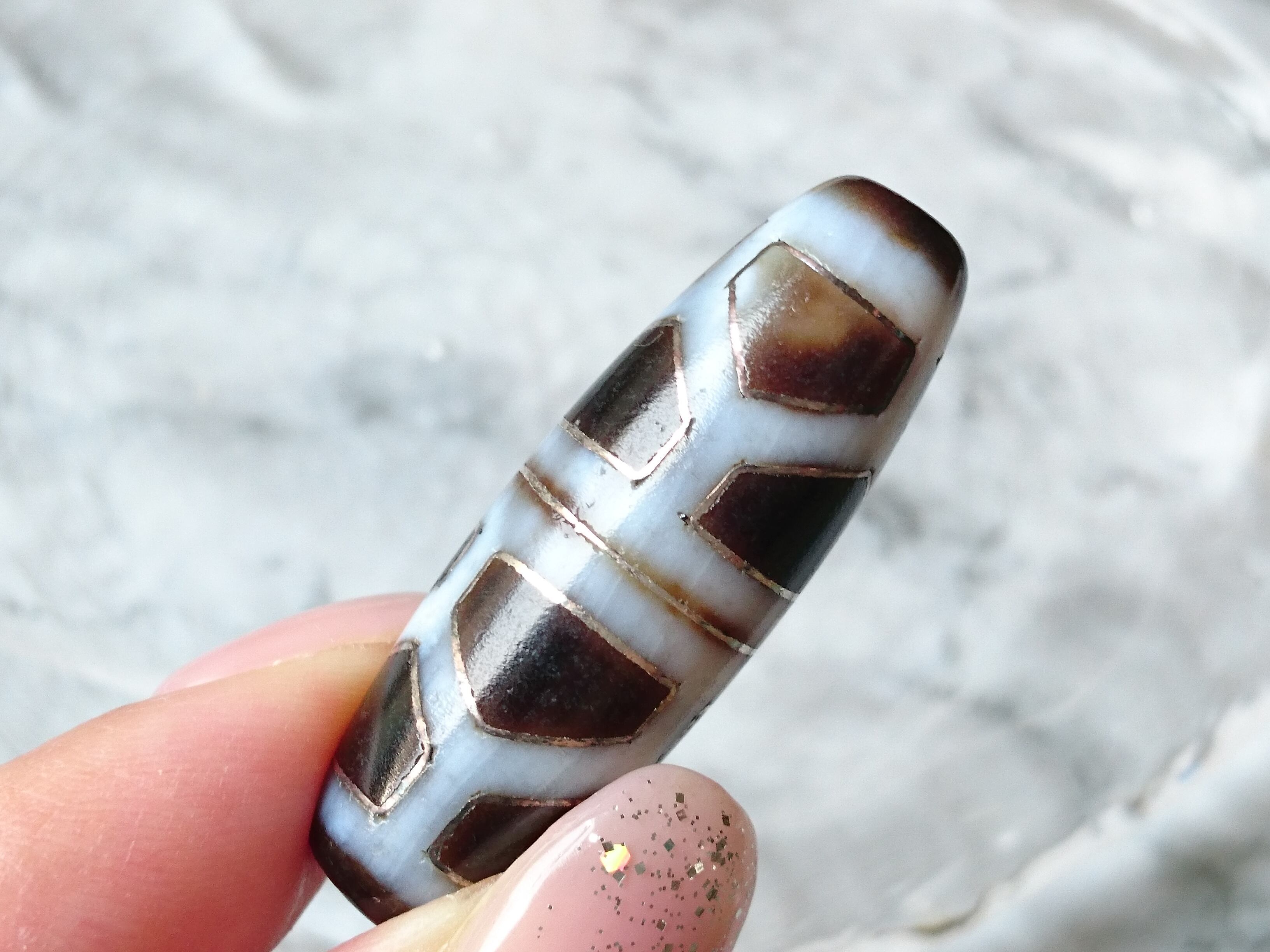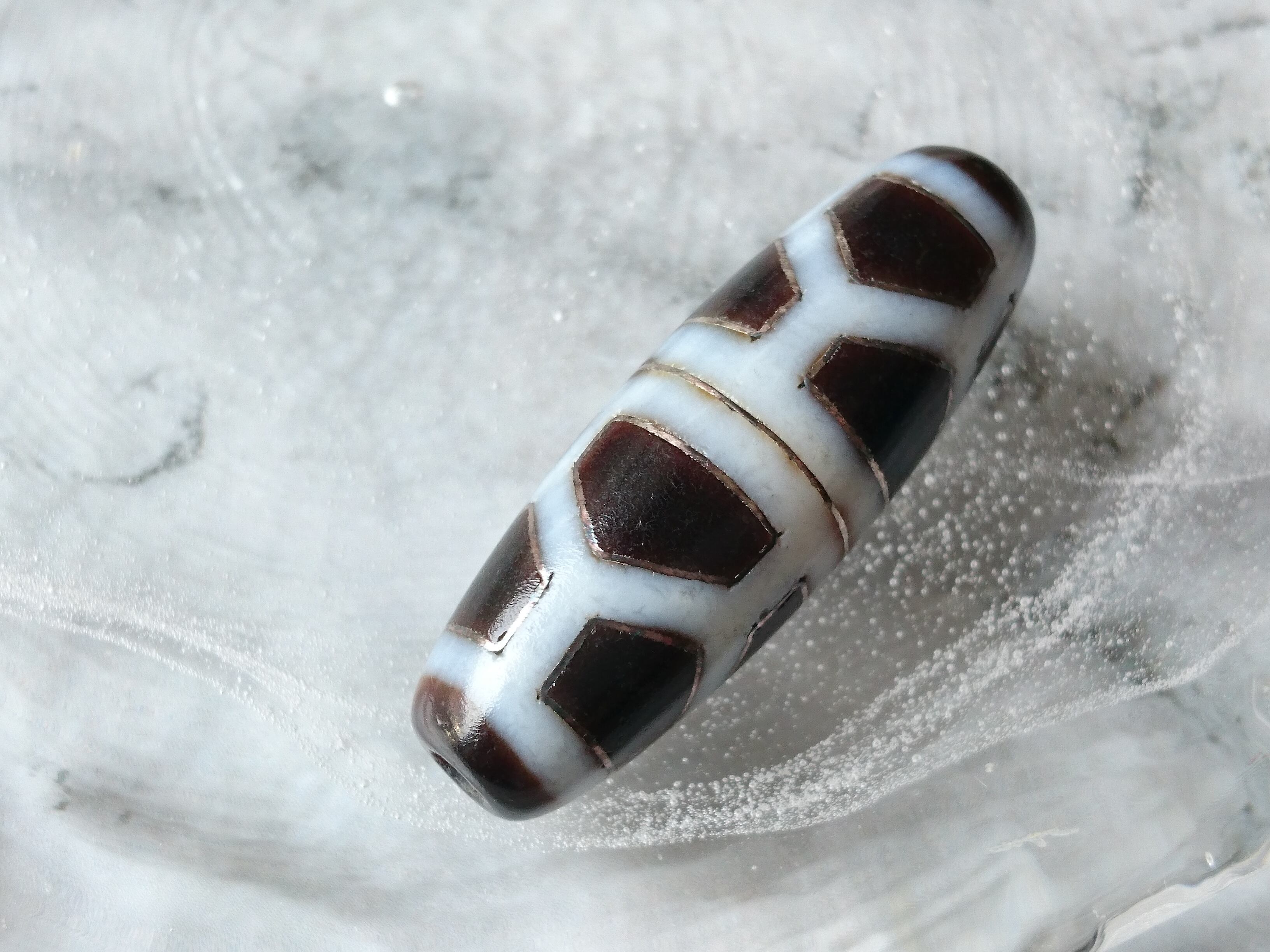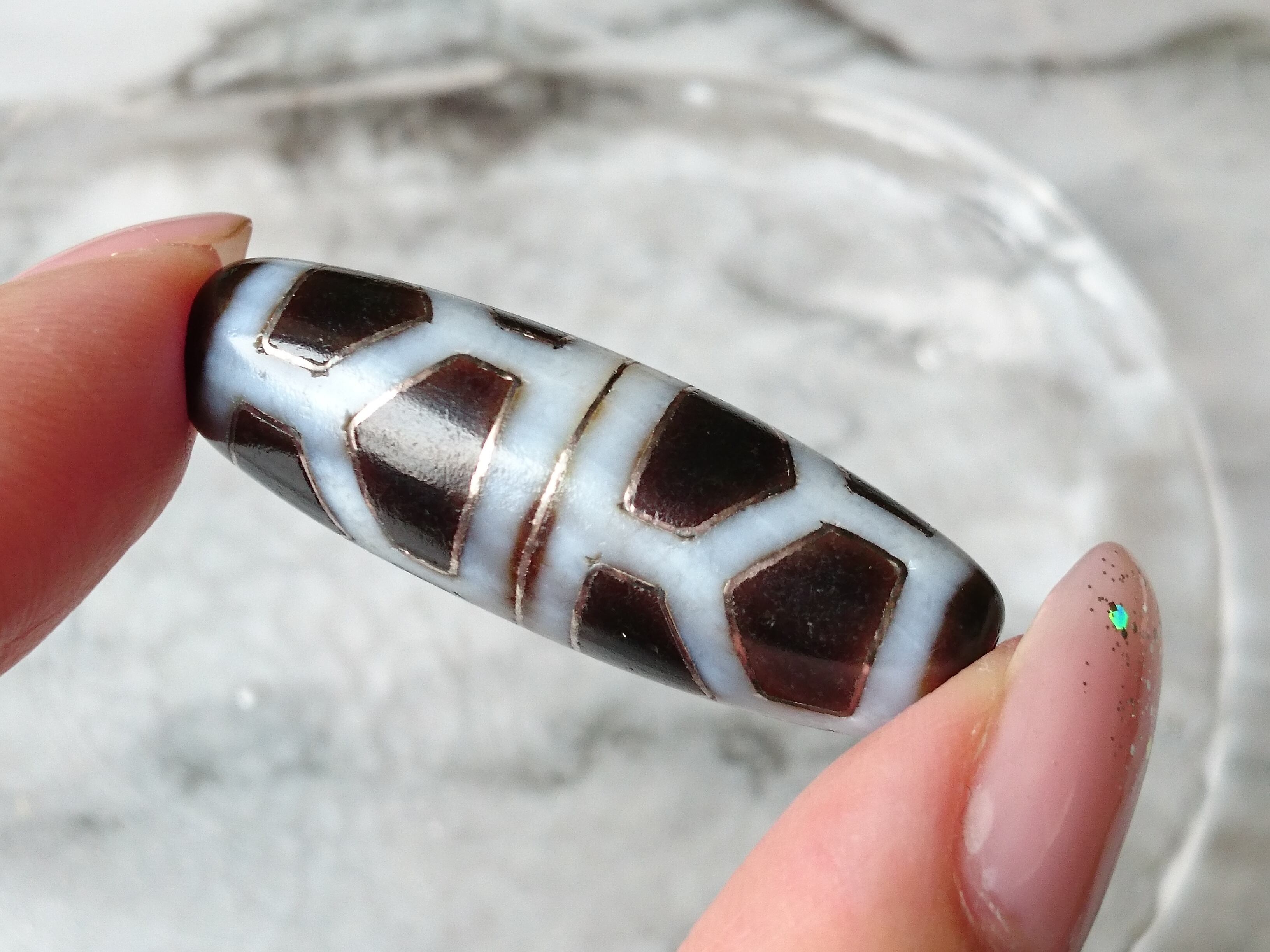 紋様が亀の甲羅になっている天珠。長寿をもたらすと共に邪気を跳ね除け、多くの吉事を招くと云われている。