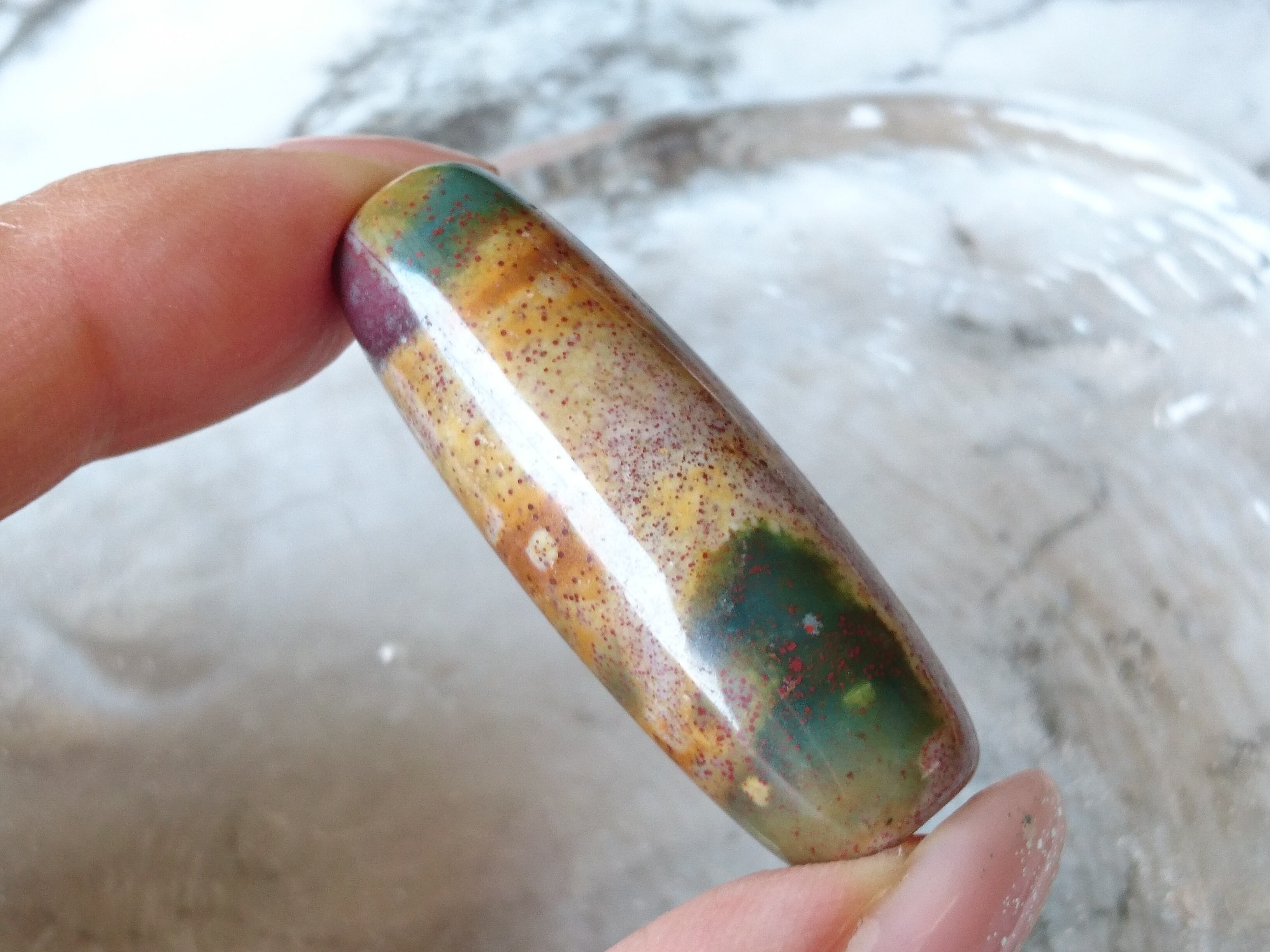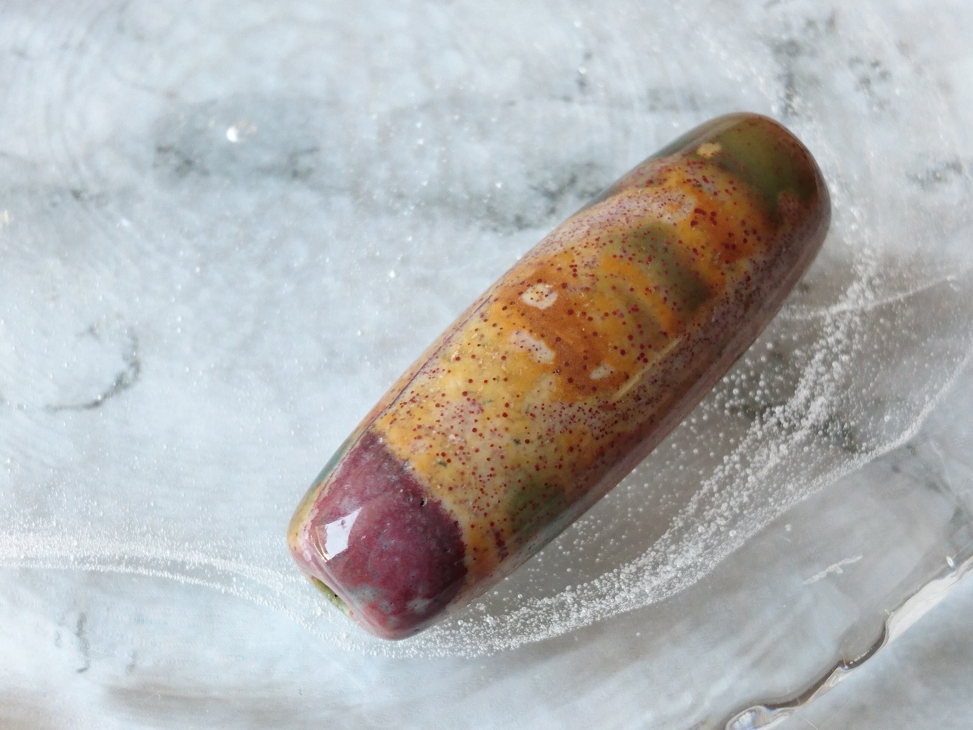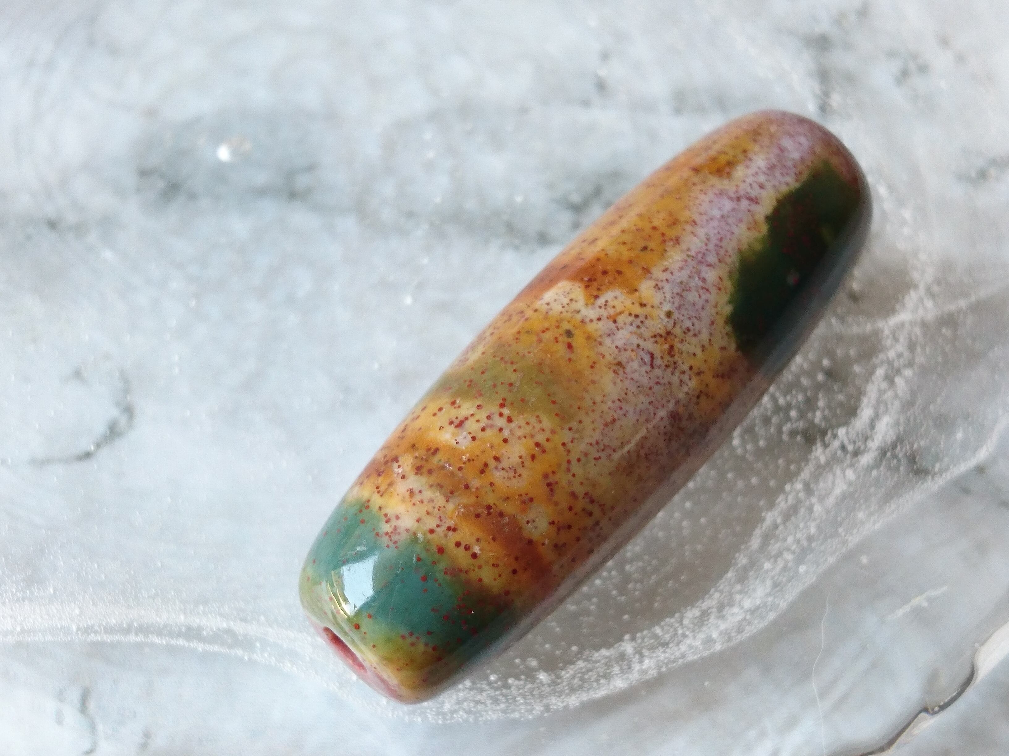 全面に朱砂の出たグリーン瑪瑙の無限天珠です✨