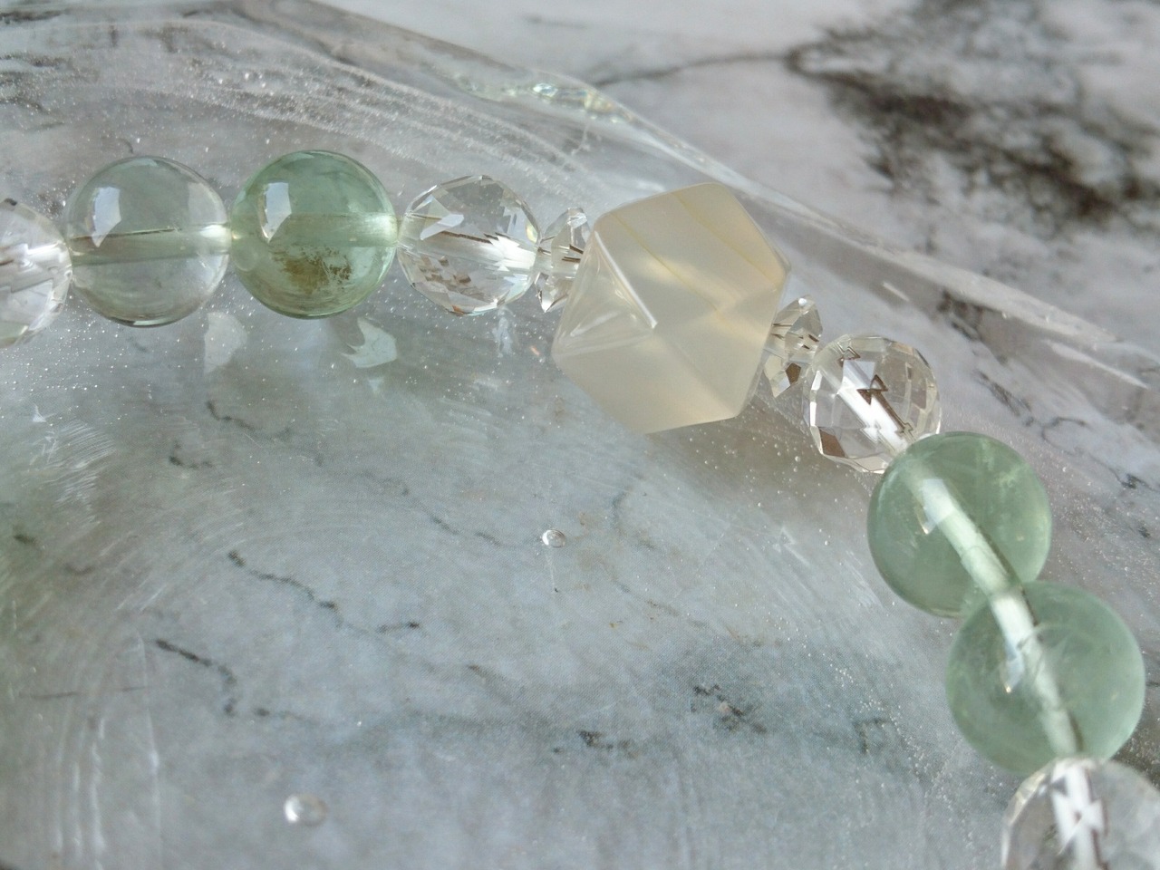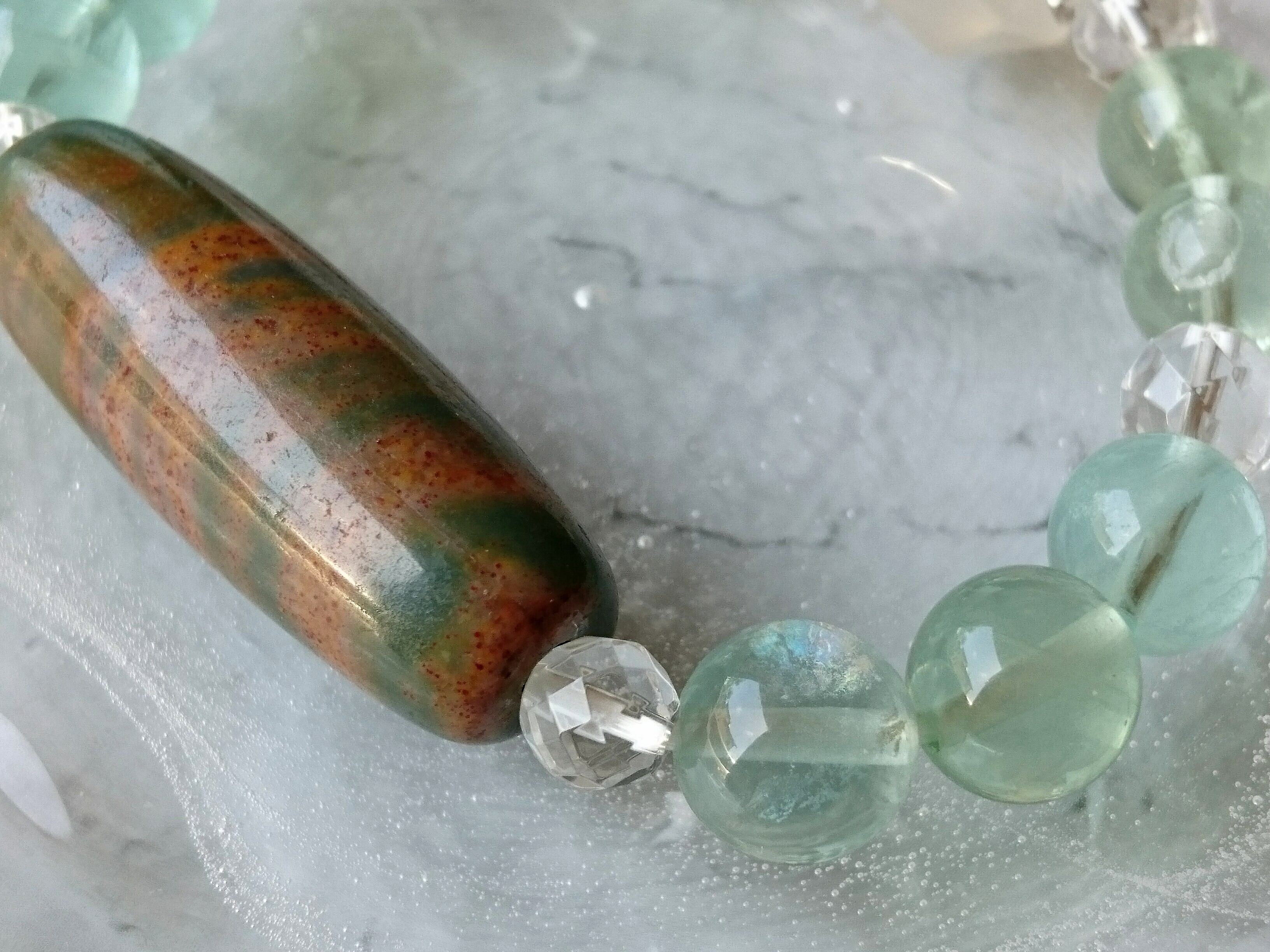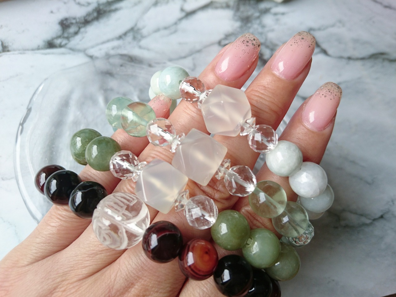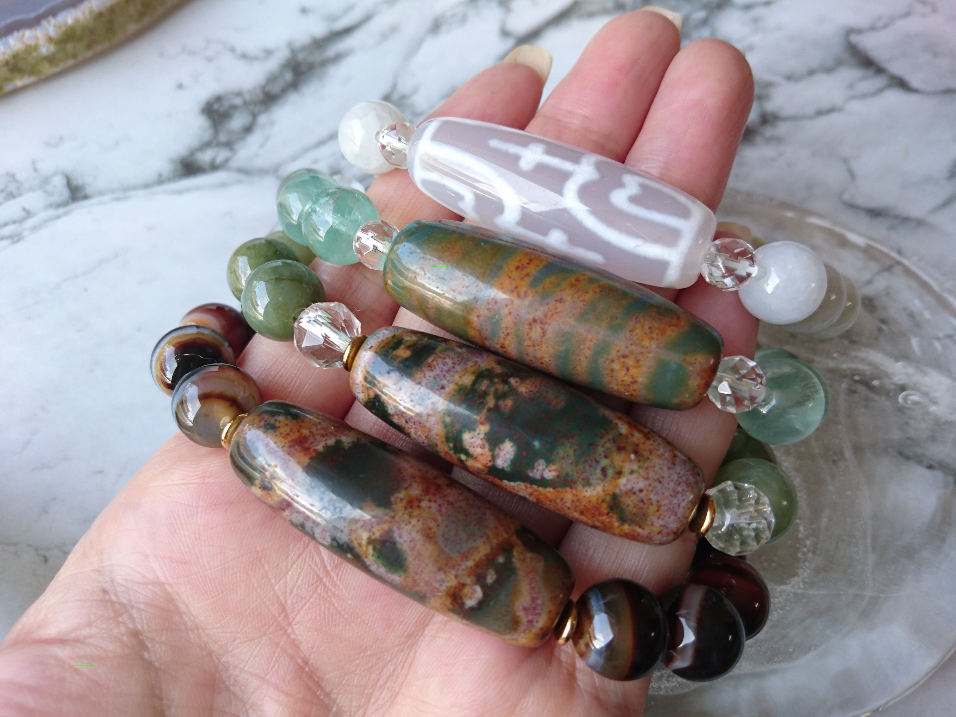 全面に朱砂の出たグリーン瑪瑙の無限天珠です✨