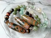 全面に朱砂の出たグリーン瑪瑙の無限天珠です✨