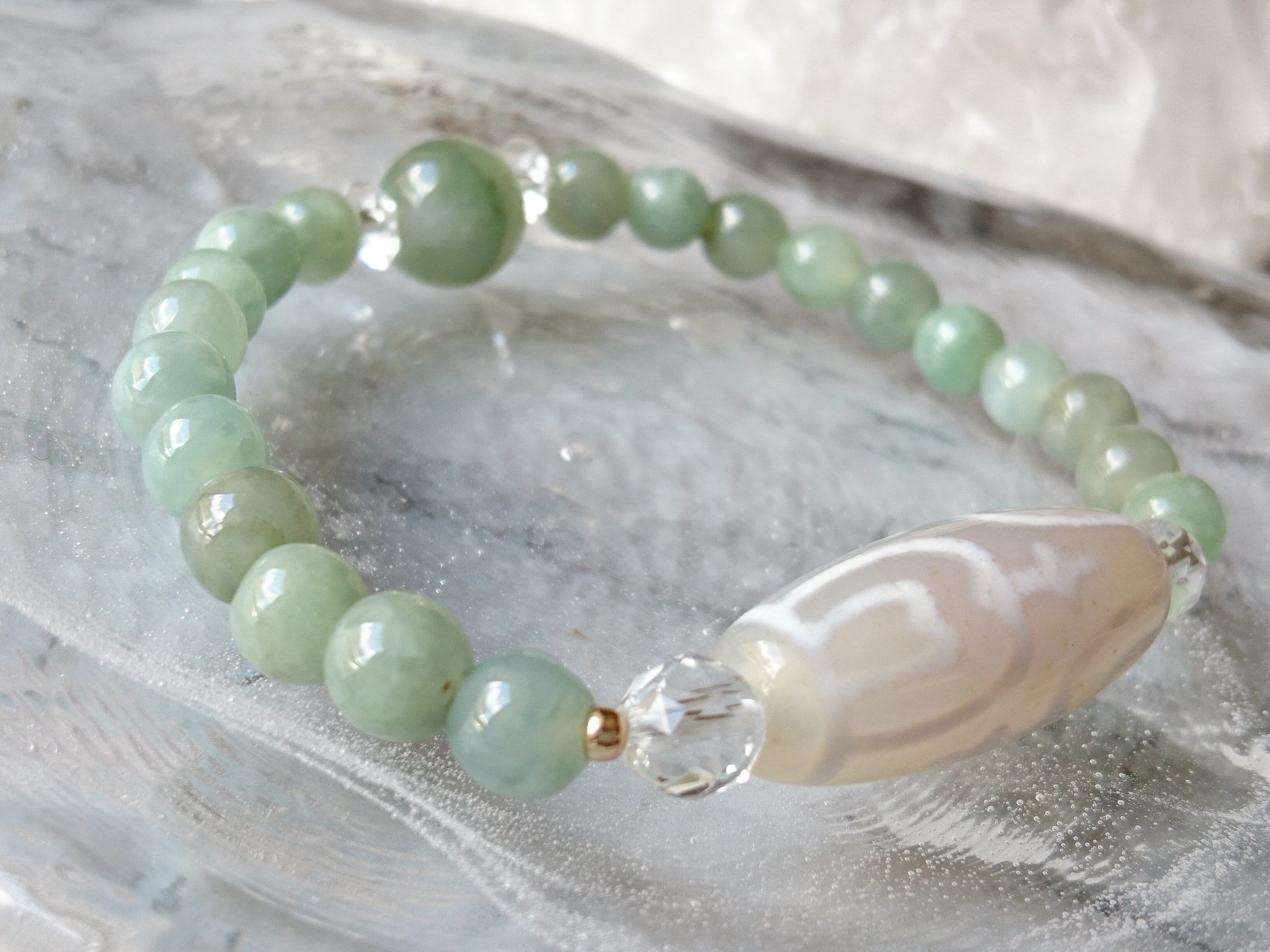 透明感のある美しい白玉髄天珠と透明感のある瑞々しいミャンマー翡翠です✨