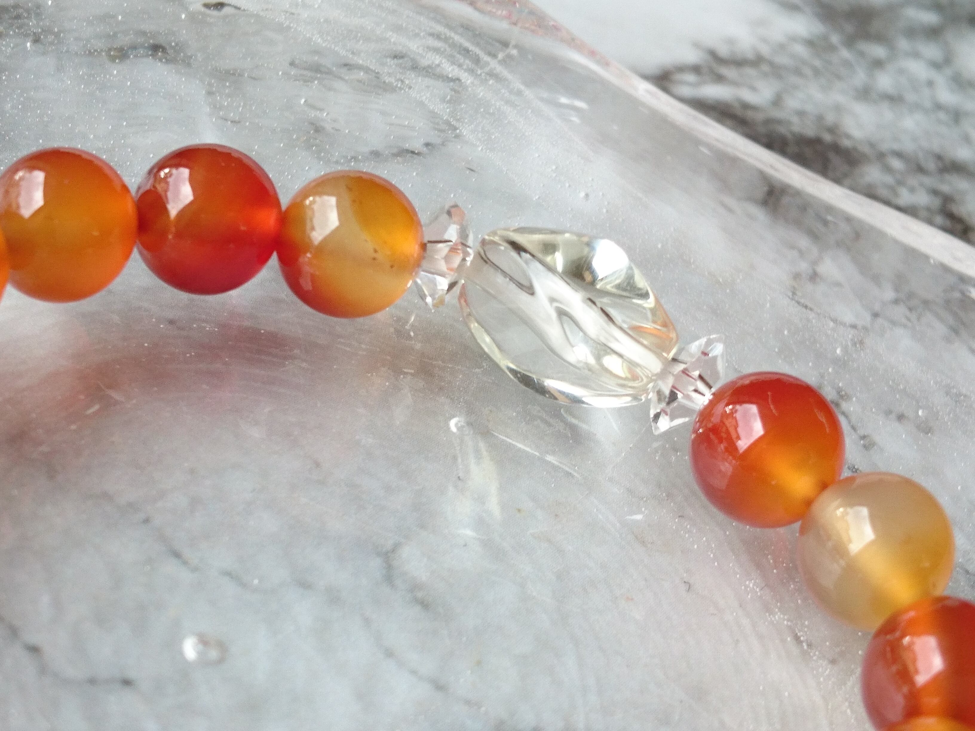 橙玉髄宝瓶蓮花天珠✨デザインブレスレット
