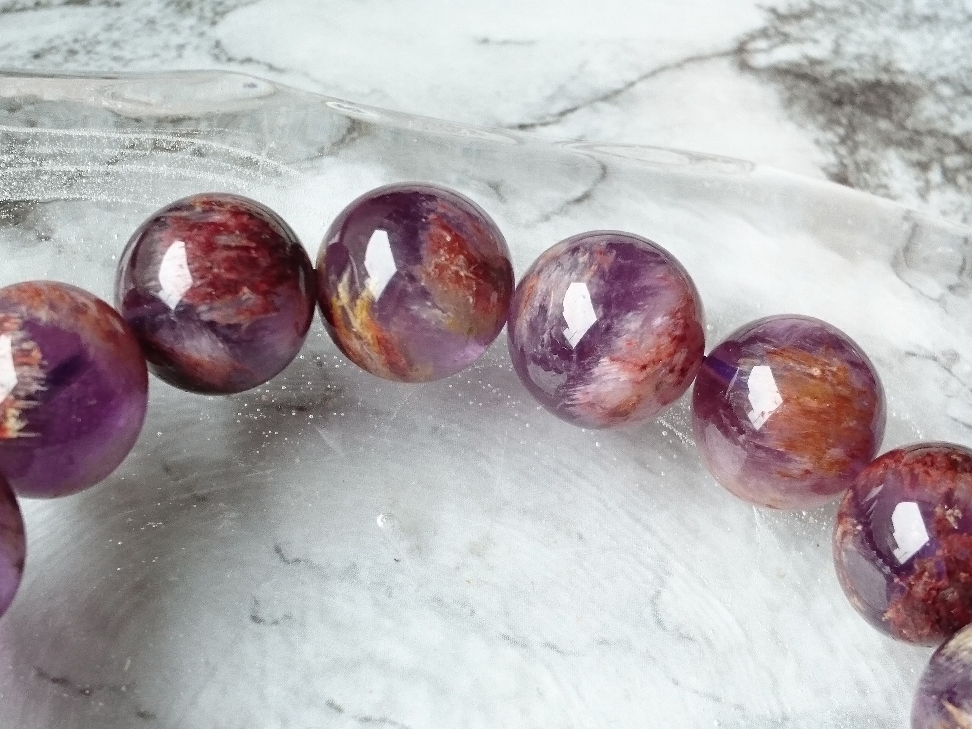 澄んだパープルの濃淡が美しいアメジストにフェザーみたいなホワイト、赤茶のガーデンインです✨