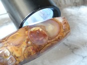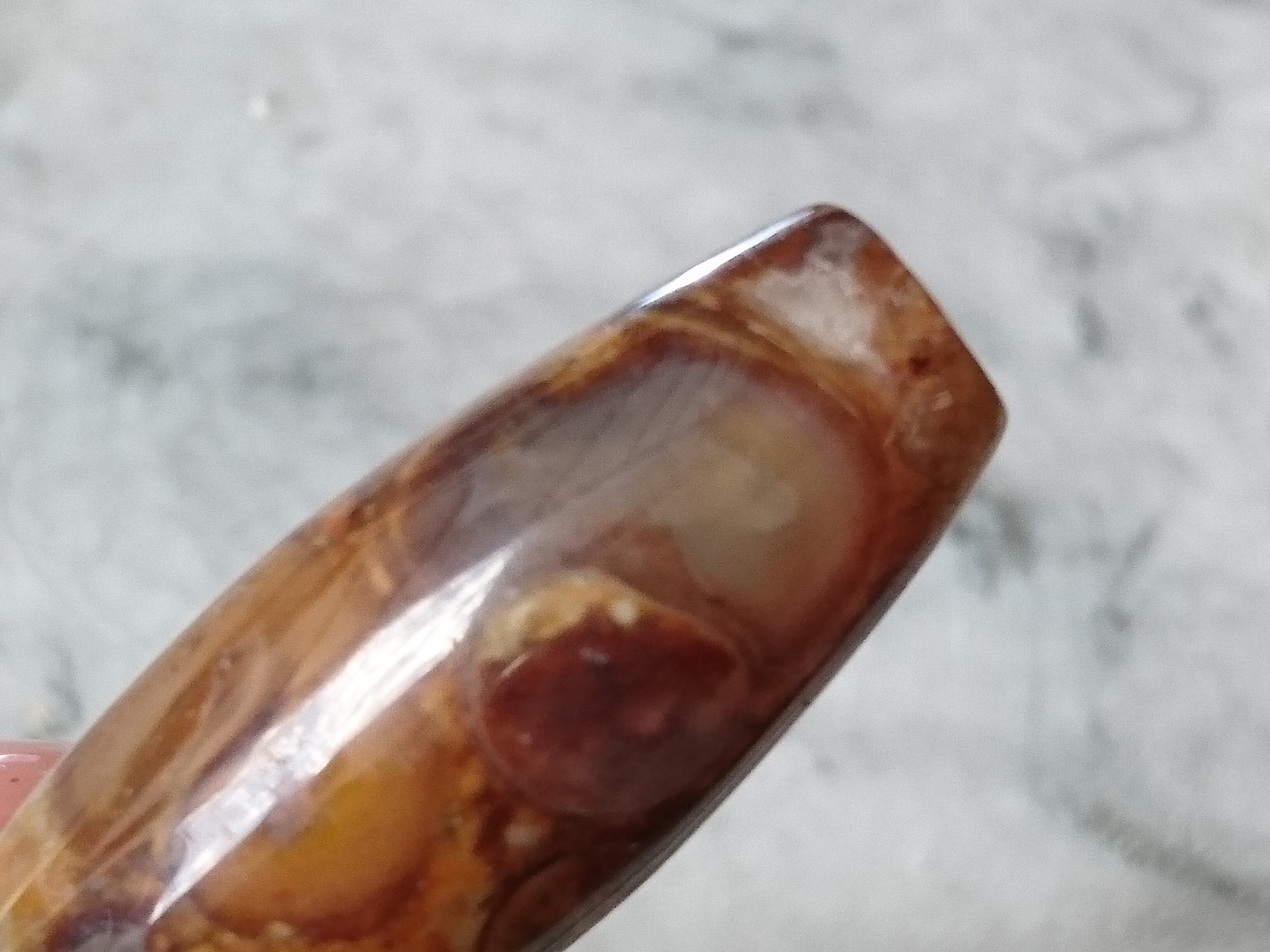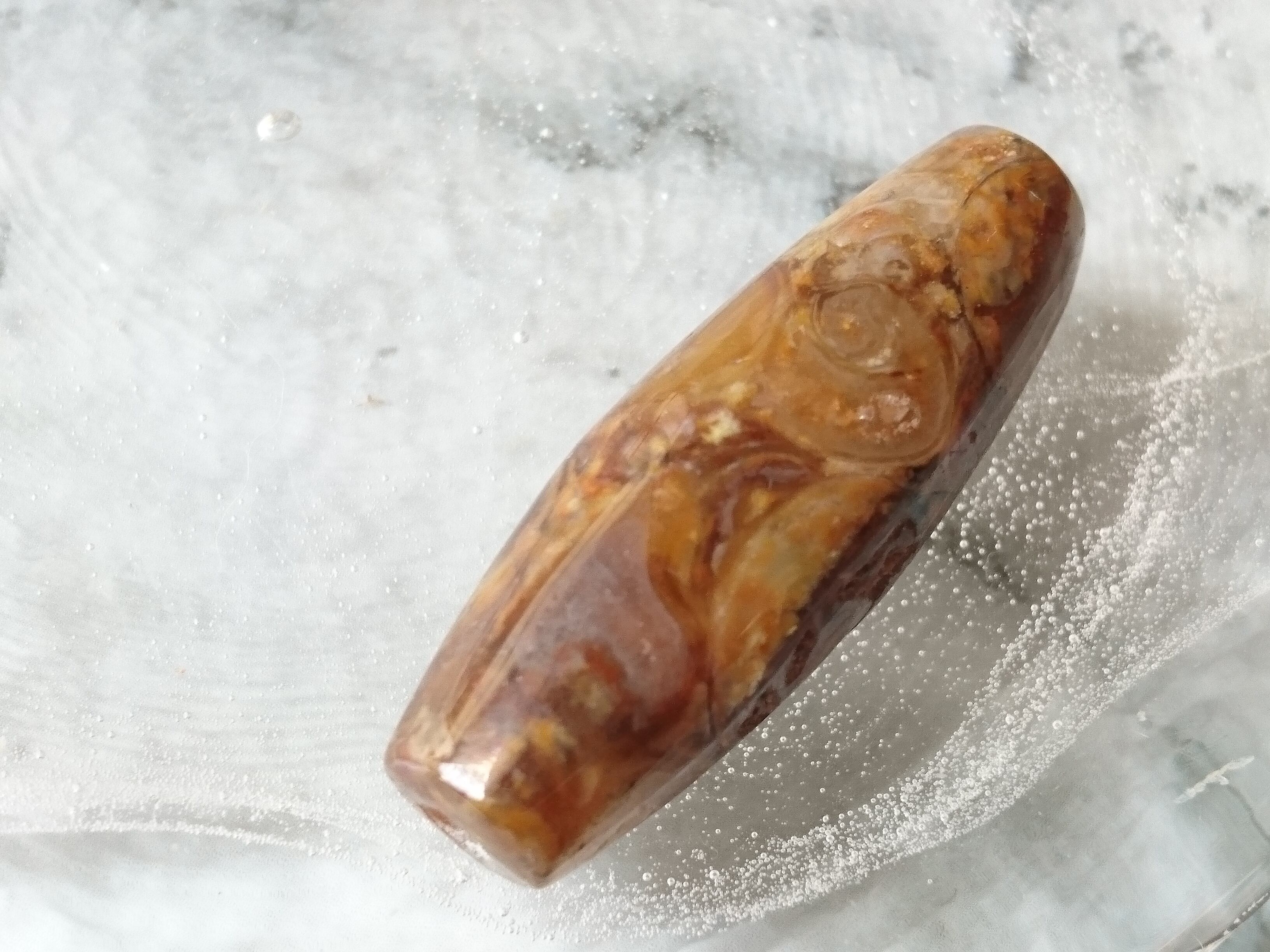 この天珠に使われる化石は非常に希少なもののため法螺天珠は流通量が少なく日本では殆ど見られない天珠のひとつ。