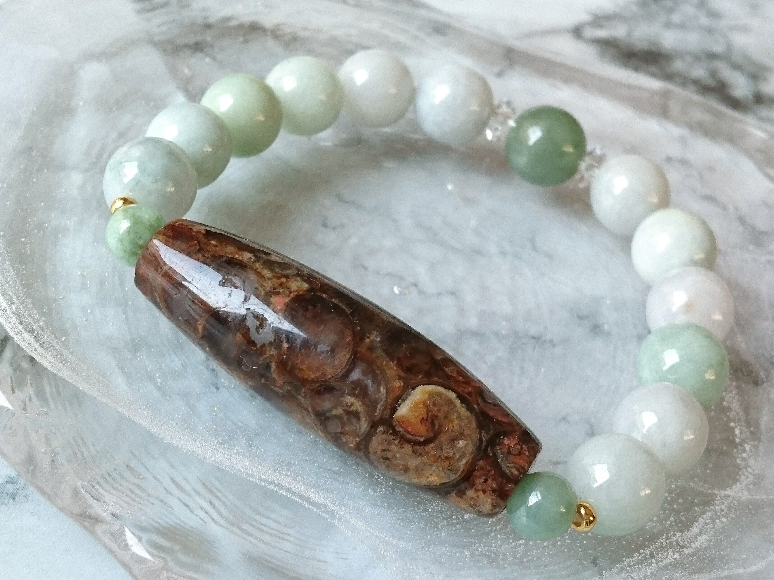 貝の化石から作られていて「神が身につける宝「神を呼び出す天珠」と言われています。