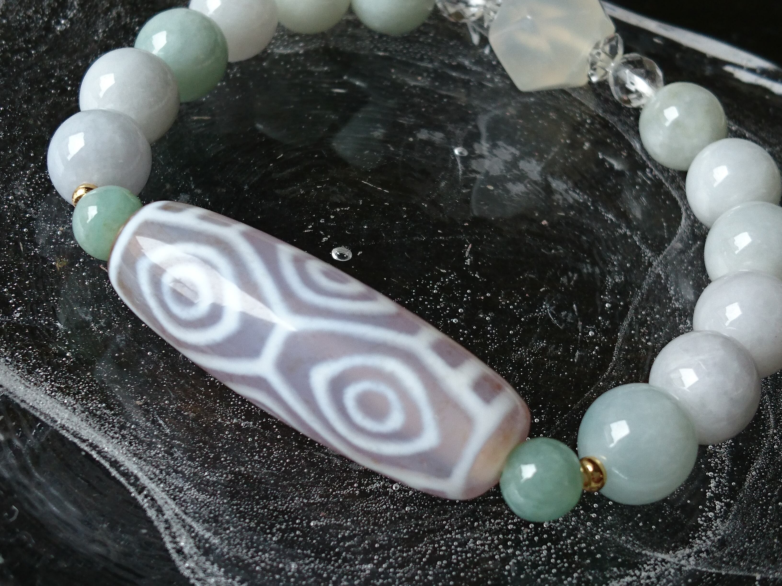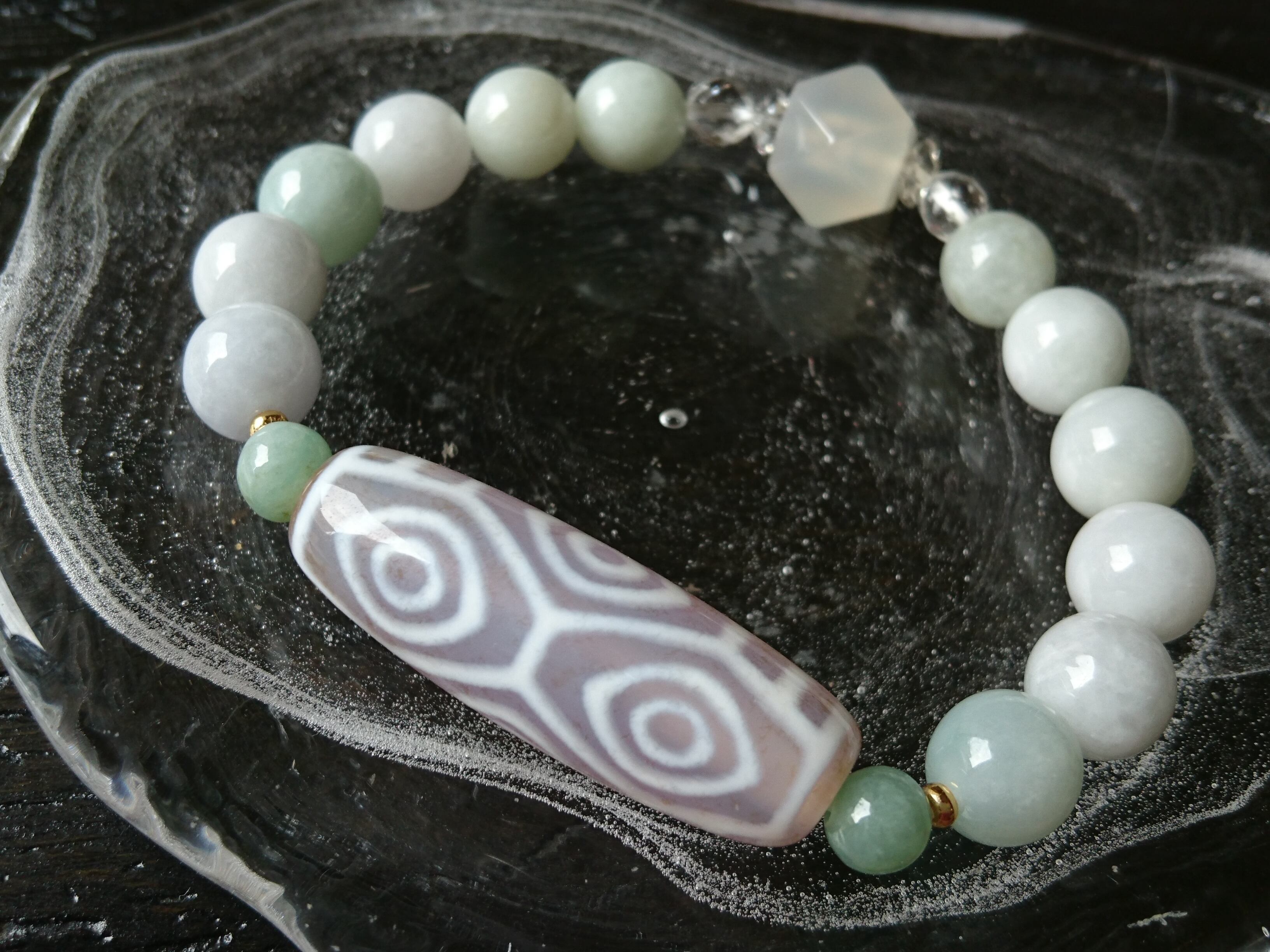 透明感のある美しい白玉髄龍眼天珠とミャンマー翡翠です✨
