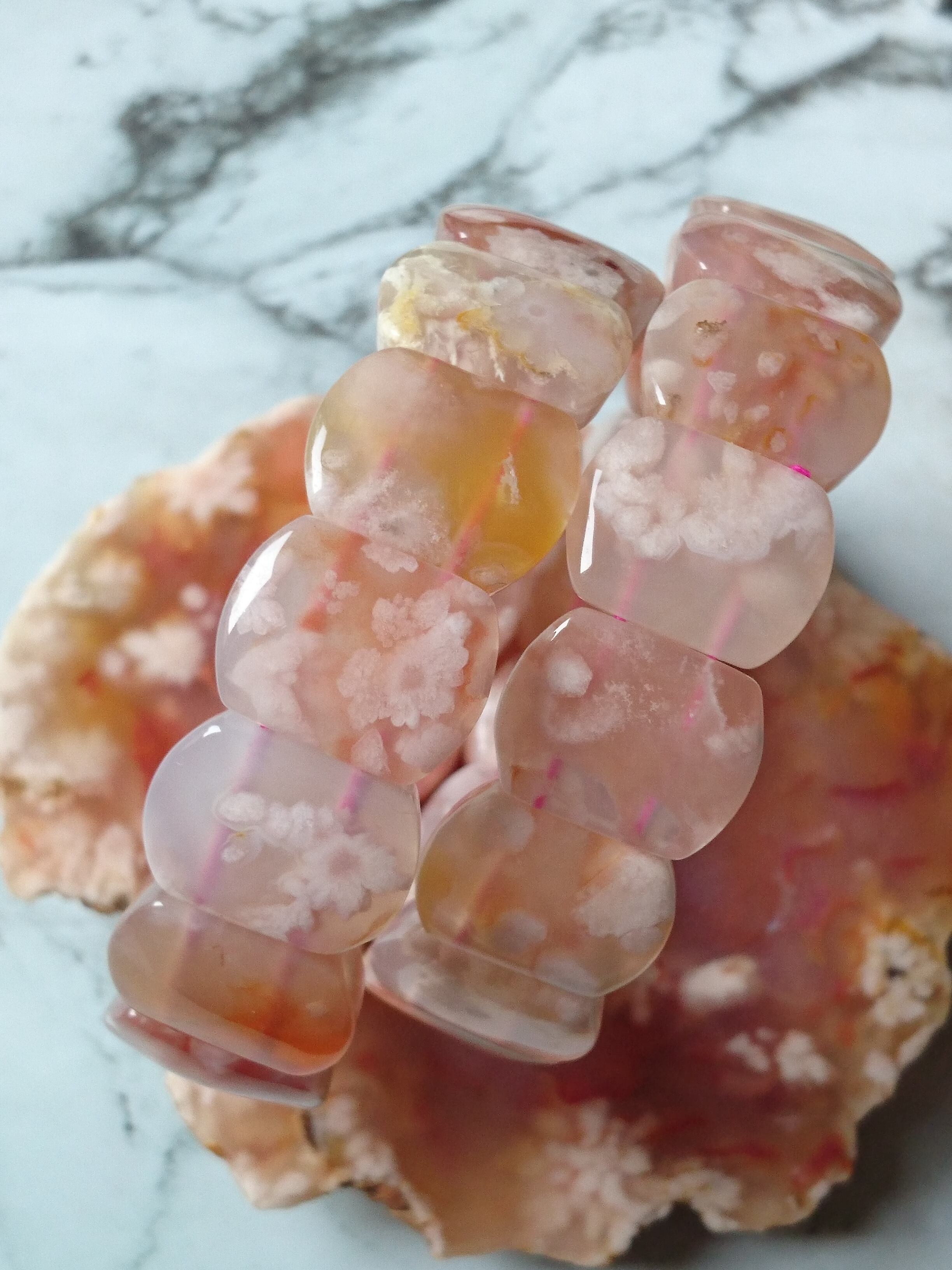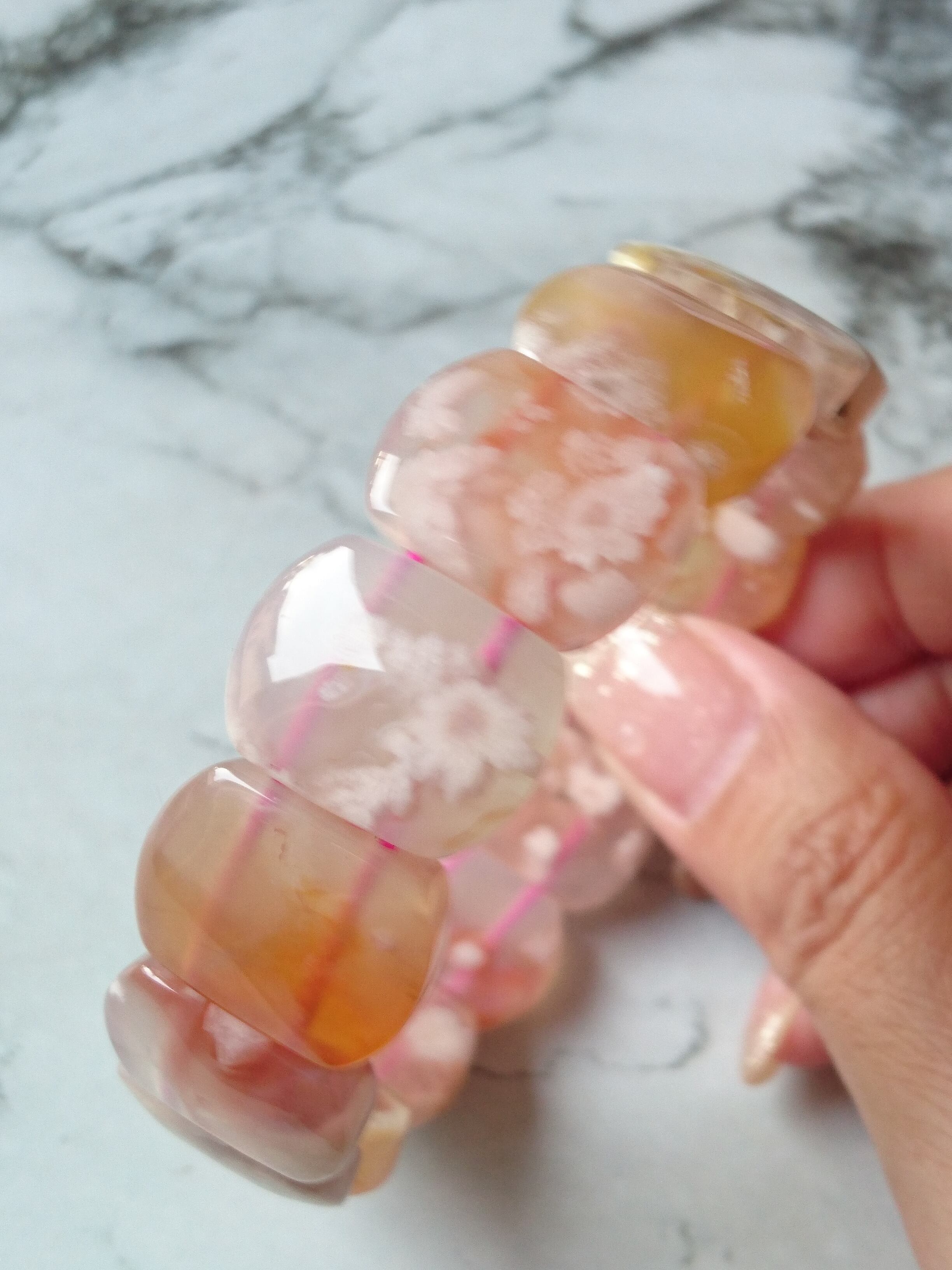 赤みのある石と淡いピンクの瑪瑙にお花みたいな内包物の桜瑪瑙です
