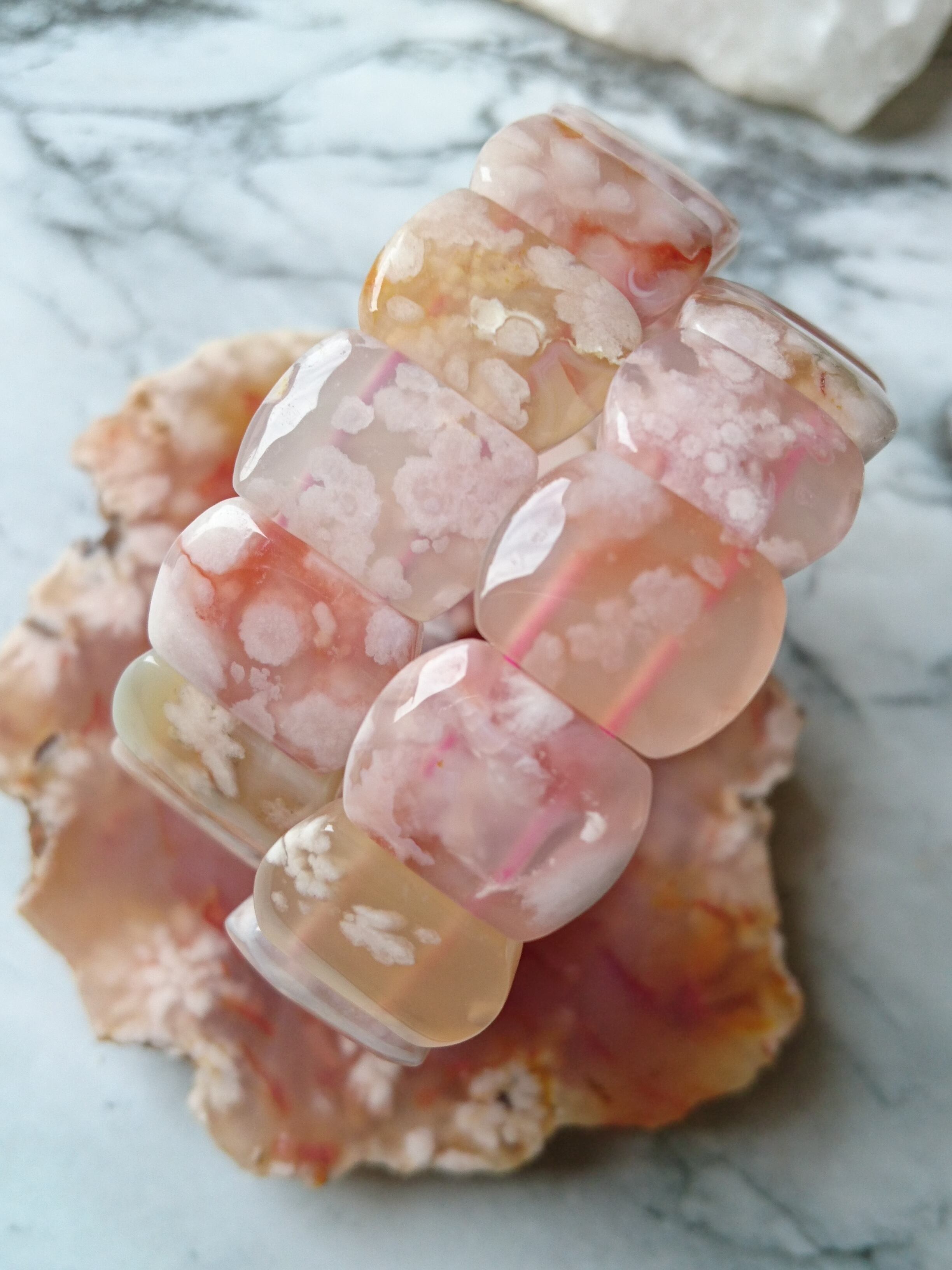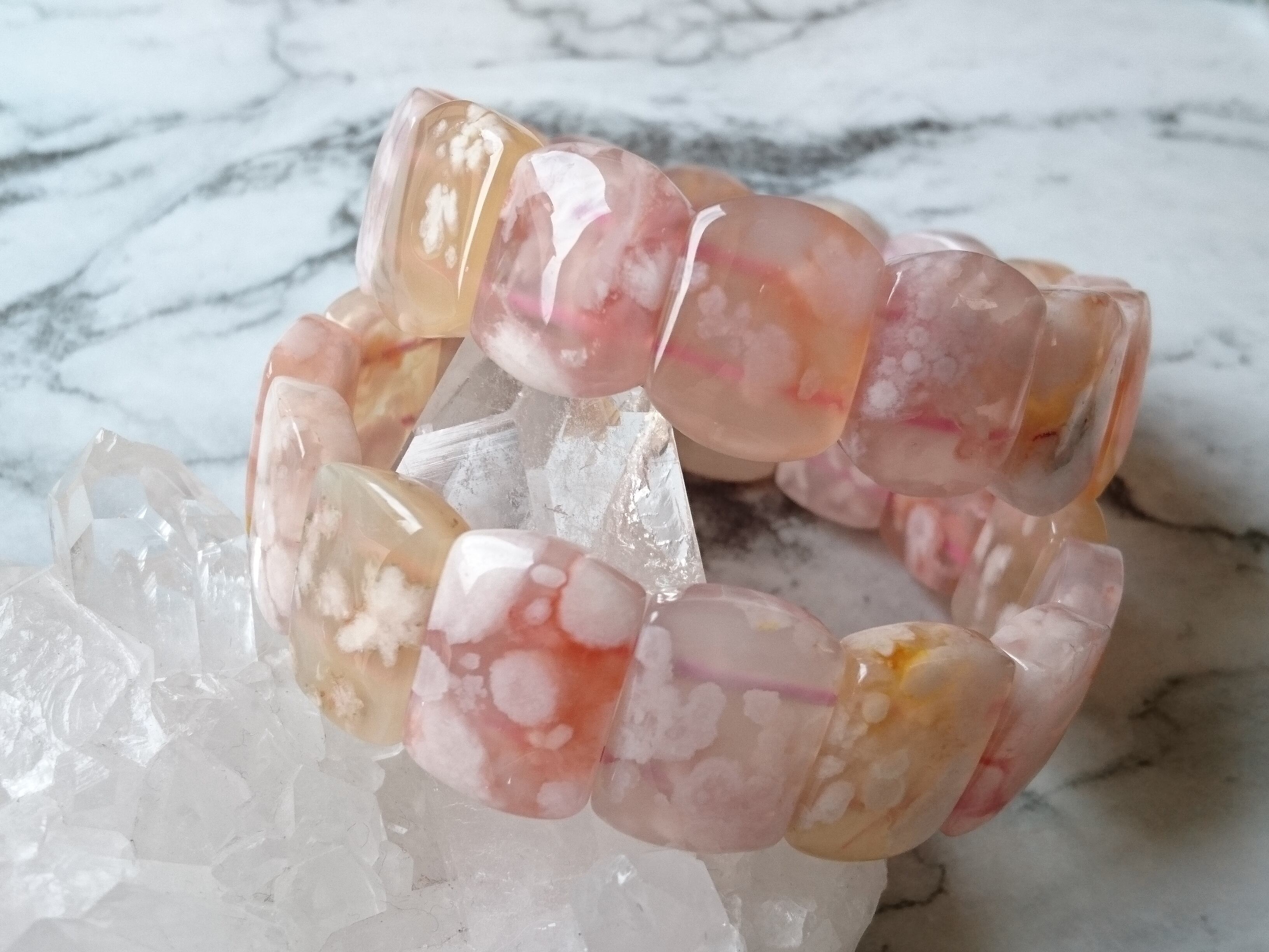 赤みのある石と淡いピンクの瑪瑙にお花みたいな内包物の桜瑪瑙です