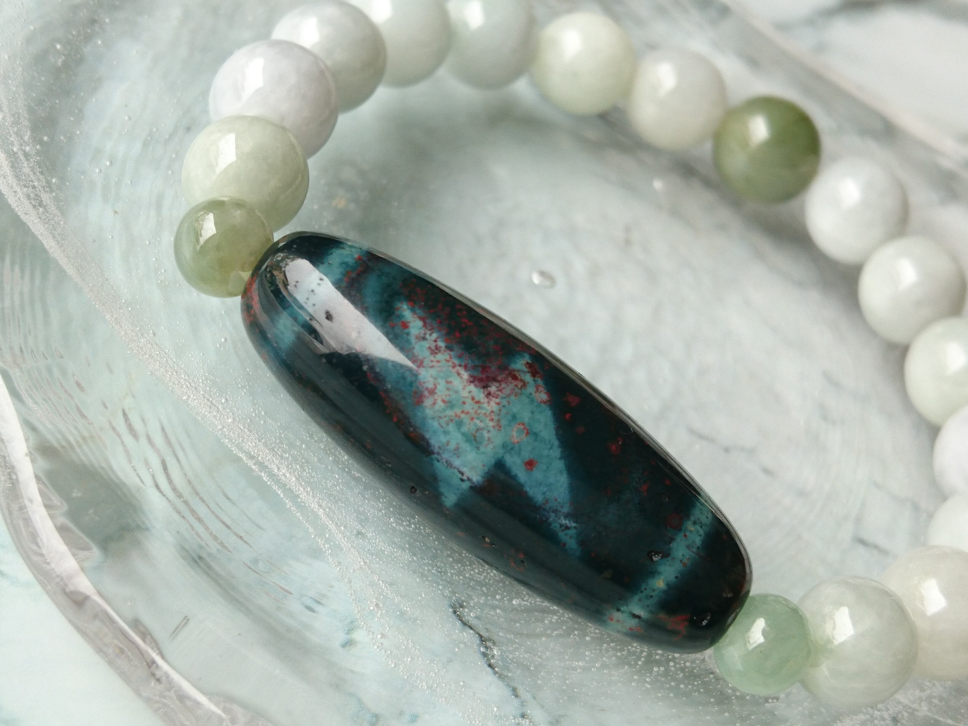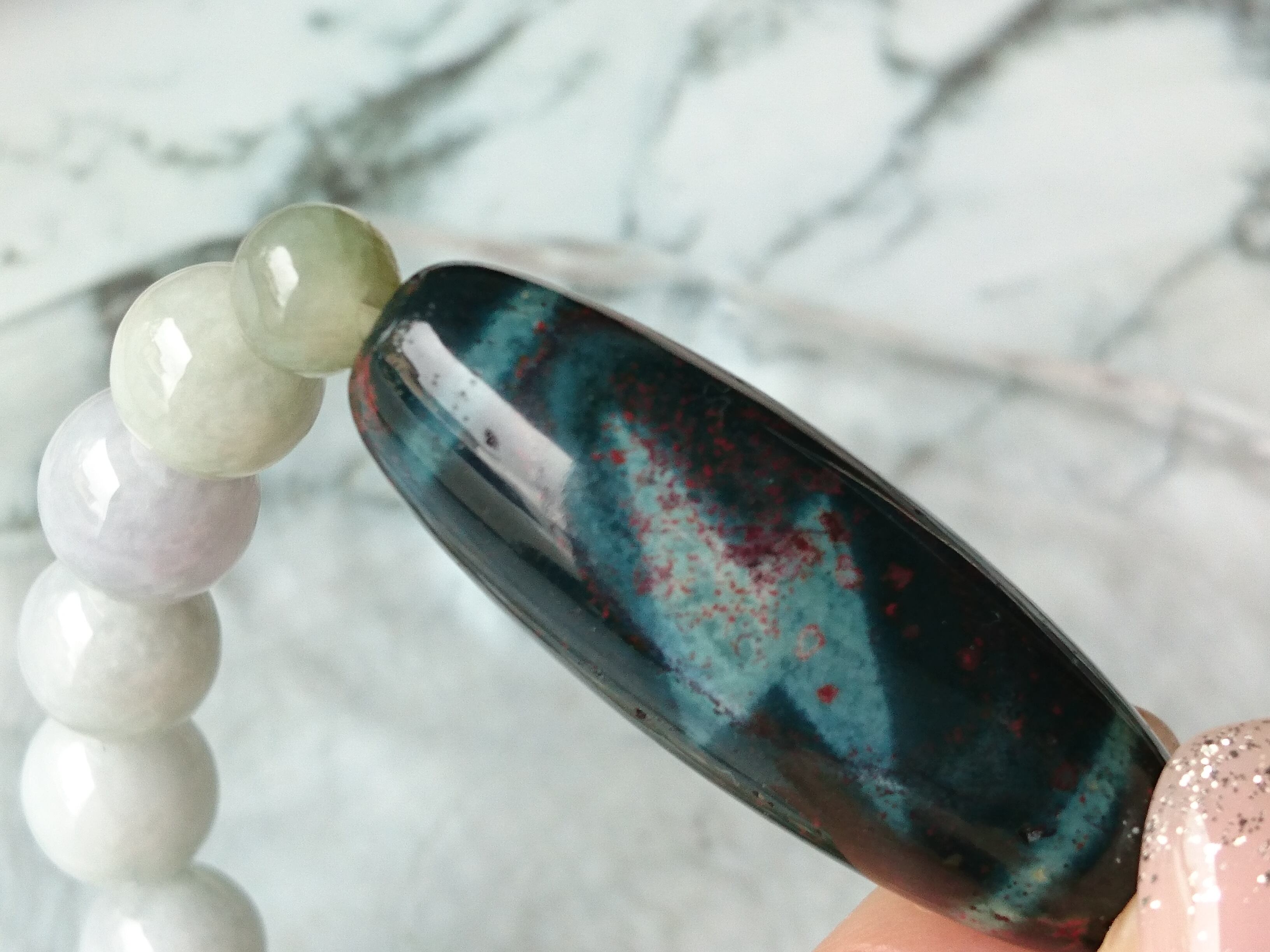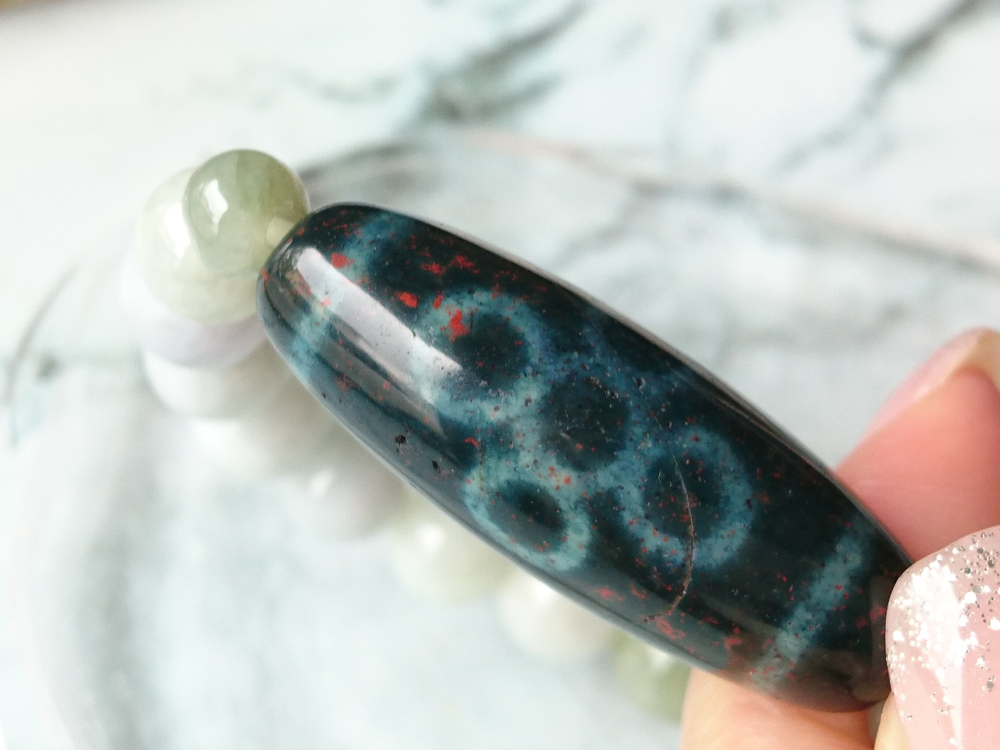 朱砂入りグリーン瑪瑙天珠です✨