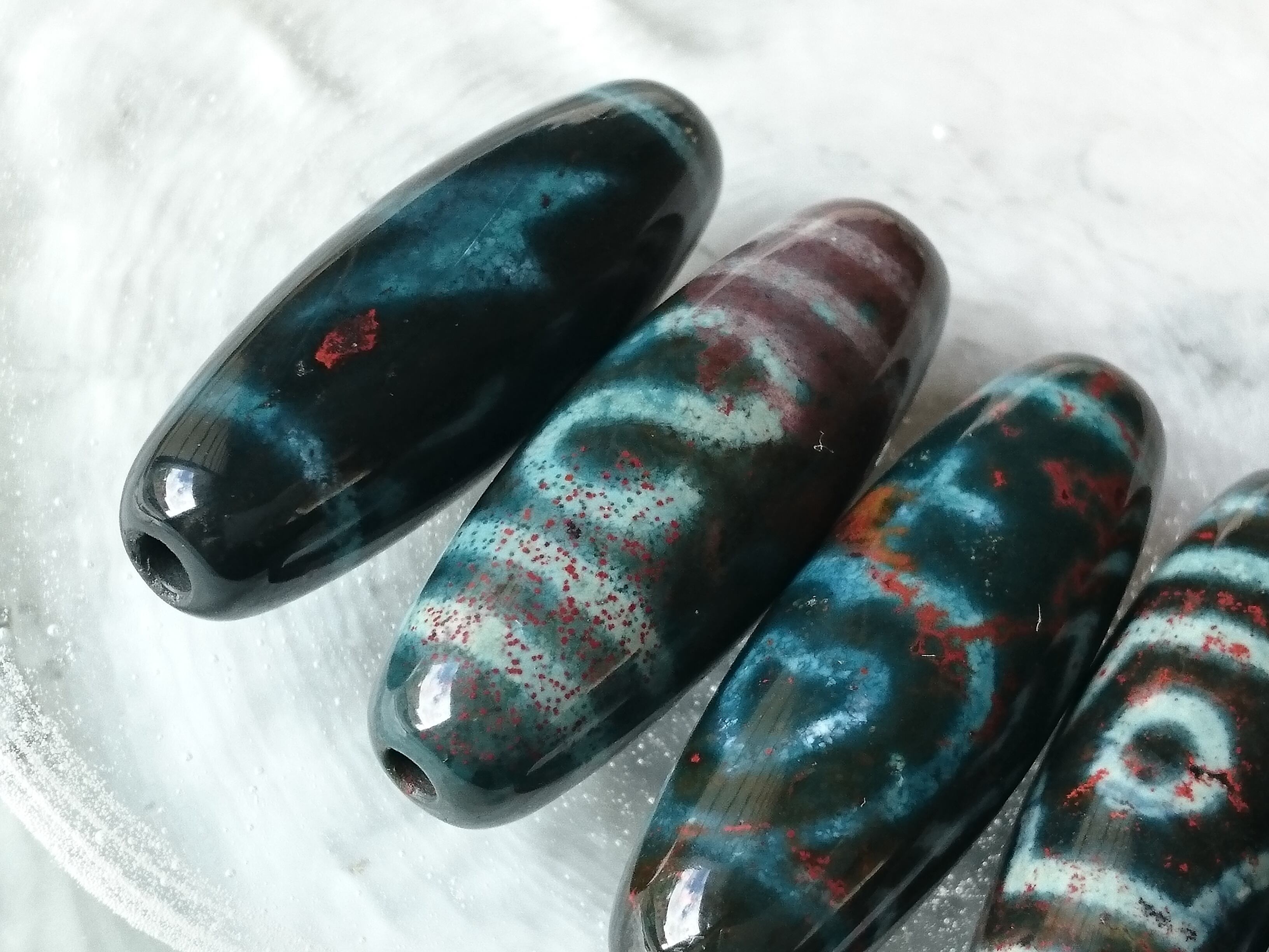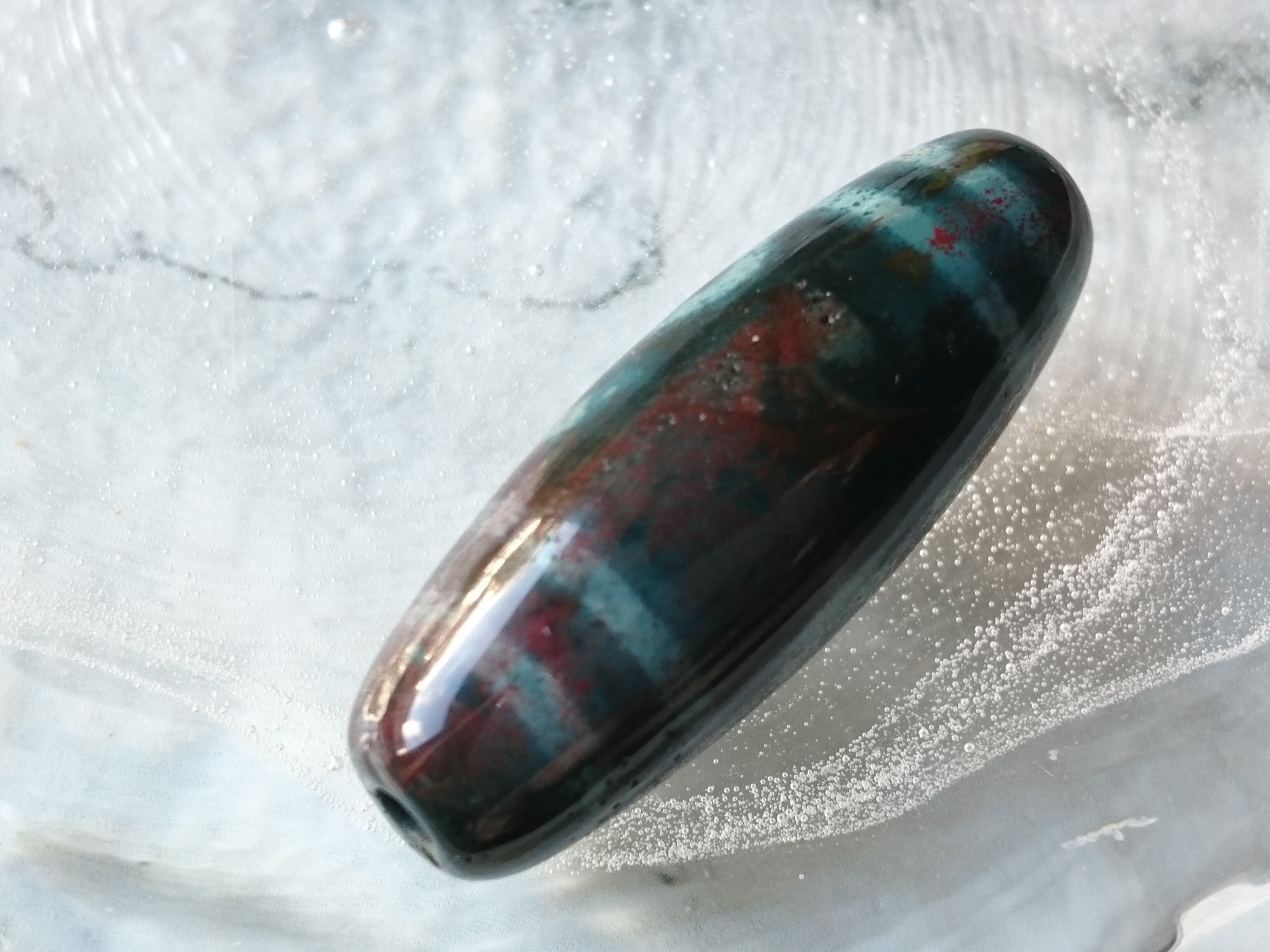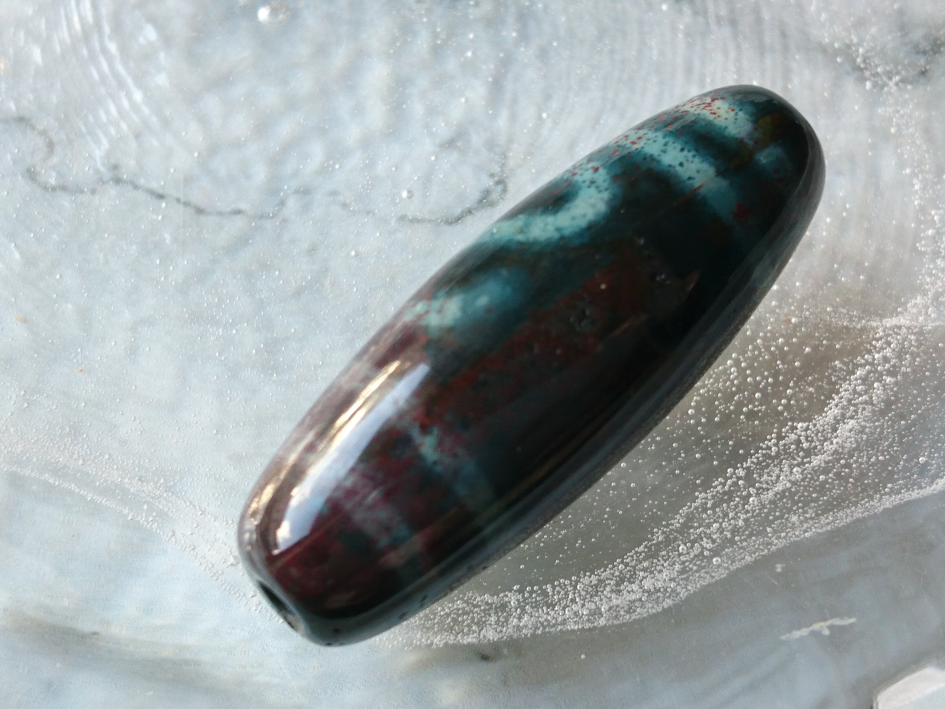朱砂入りグリーン瑪瑙の天珠です✨
