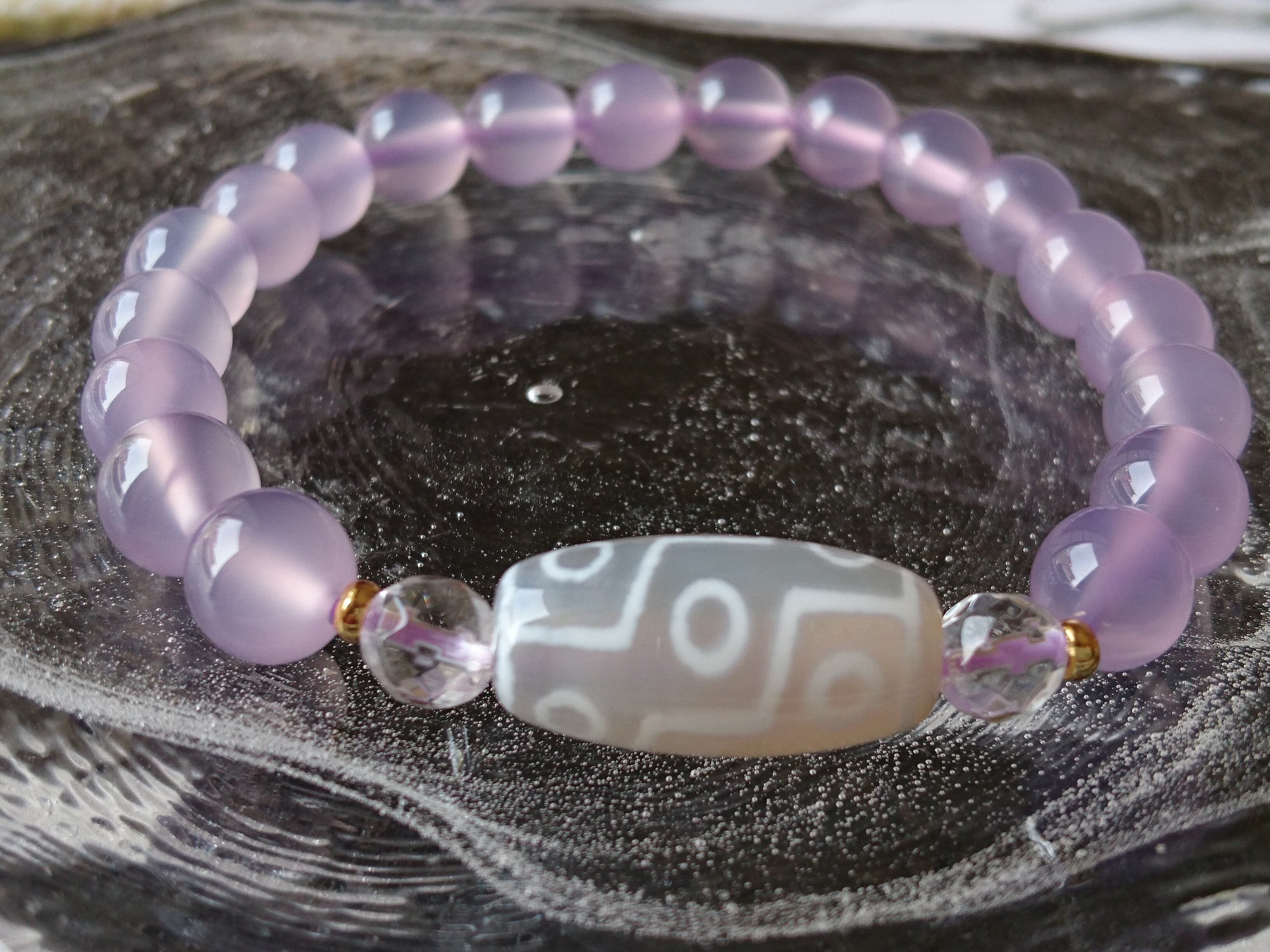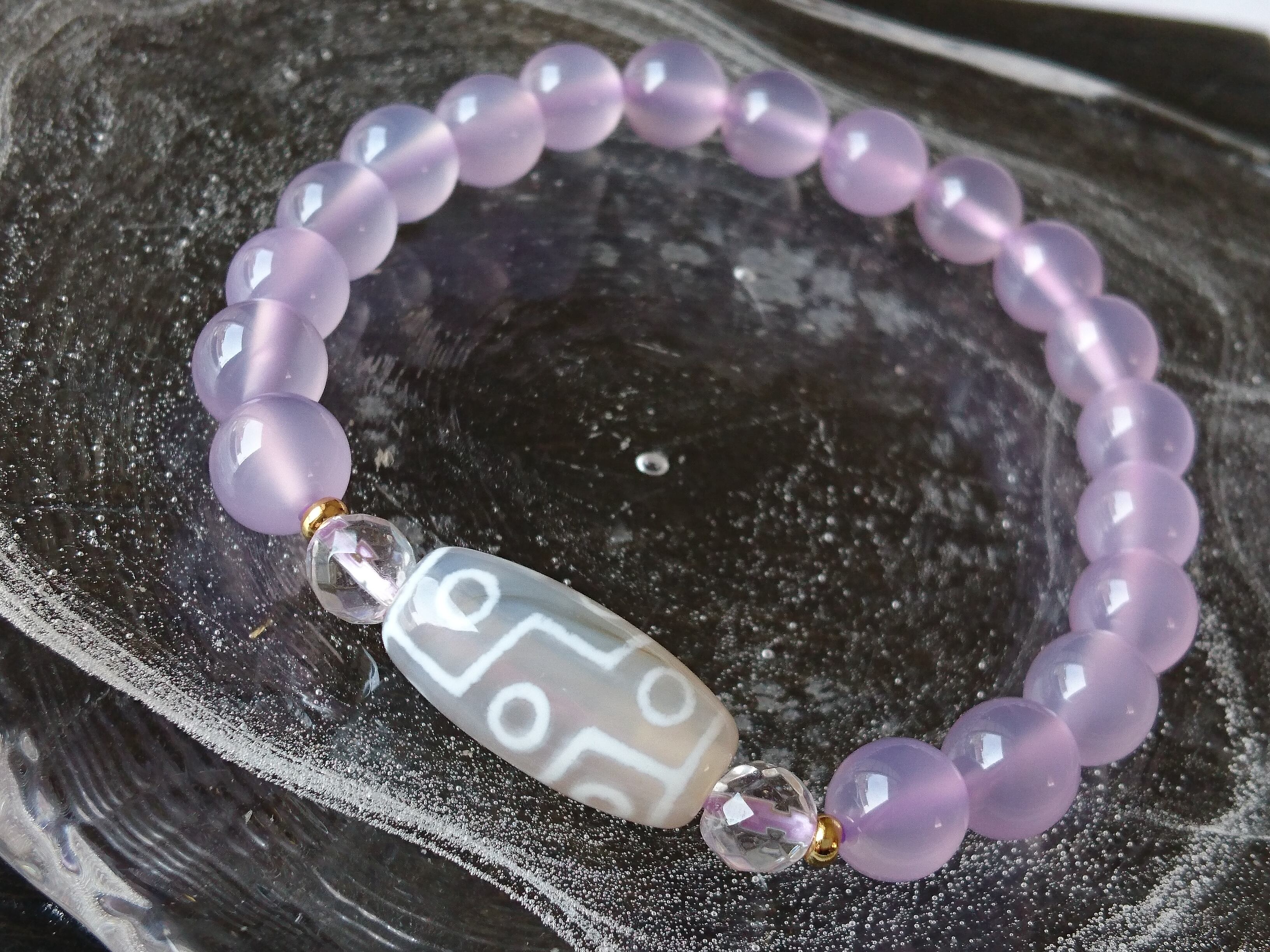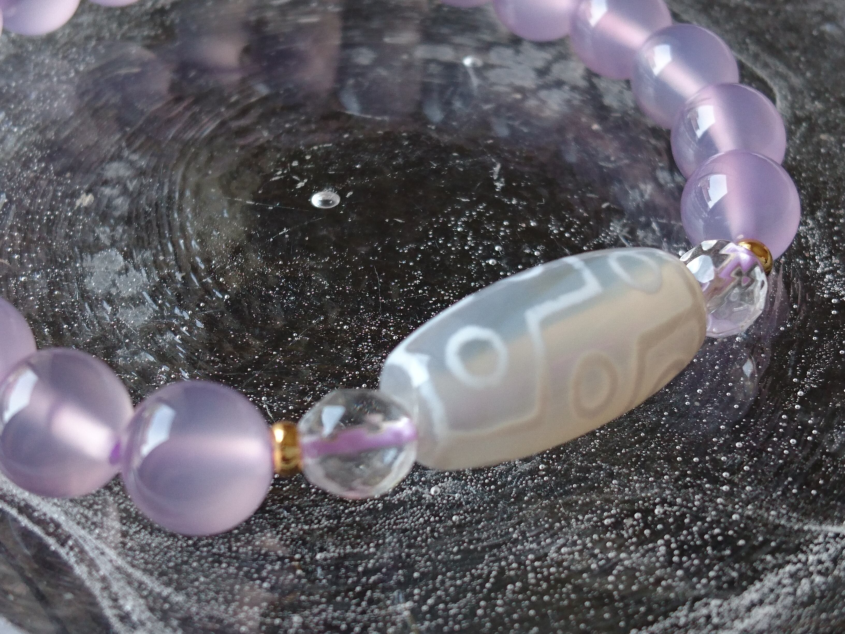 白玉髄九眼天珠✨ラベンダーカルセドニーブレスレット