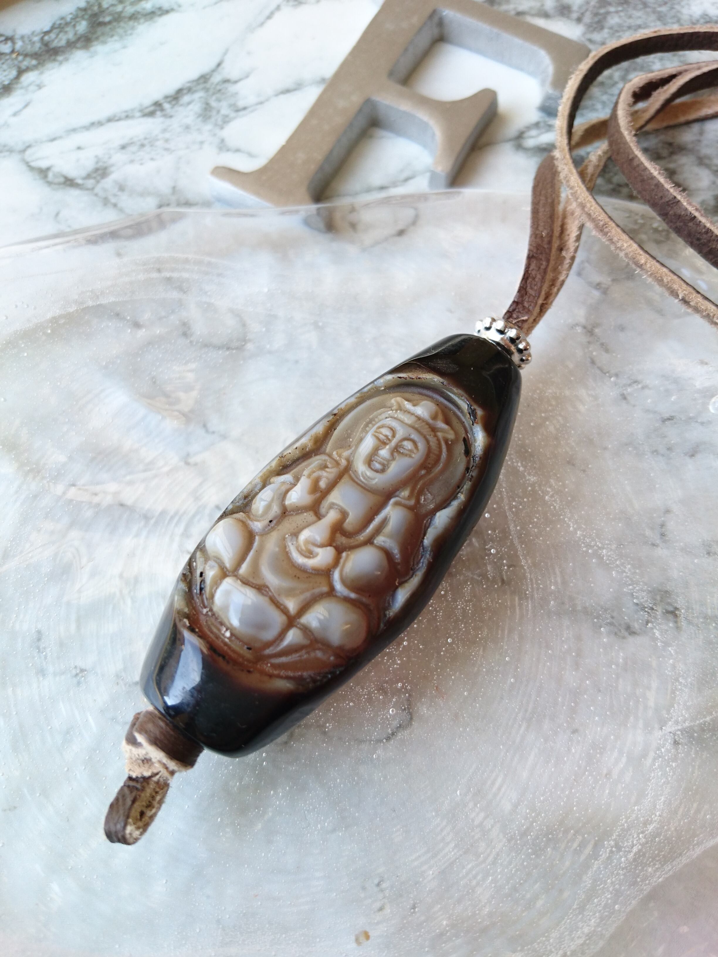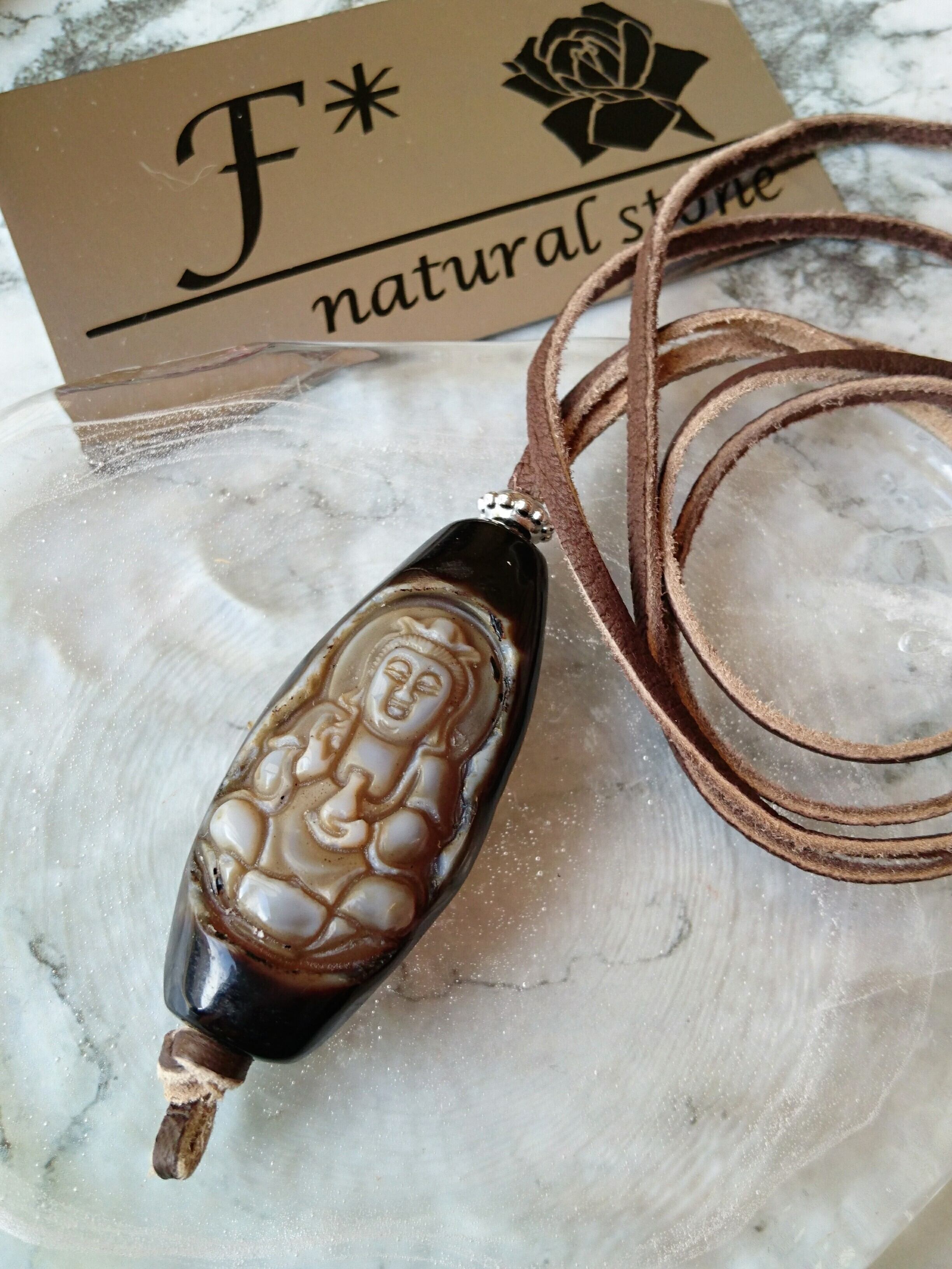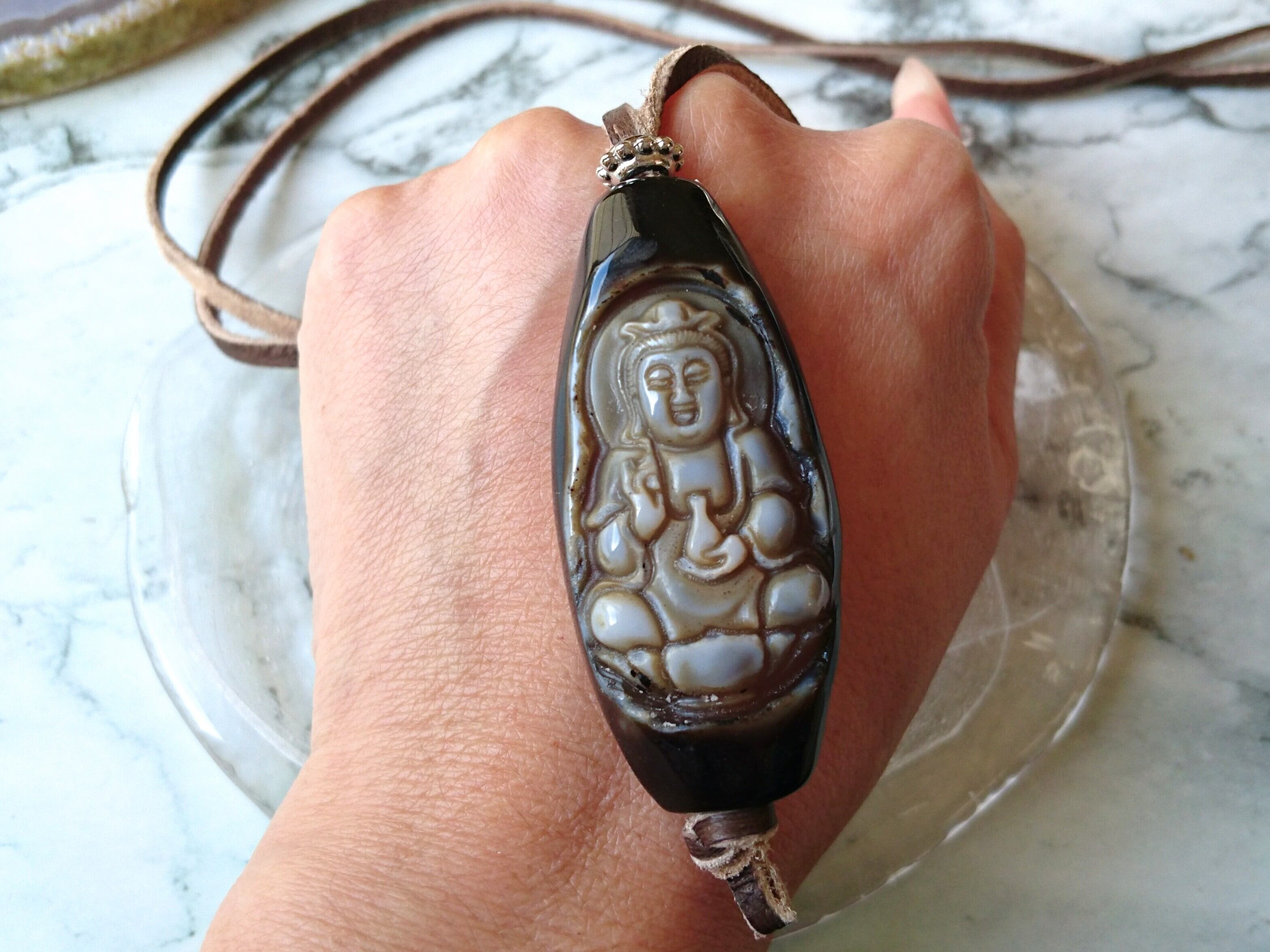 透明感のある瑪瑙の彫刻観音天珠です✨