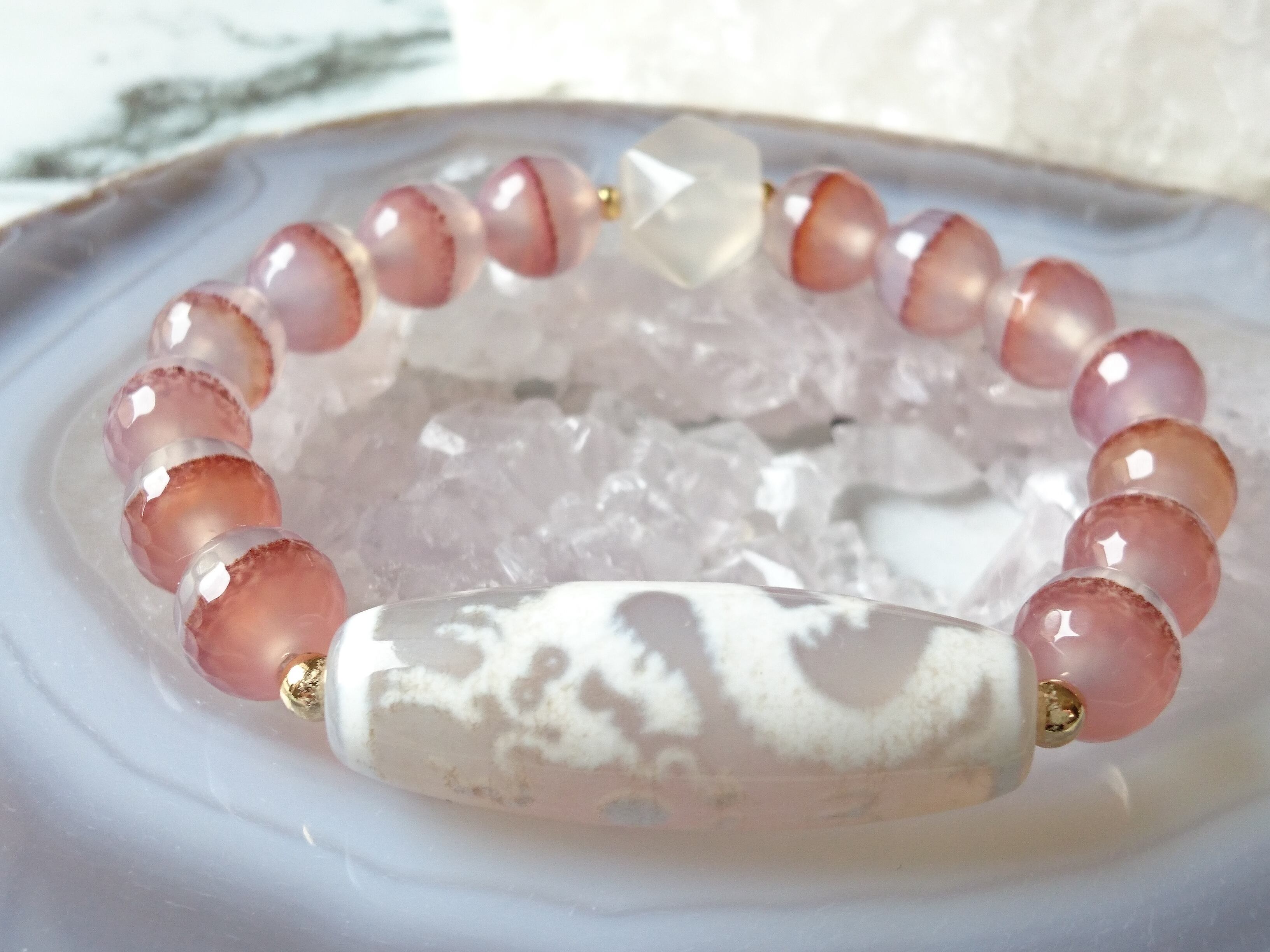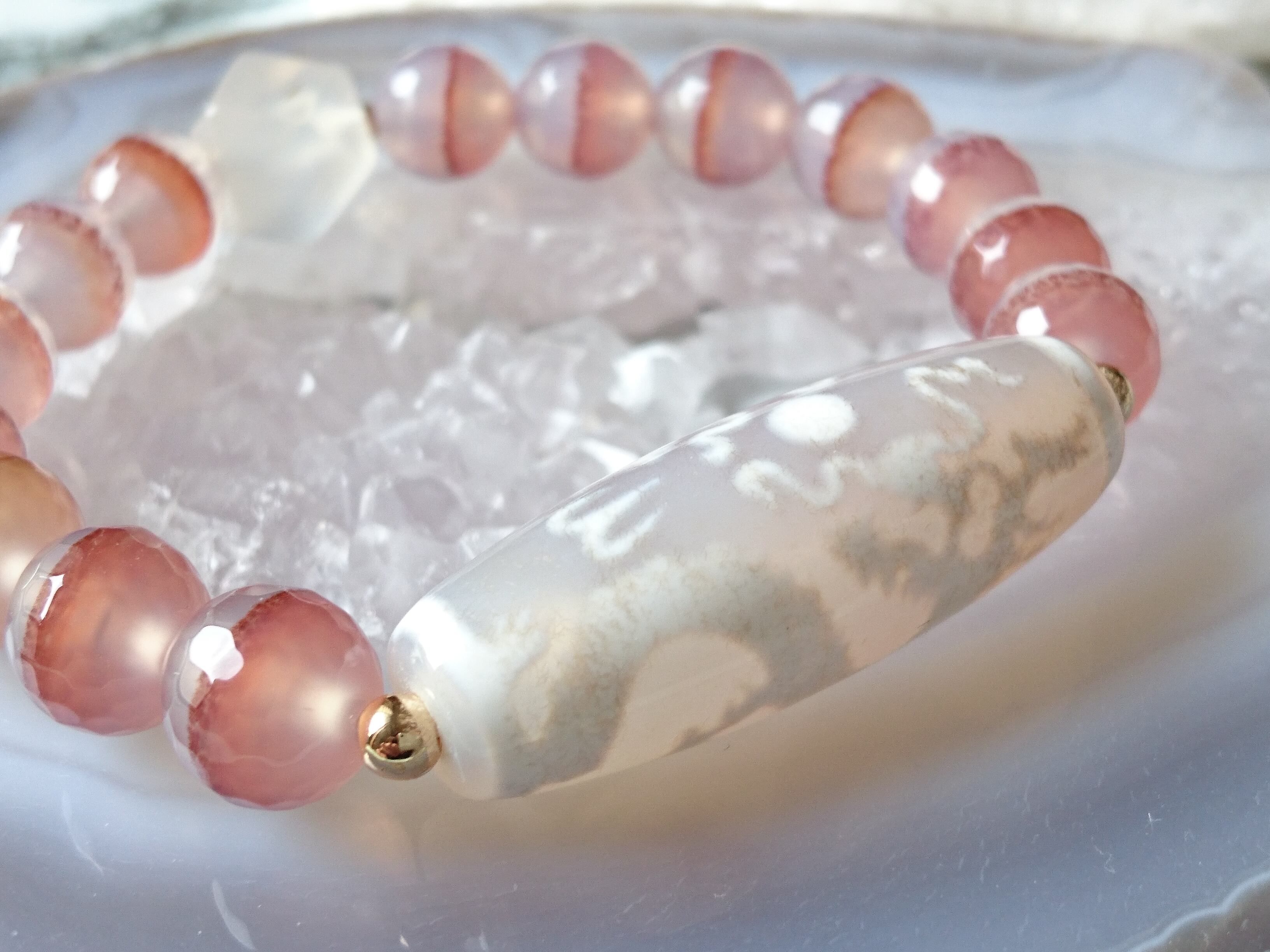 透明感のあるカルセドニーの美しい白玉髄天珠とレッドシナバーカルセドニーのカットです✨
