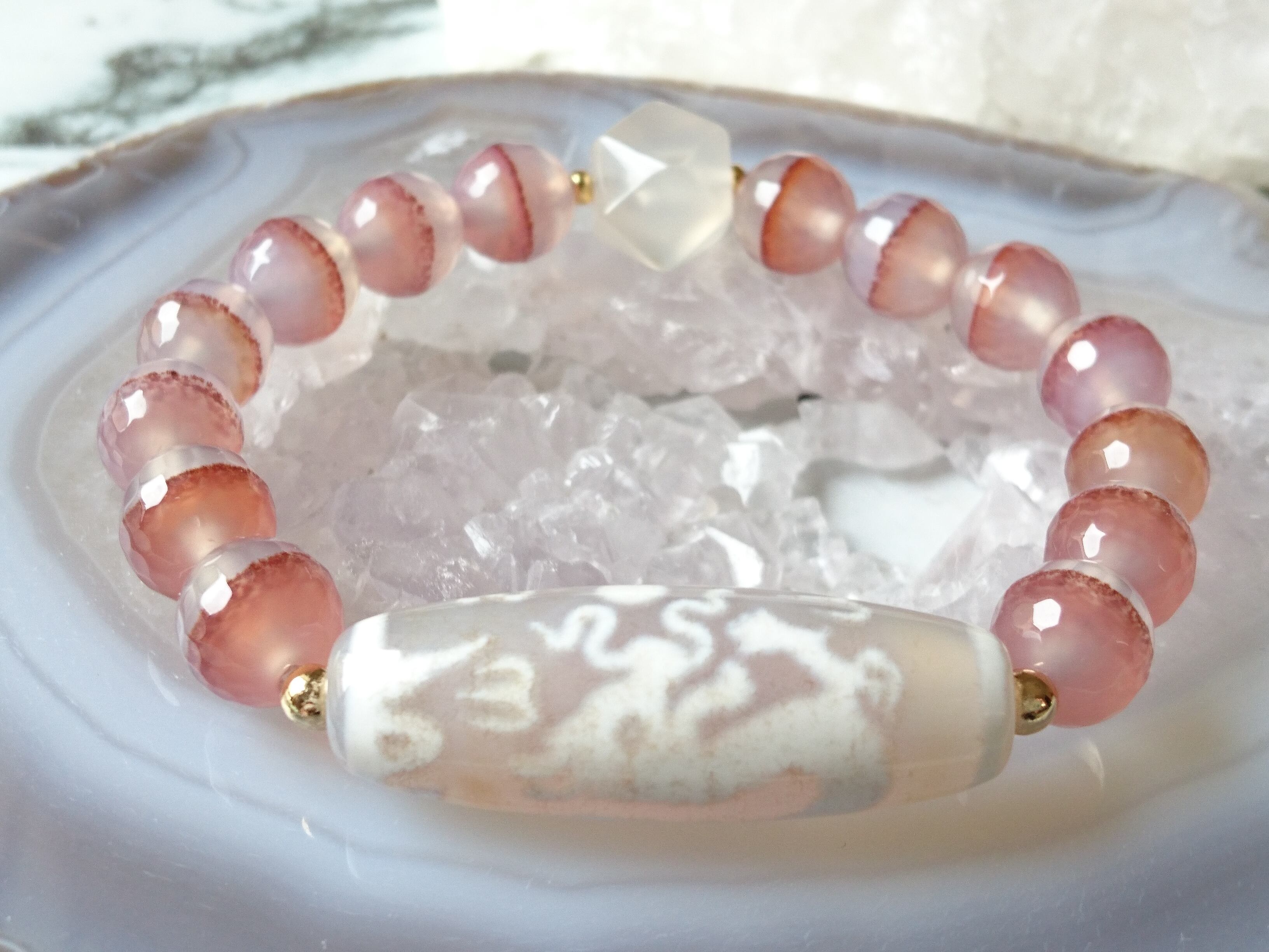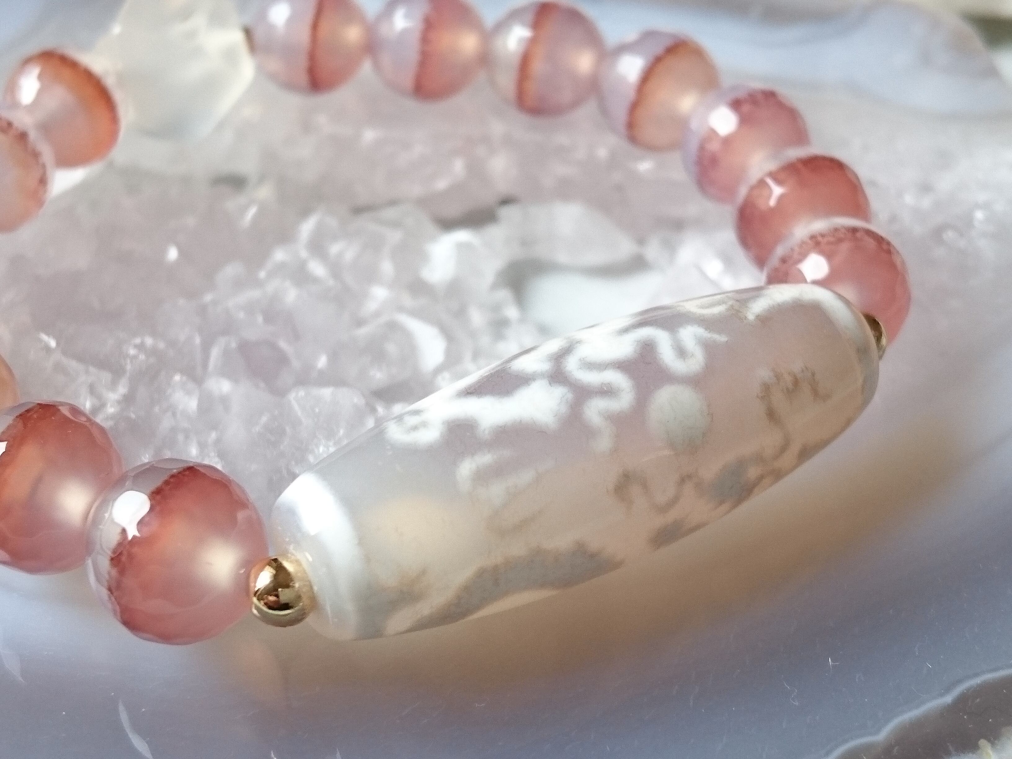 白玉髄宝珠双龍神天珠✨シナバーカルセドニー✨ブレスレット