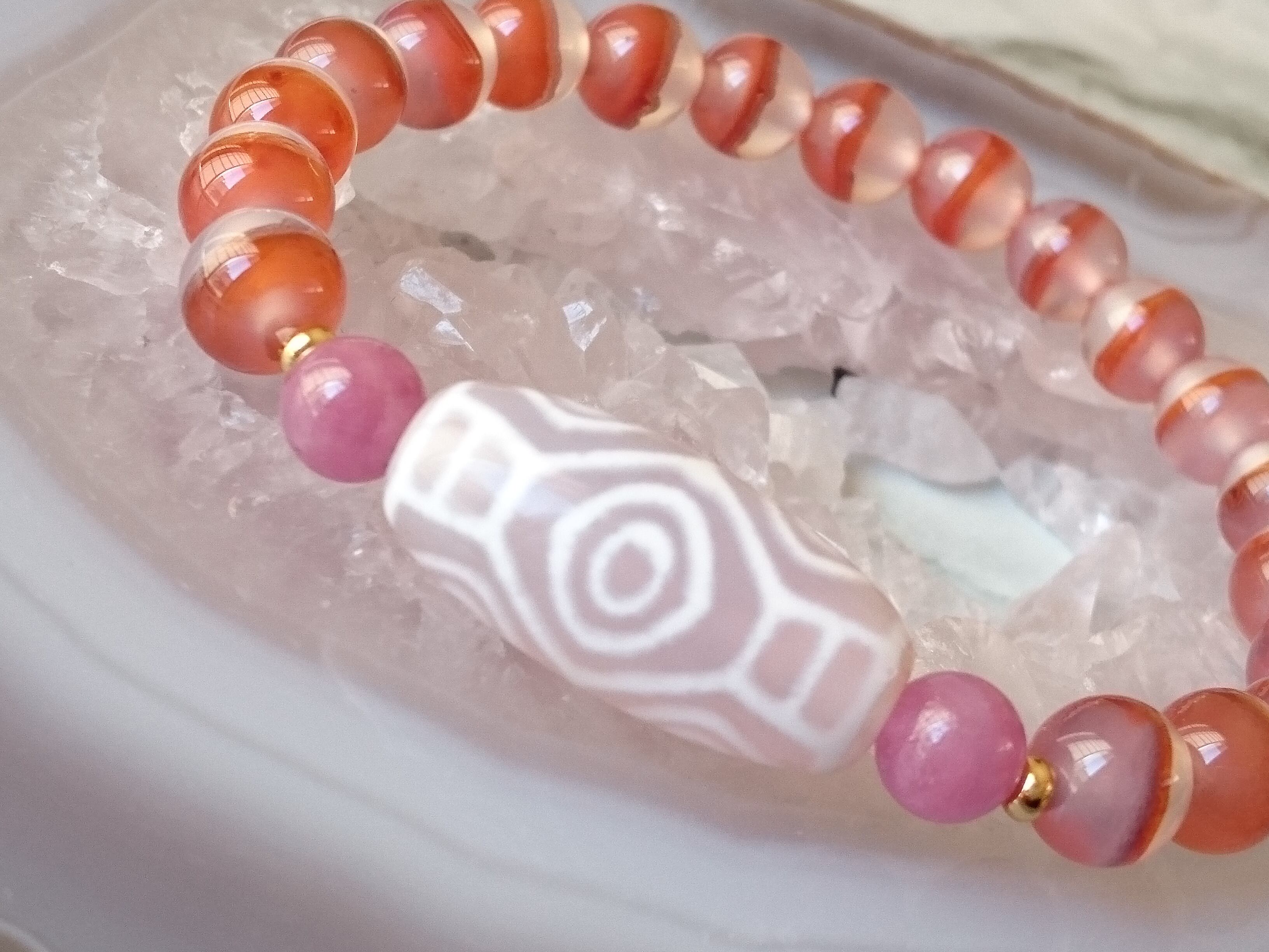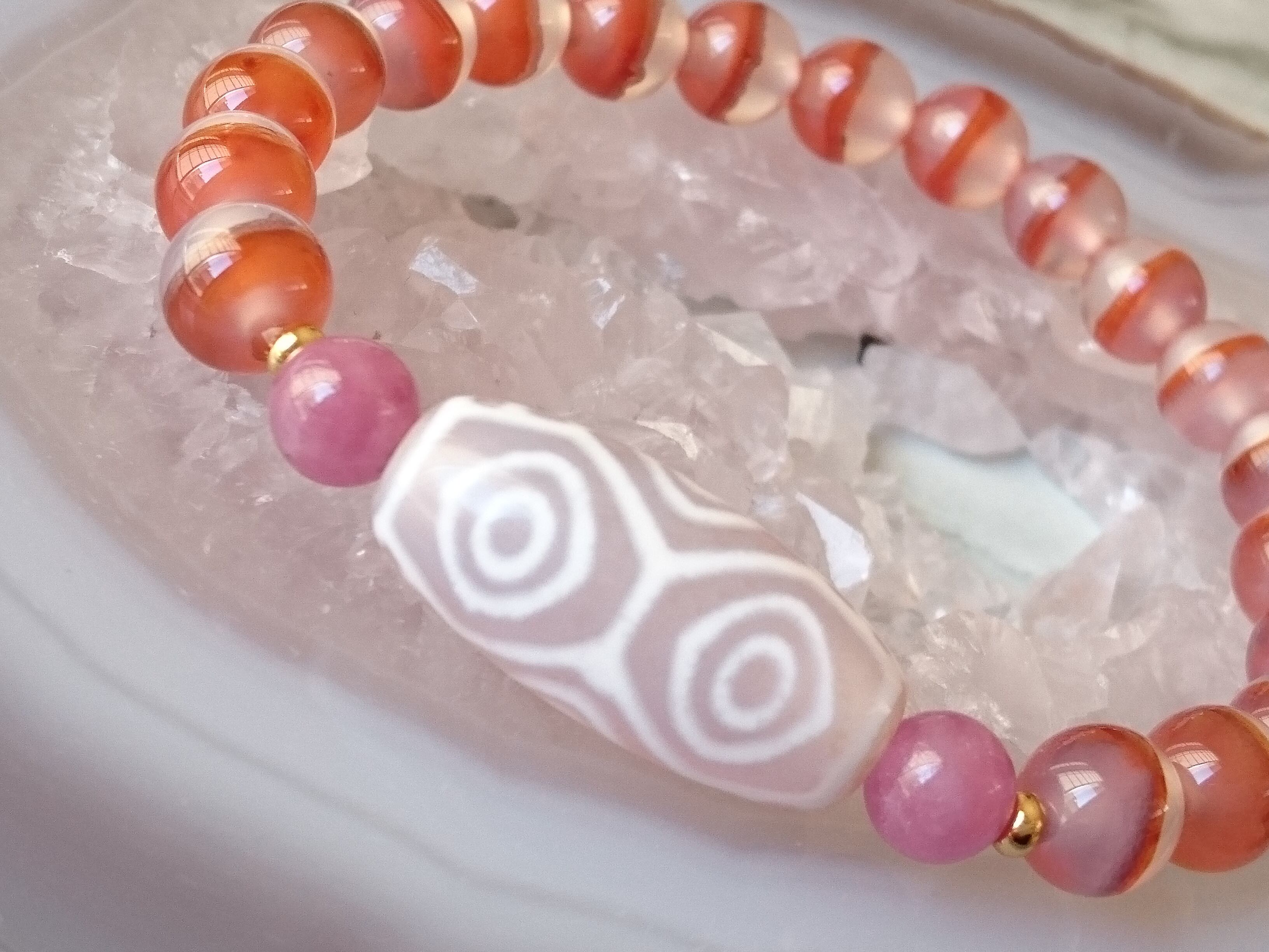 透明感のある美しい白玉髄天珠とレッドシナバーカルセドニーです✨
