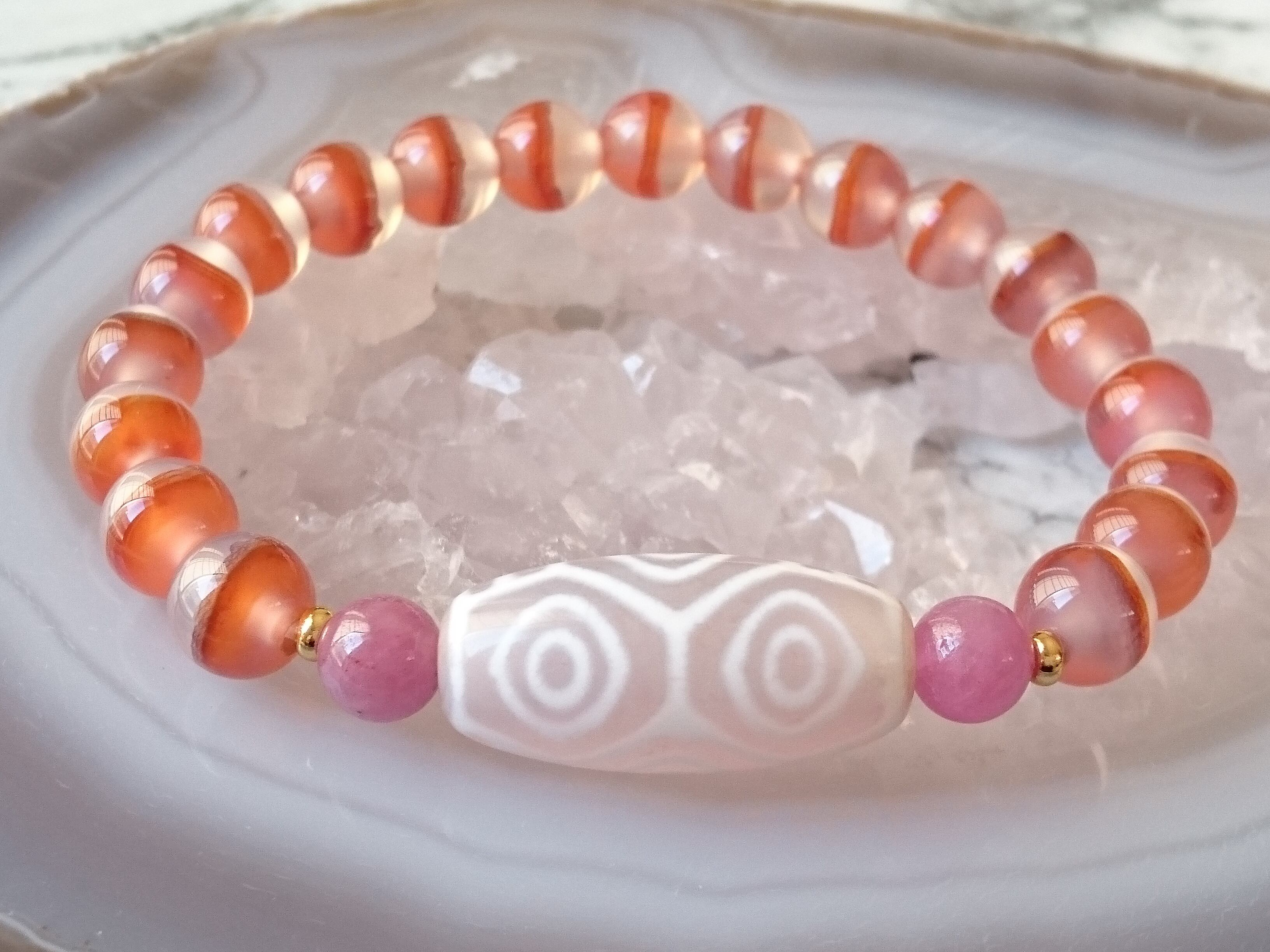 白玉髄龍眼天珠✨シナバーカルセドニー✨ブレスレット