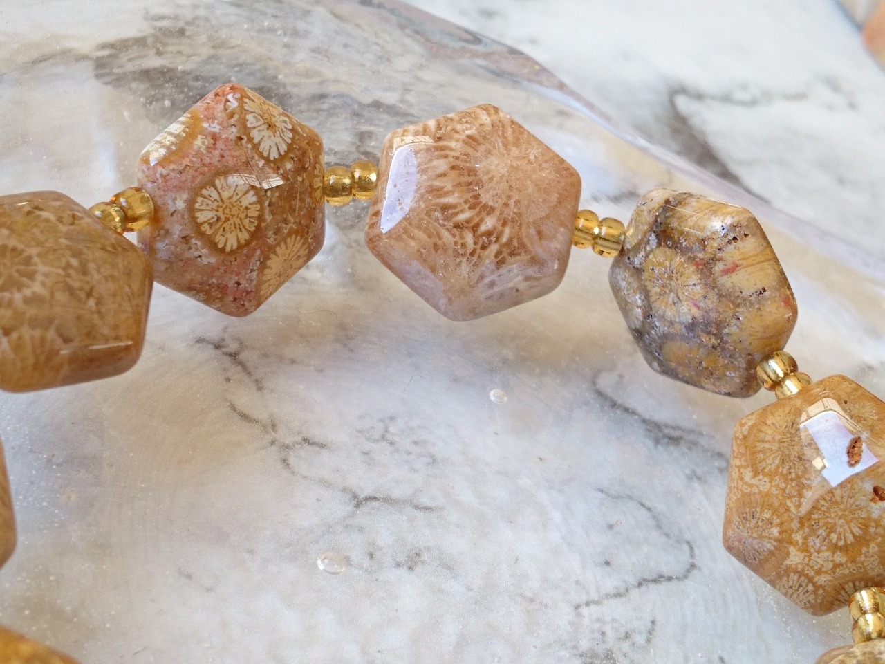 フォッシルコーラル✨珊瑚化石✨ブレスレット