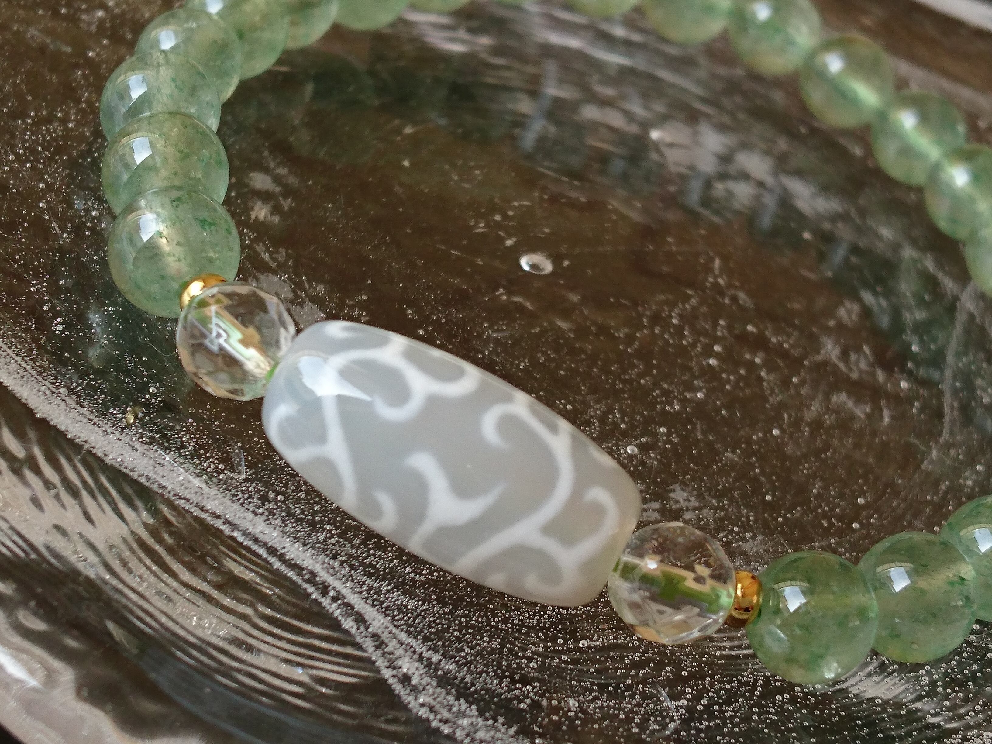 透明感のある美しい白玉髄天珠とグリーンエピドードです✨