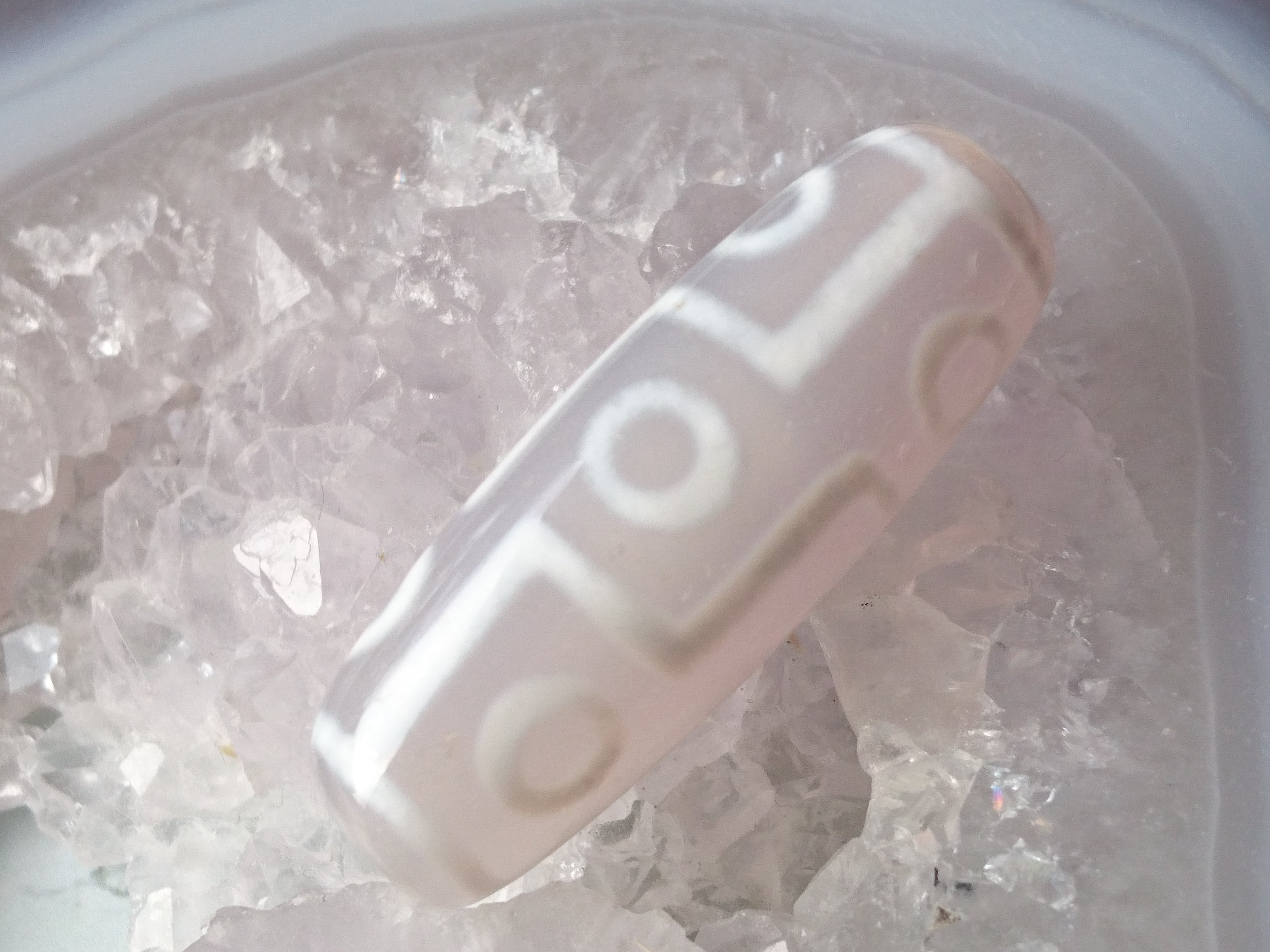 九眼天珠とは、密教には手で印を結びながら「臨、兵、闘、者、皆、陣、裂、在、前」と呪文を唱える九字の呪法がある。九眼天珠を持つことで九字の呪法を行ったのと同じ効果を得られる。つまり宿願成就を妨げる魔を切り祓う力がある。天珠の中でも最高のパワーを持つと云われている天珠です。この天珠には、今の地位を下げることなく倍増させる力を持つと云われています。