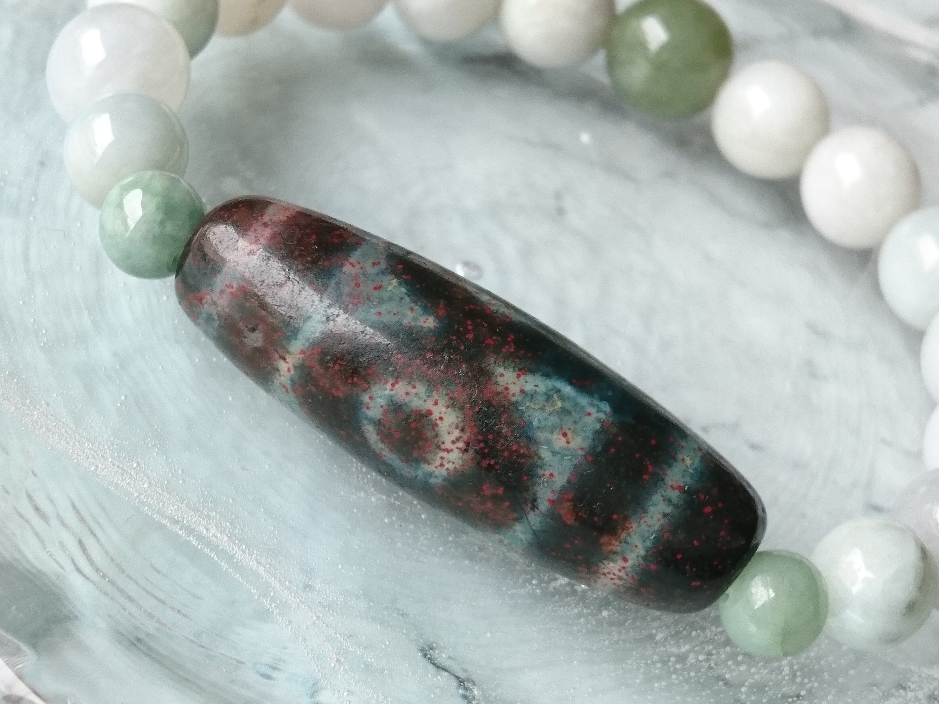 朱砂✨三眼天珠✨ミャンマー翡翠ブレスレット