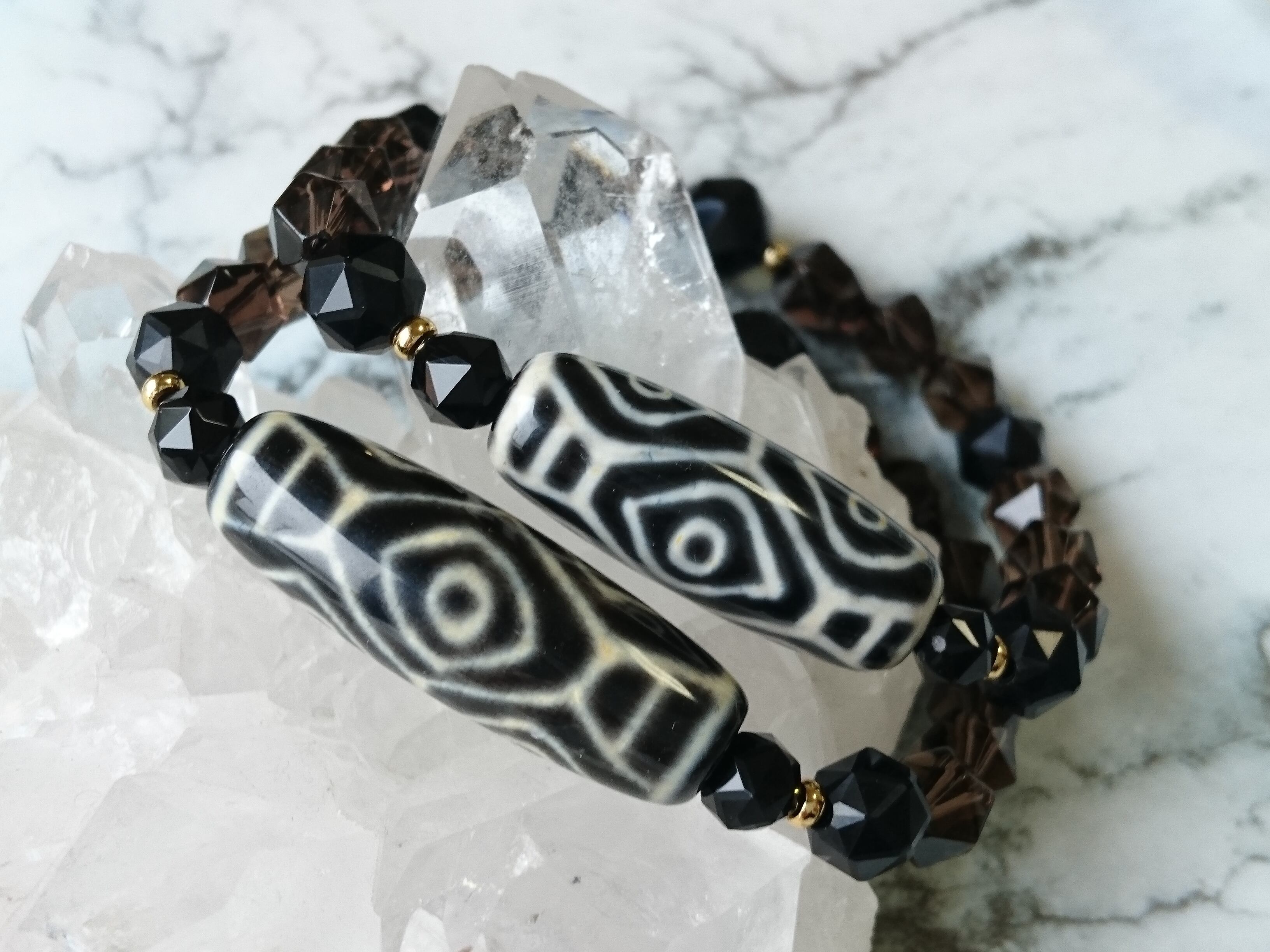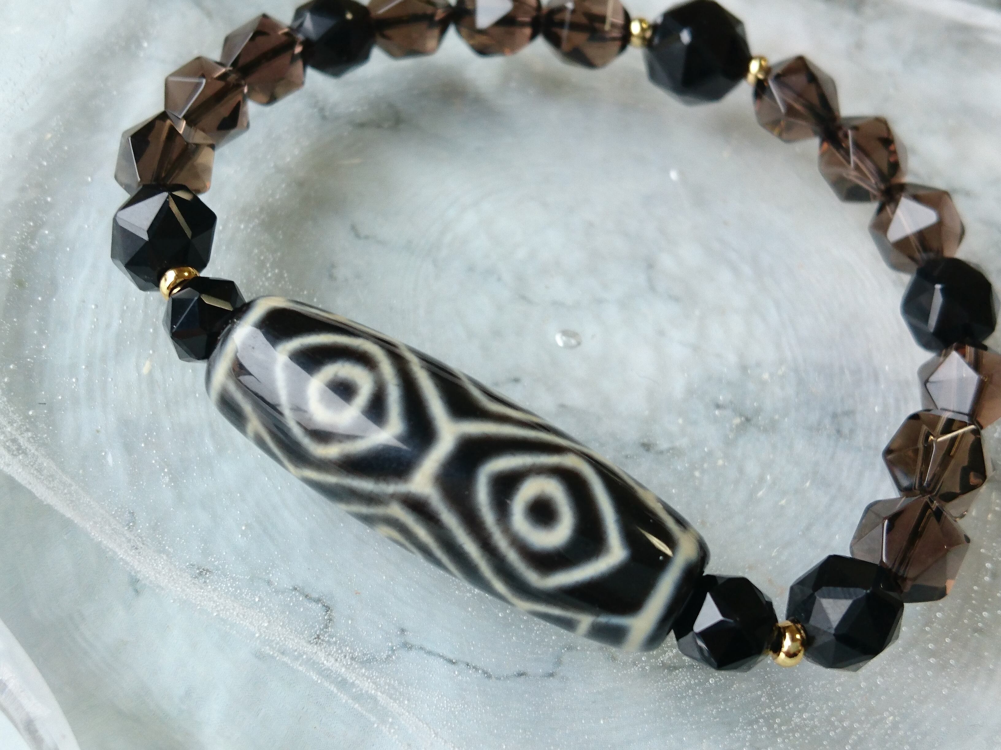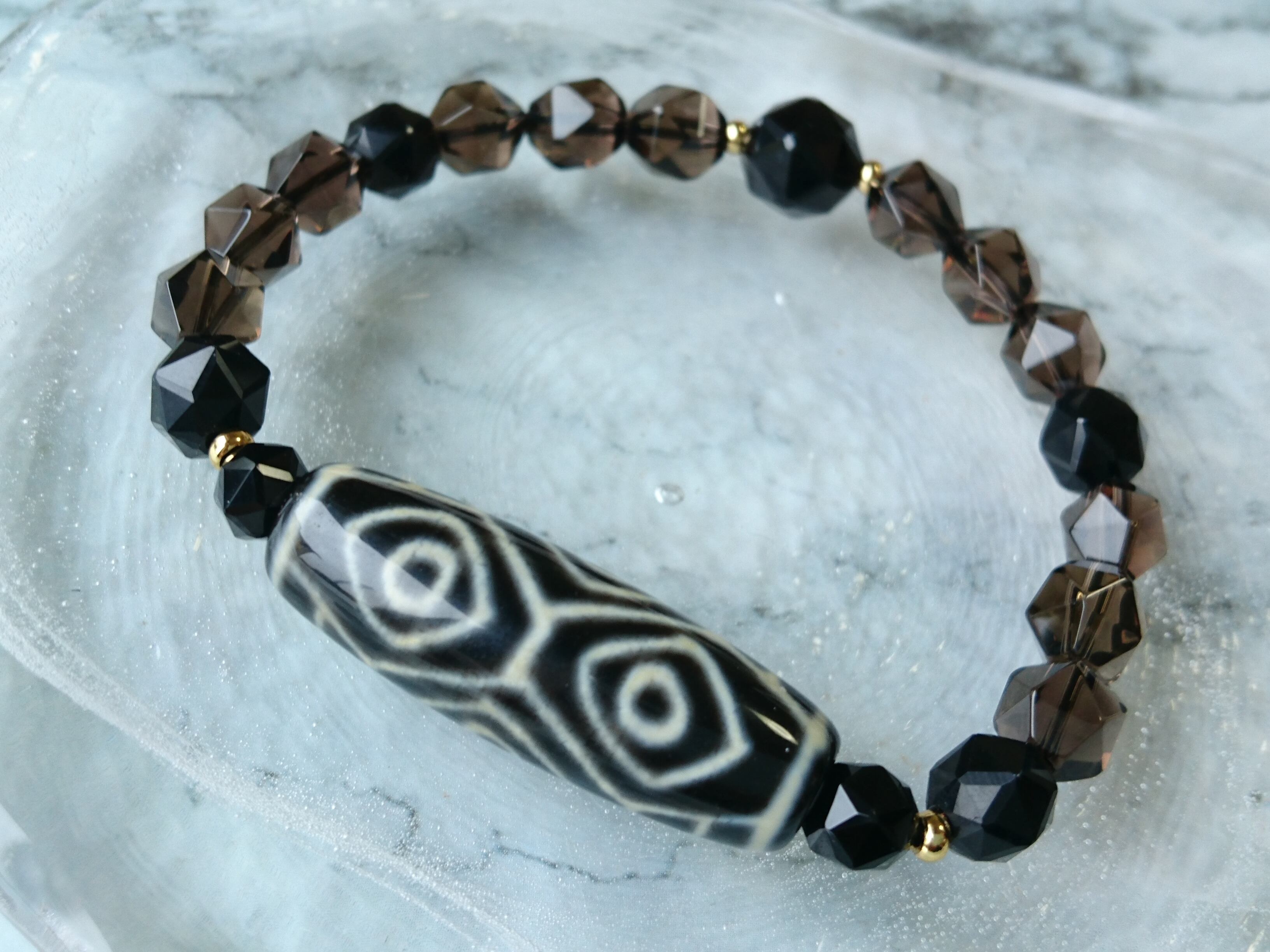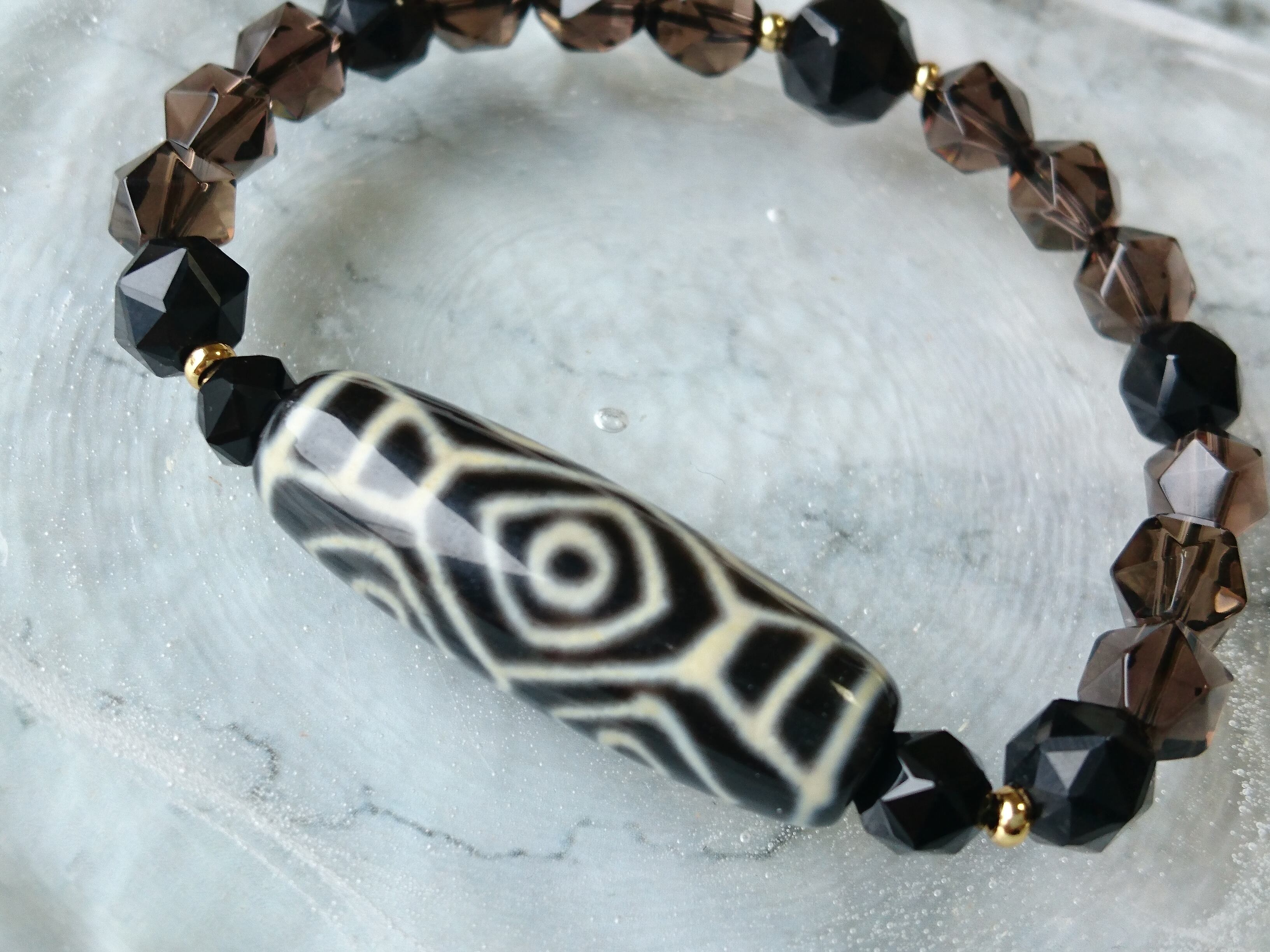龍眼天珠とキラキラスターカットのチベットモリオン、スモーキークォーツです✨