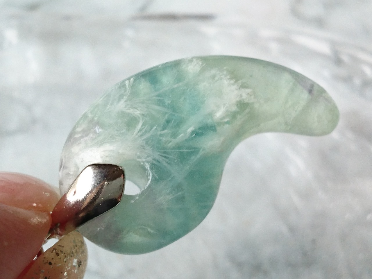 エンジェルフェザーフローライト✨勾玉ペンダント