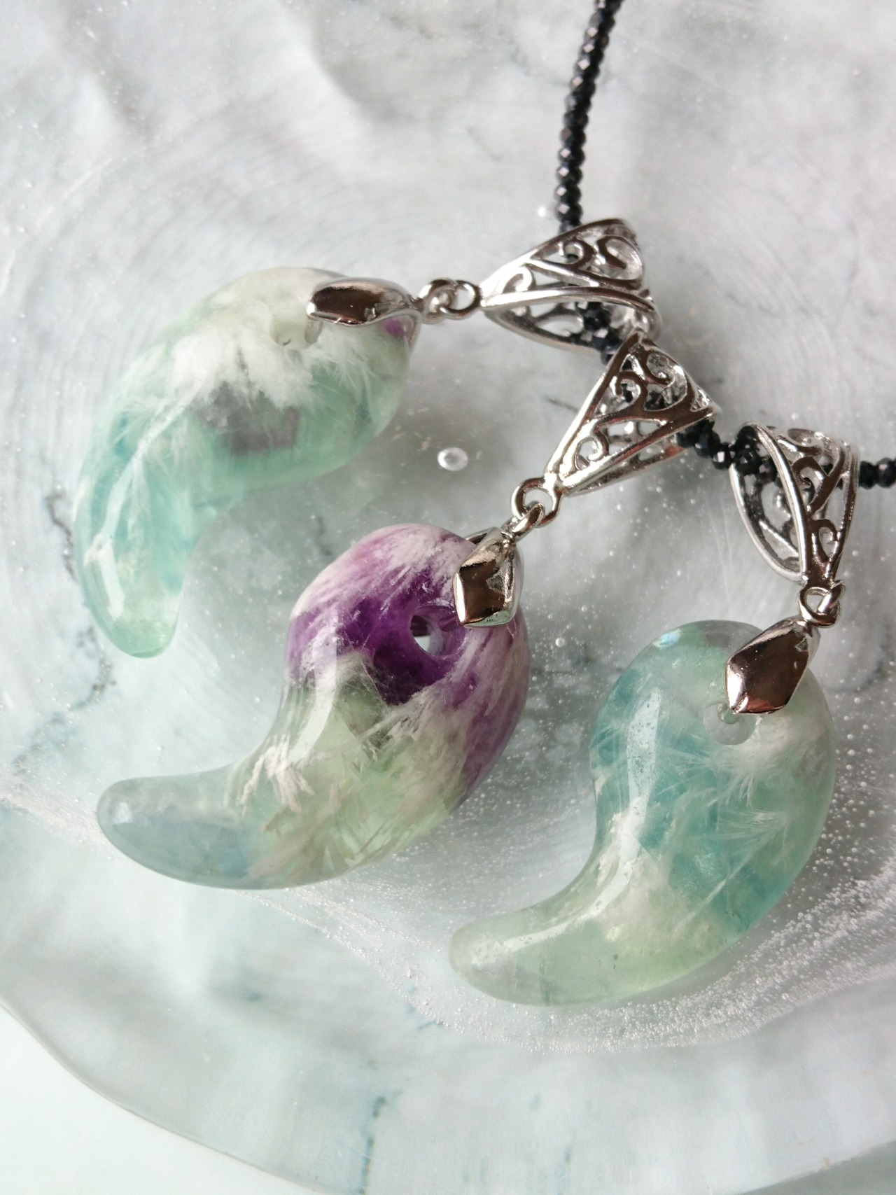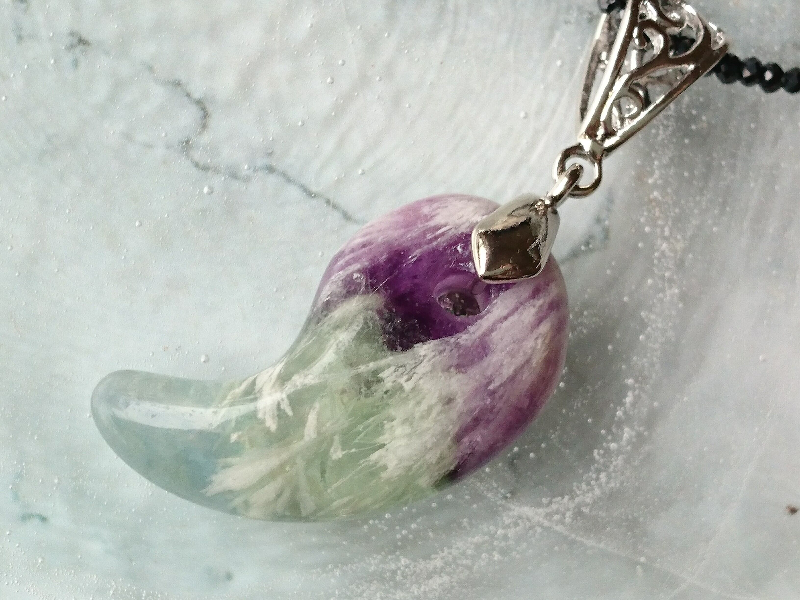 エンジェルフェザーフローライト✨勾玉ペンダント