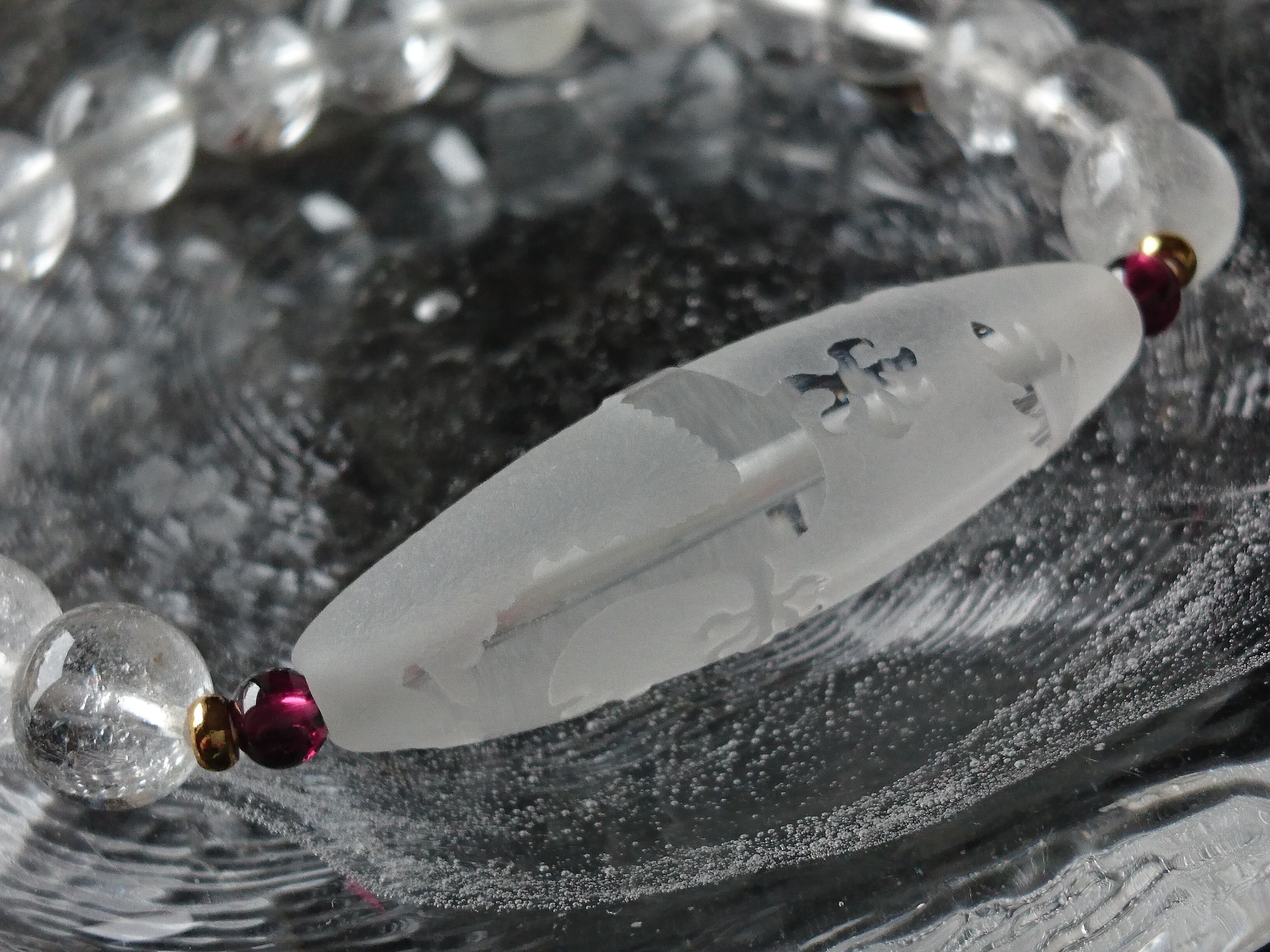 フロストの水晶龍神天珠とほわっとミストが入ったスノー系マニカラン水晶です✨