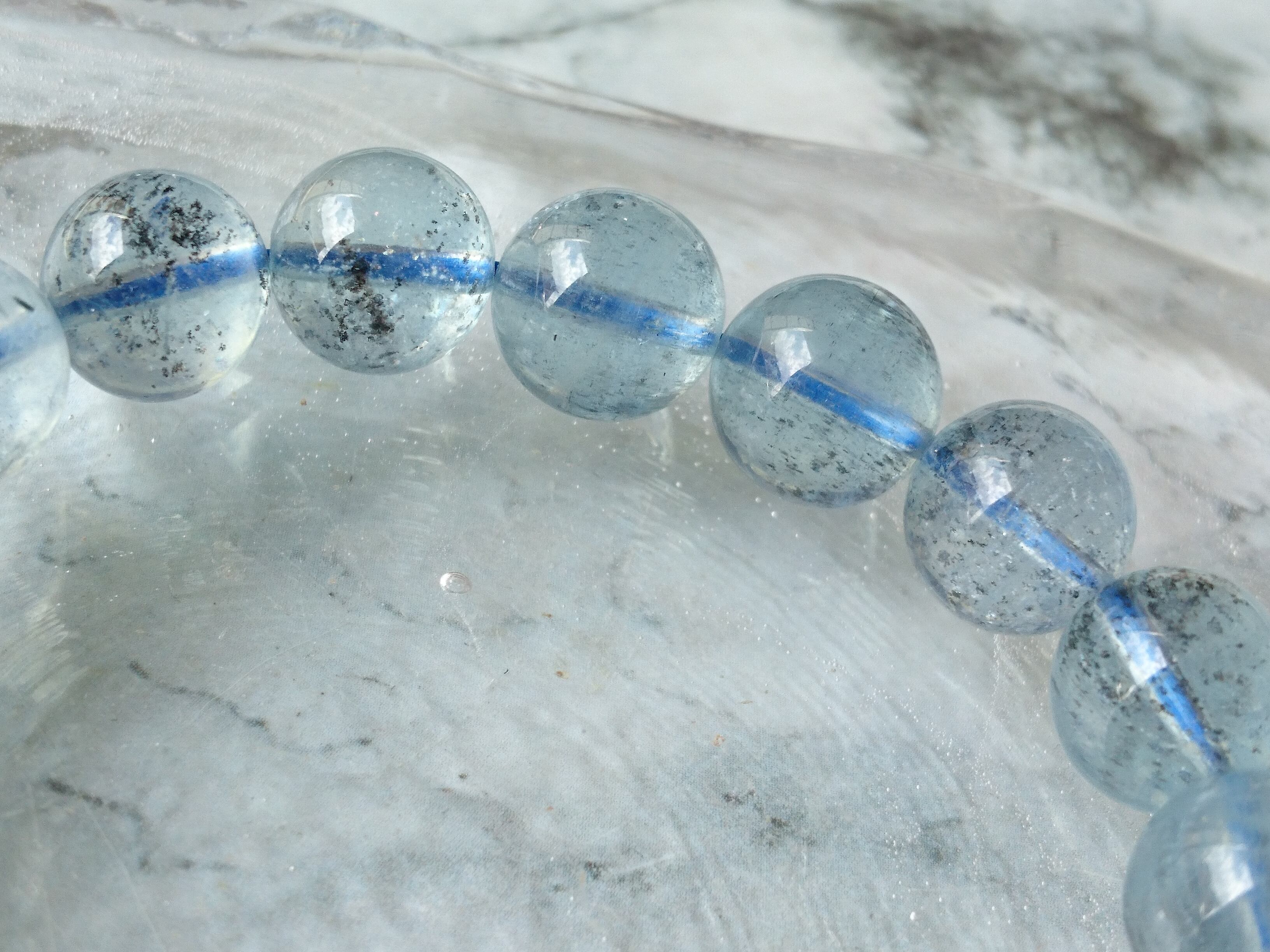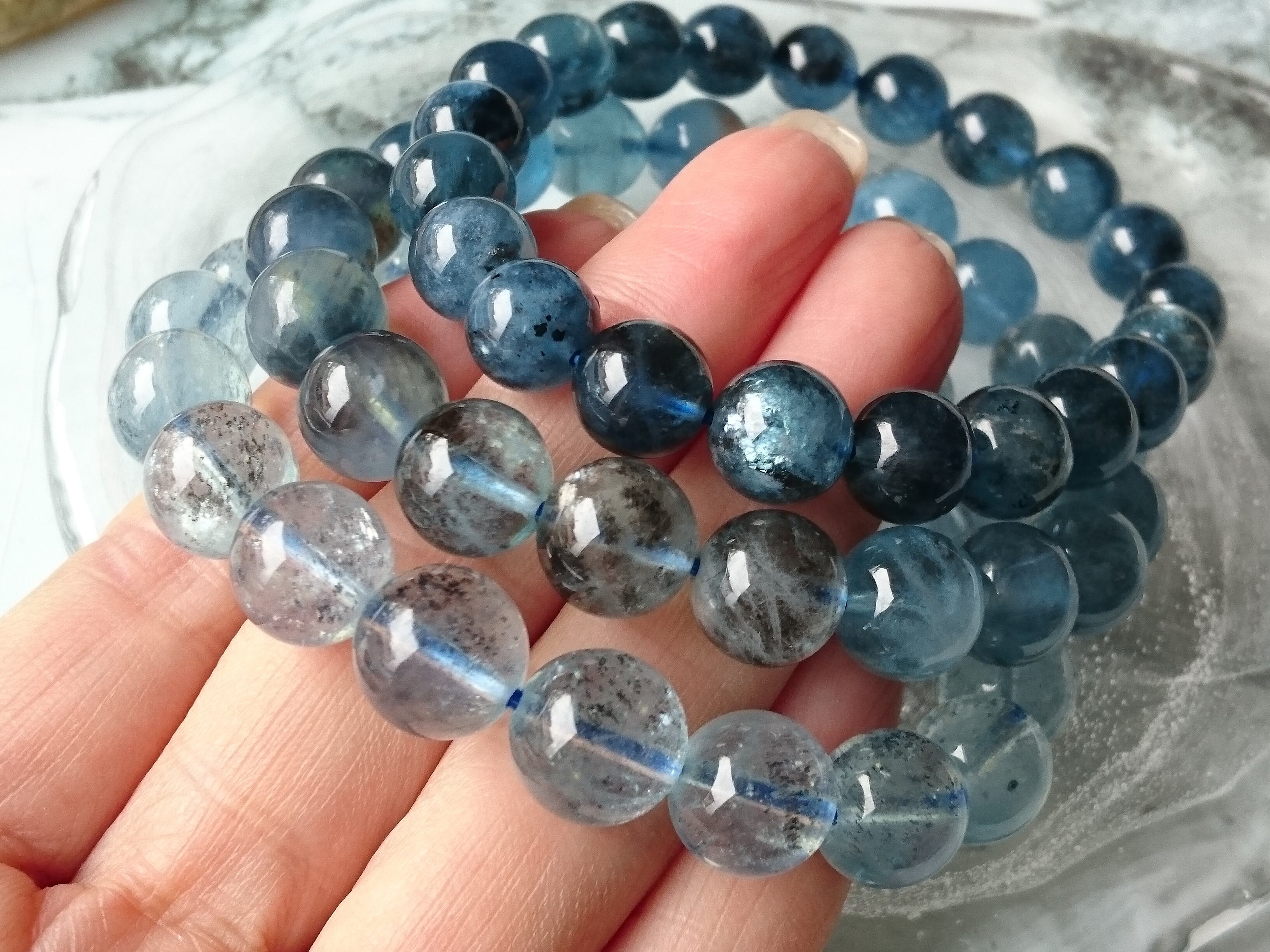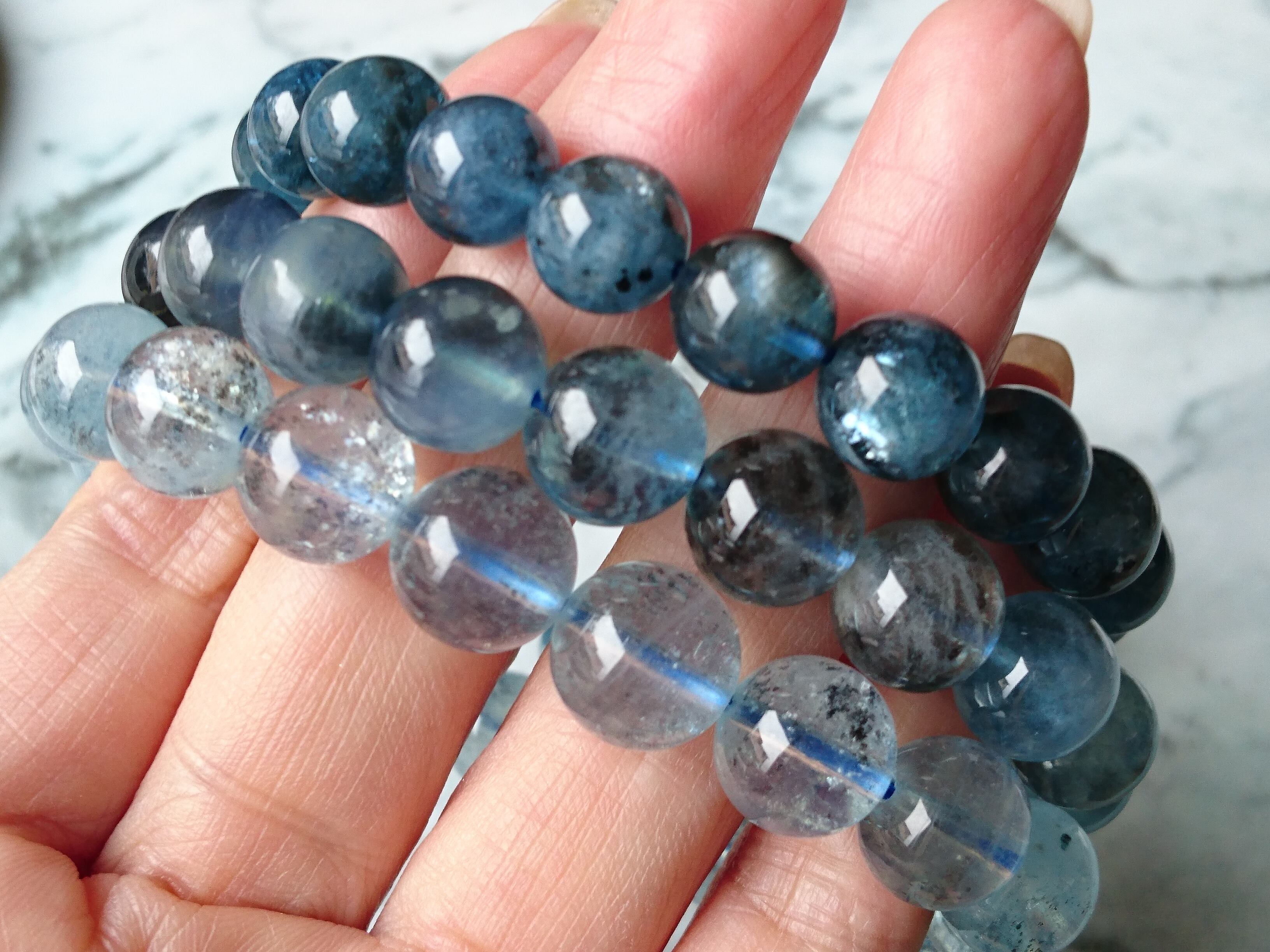 黒いイルメナイトというチタン鉱物が内包した黒みのブルーにシラーがキラキラします✨