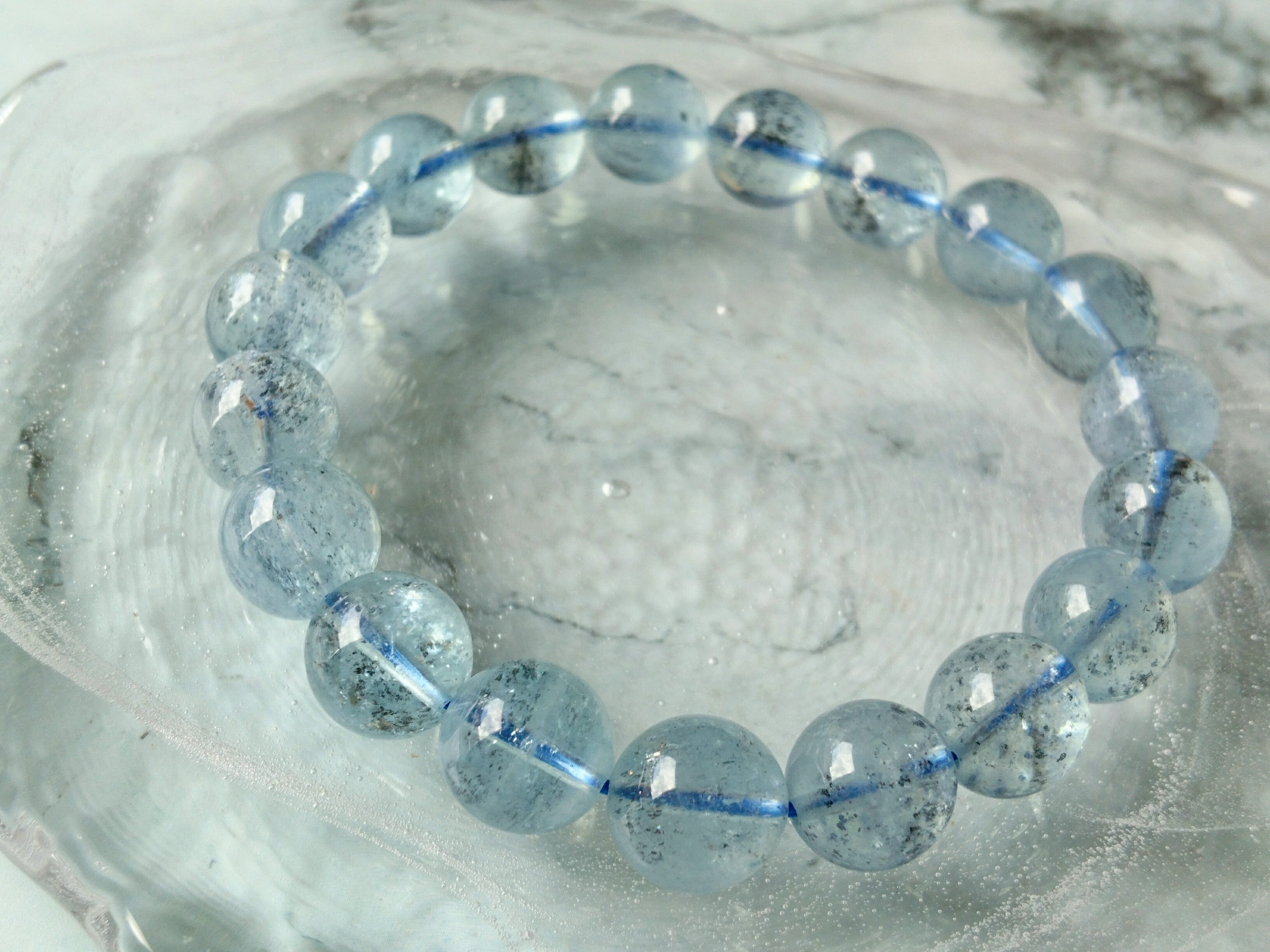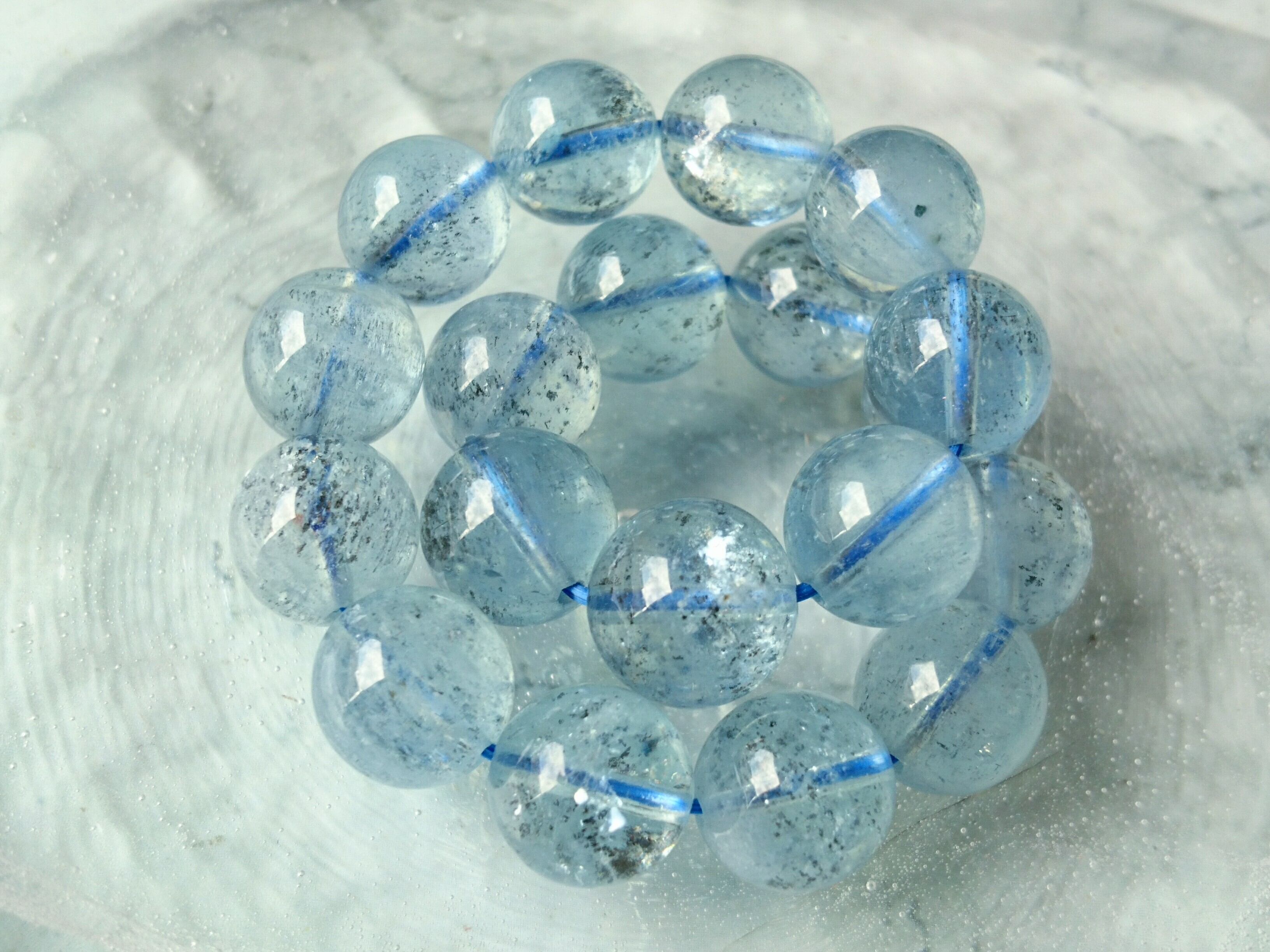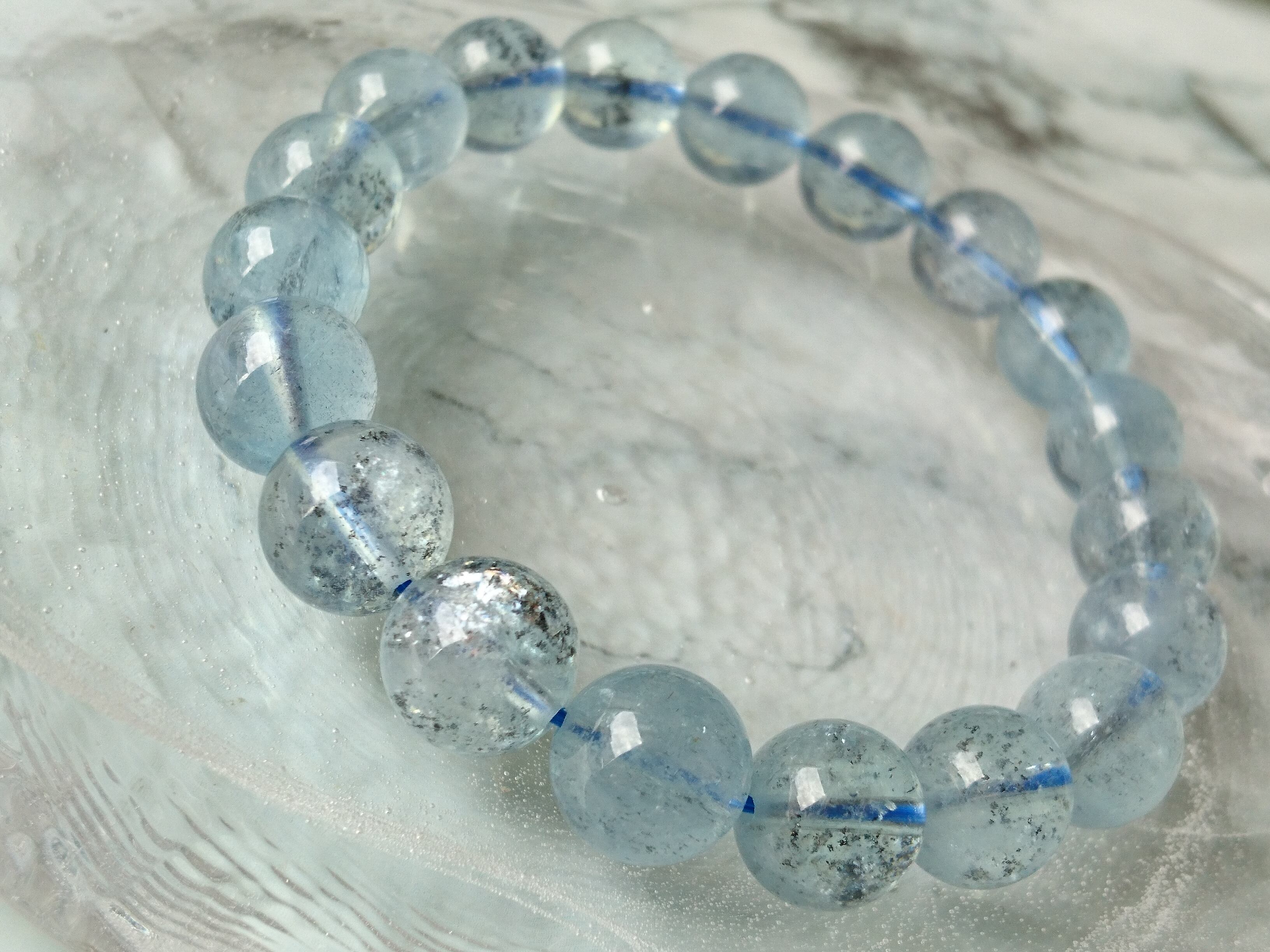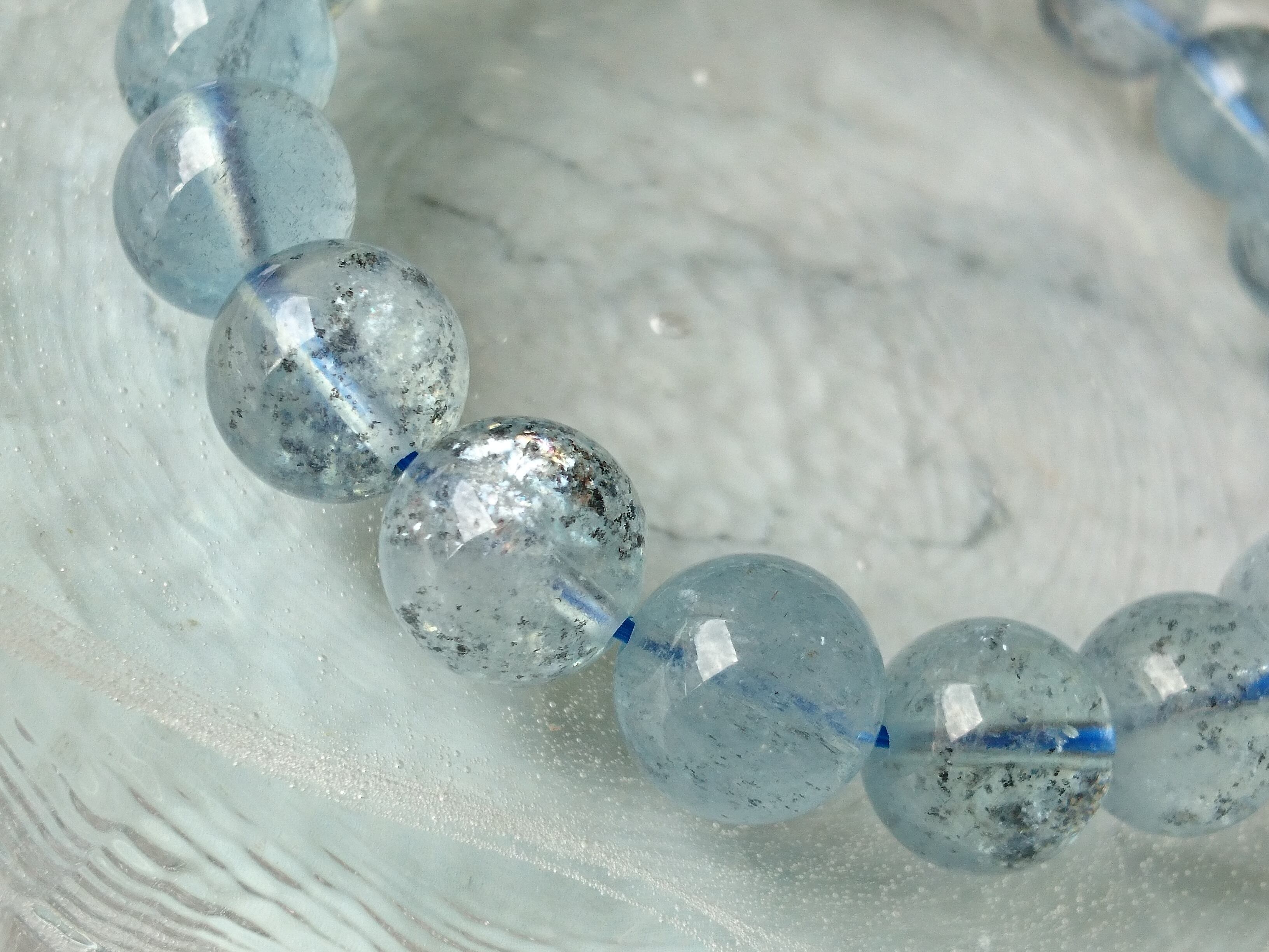 黒いイルメナイトというチタン鉱物が内包した黒みのブルーにシラーがキラキラします✨