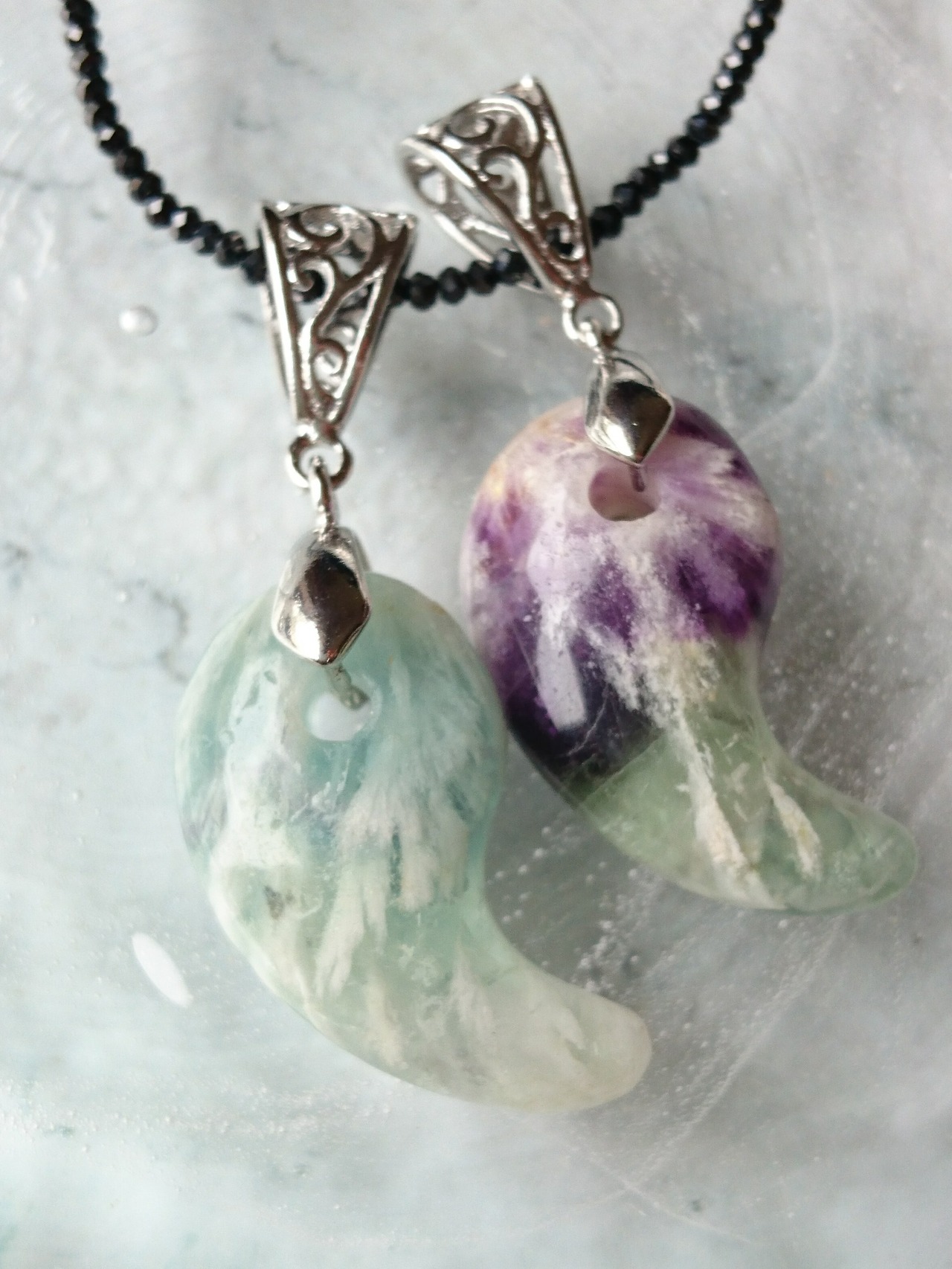 エンジェルフェザーフローライト✨勾玉ペンダント