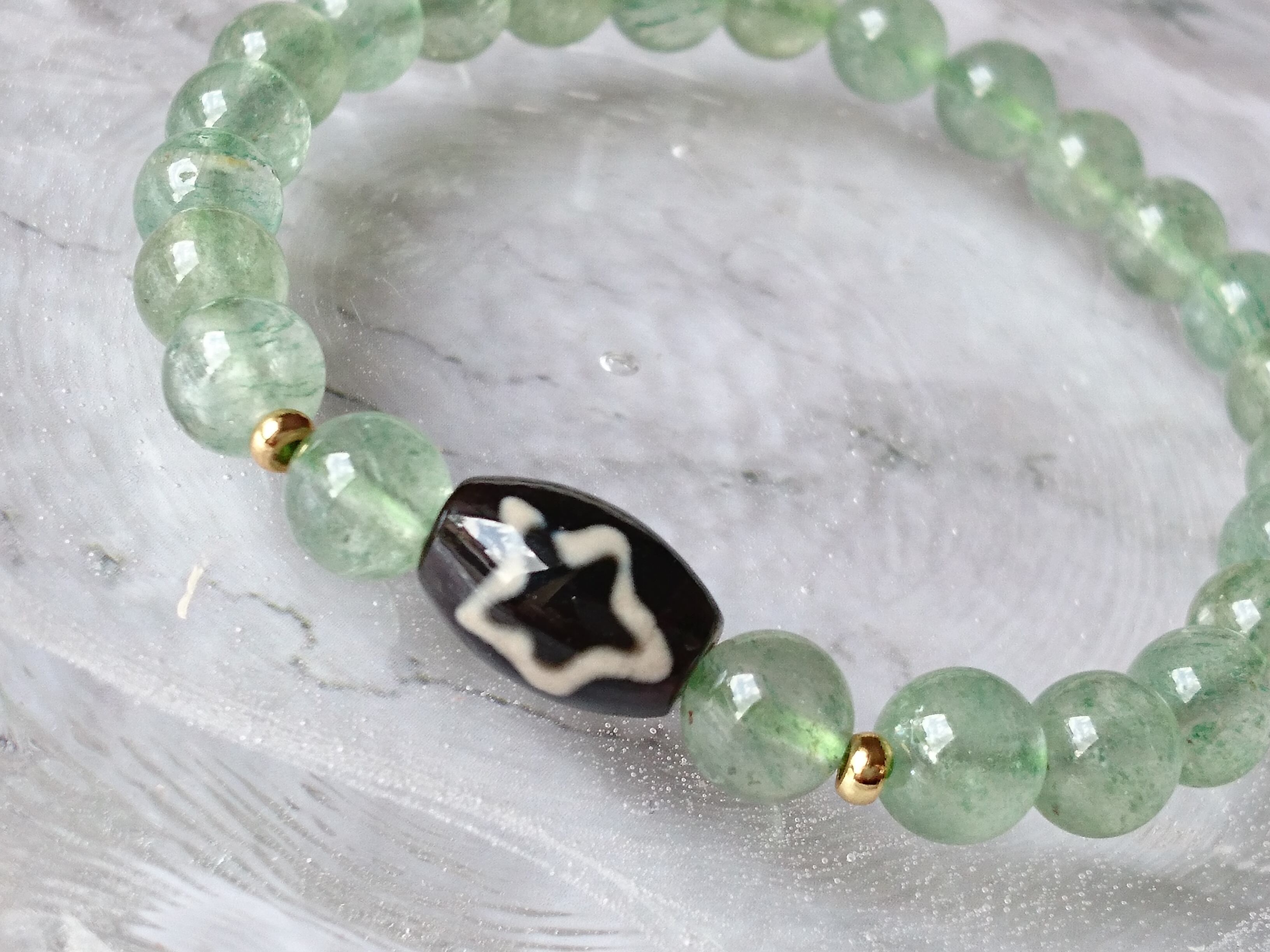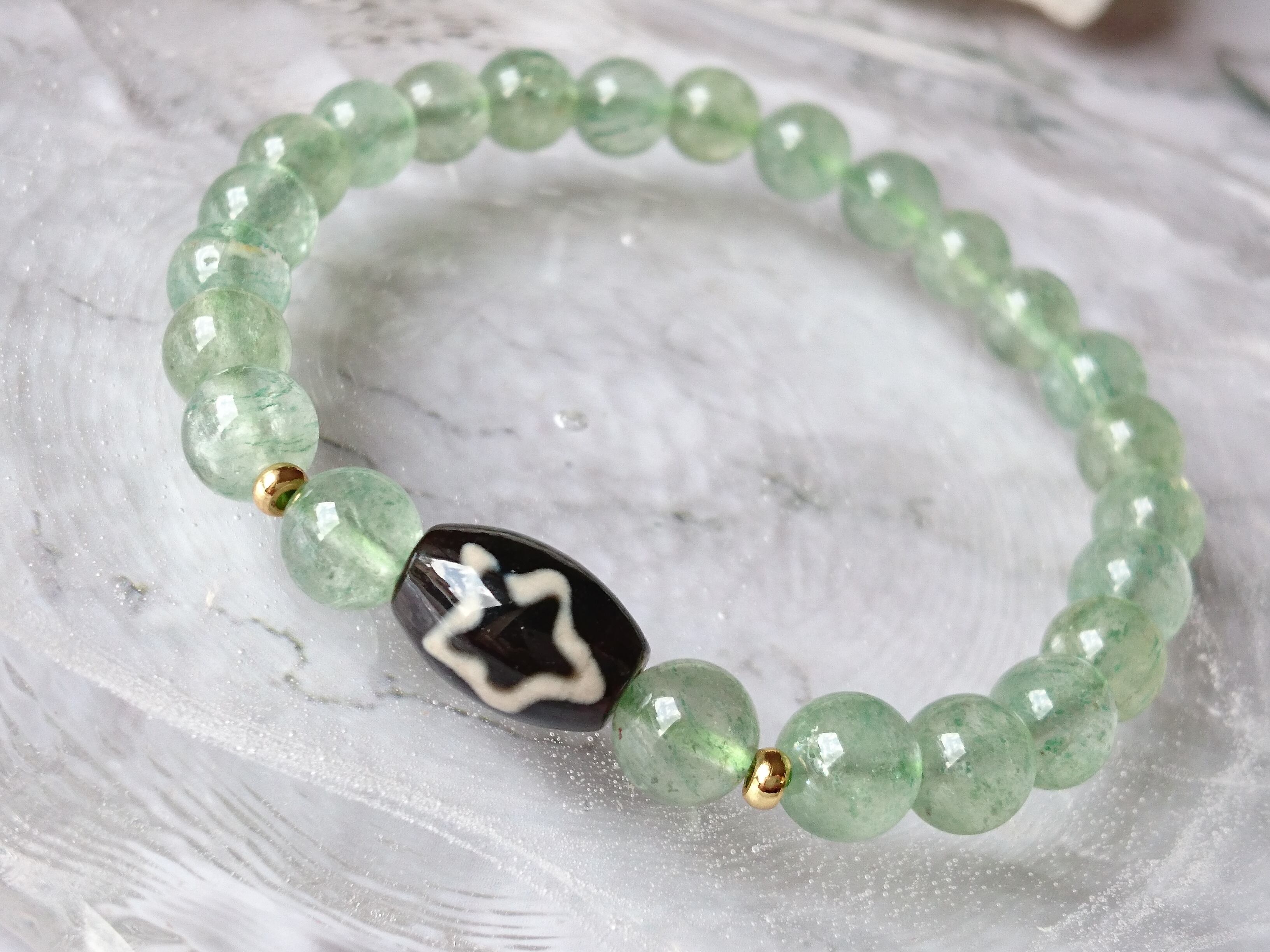 着けやすいミニの日月星天珠とグリーンストロベリークォーツです✨