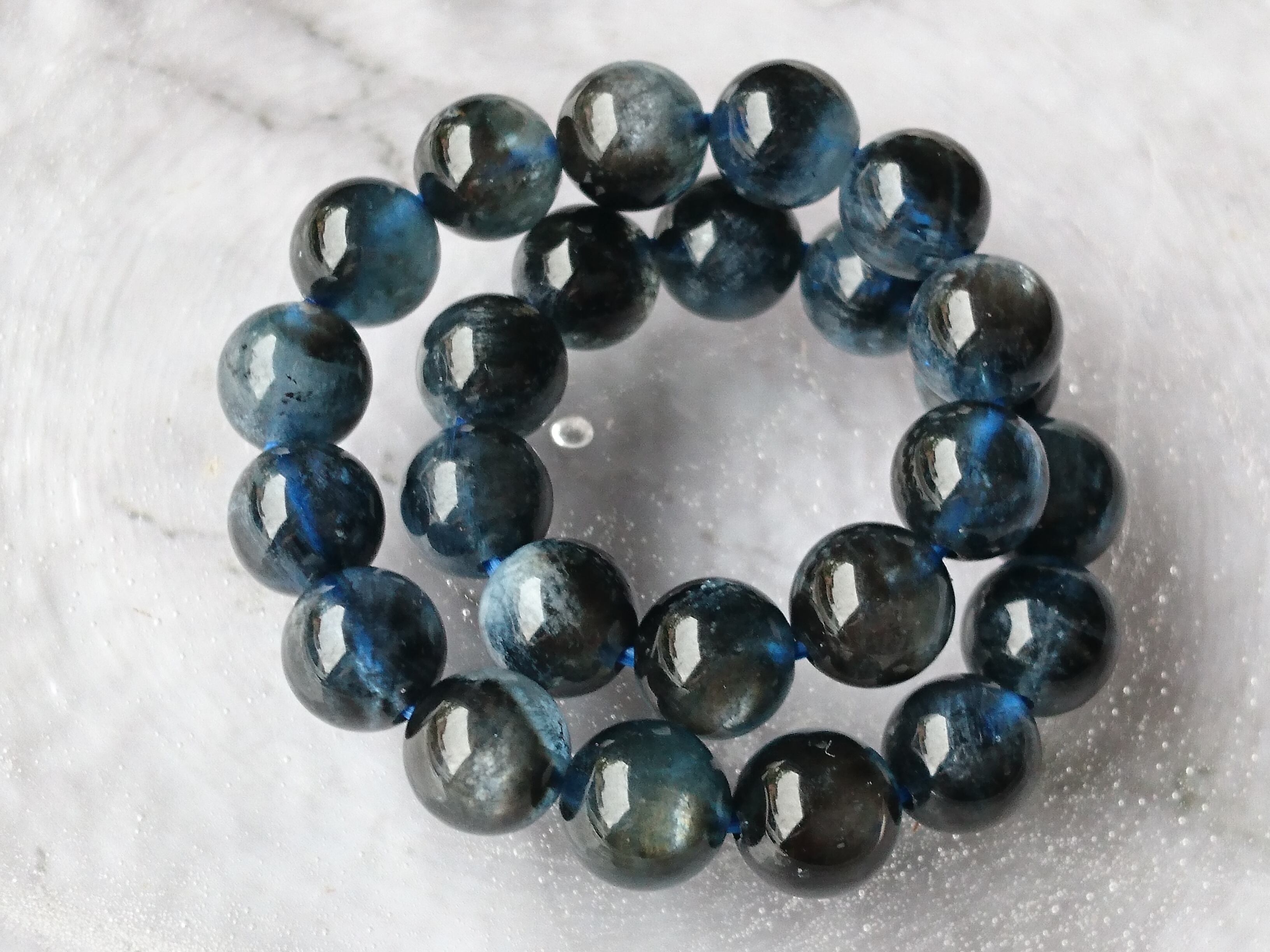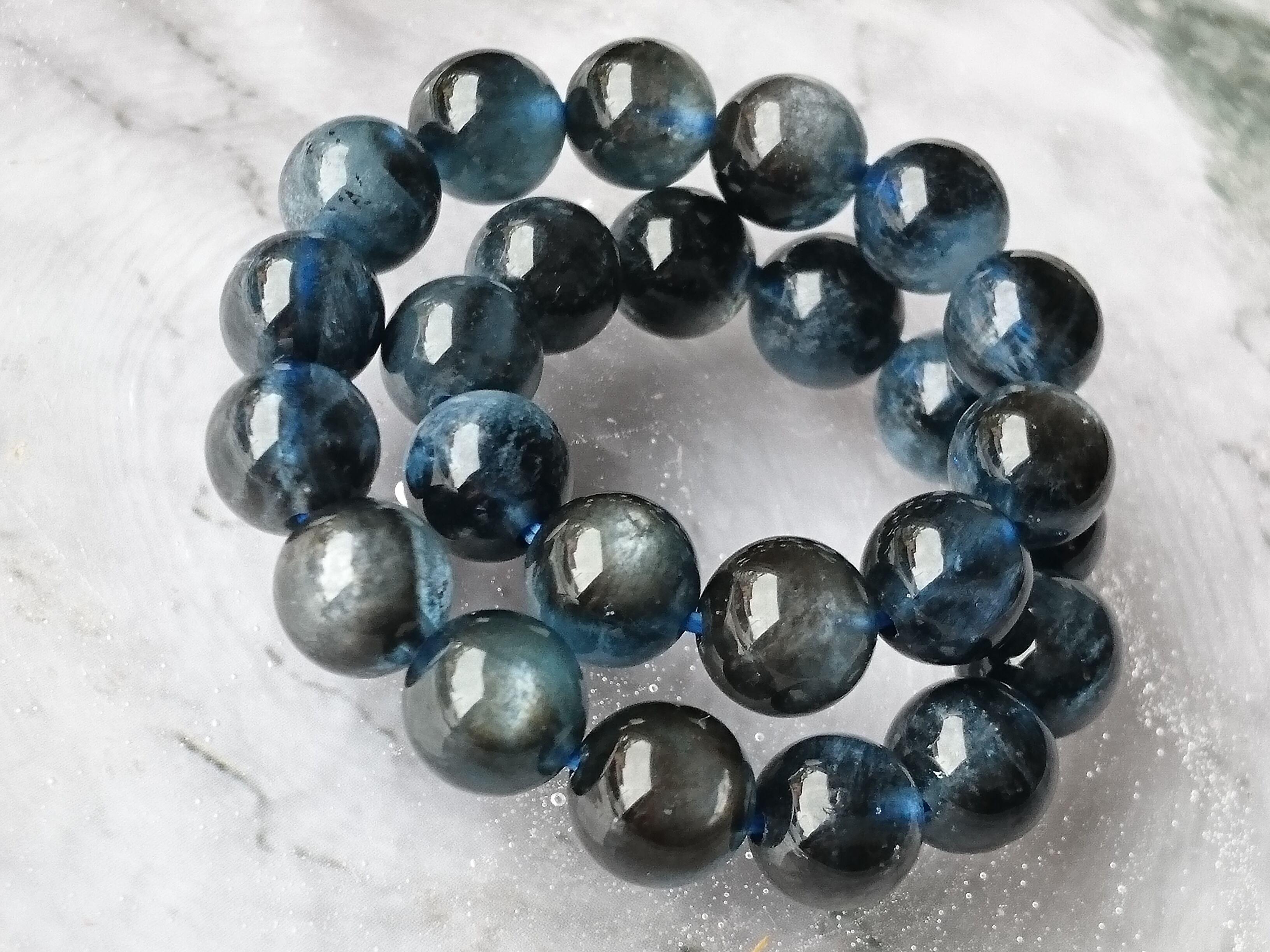 透明感のある濃いブラックアクアマリンです✨黒みのブルーに強いシラーが光ります✨