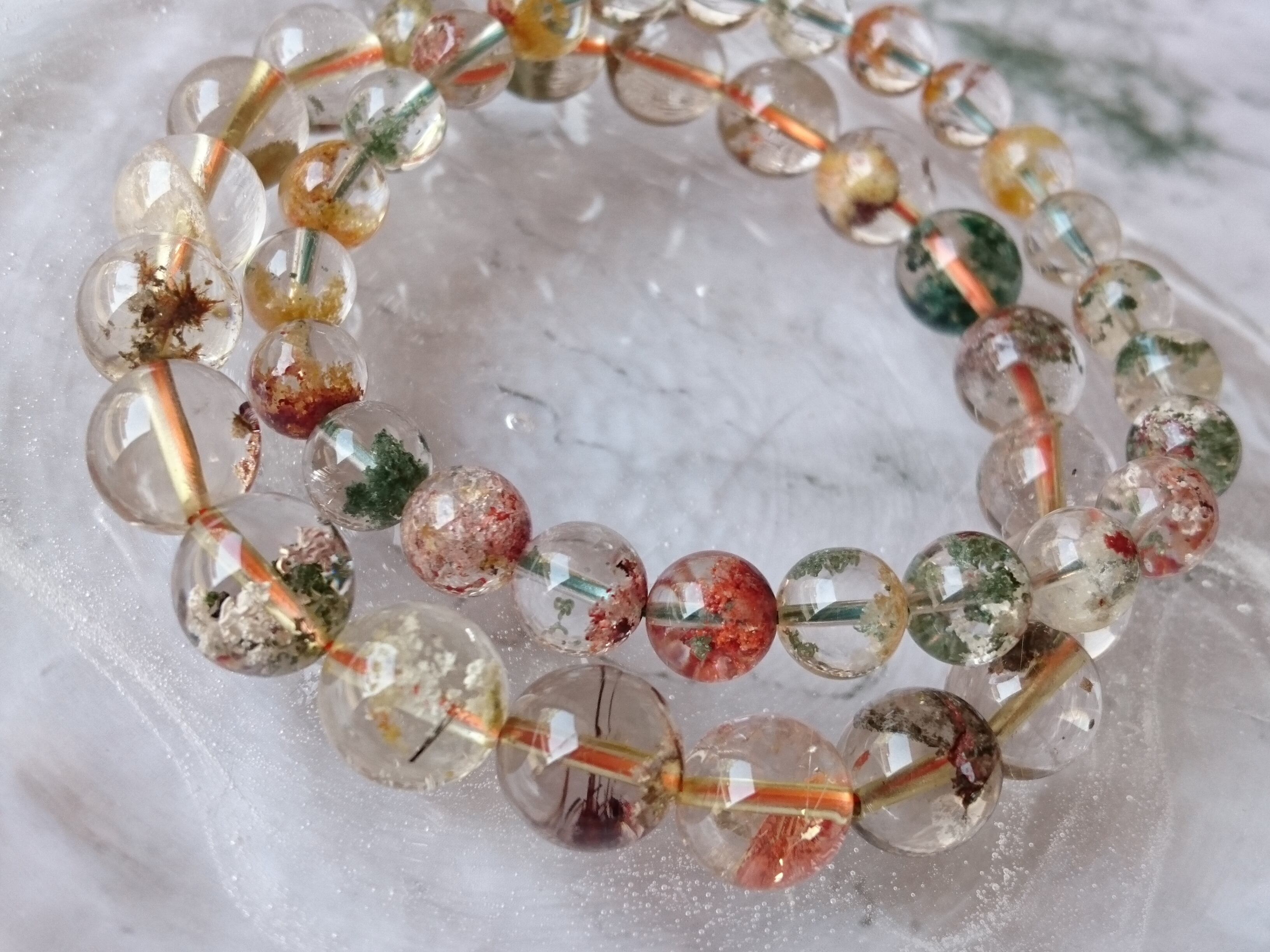 クリアなクォーツにグリーン、ホワイト,オレンジなどのガーデンインです✨