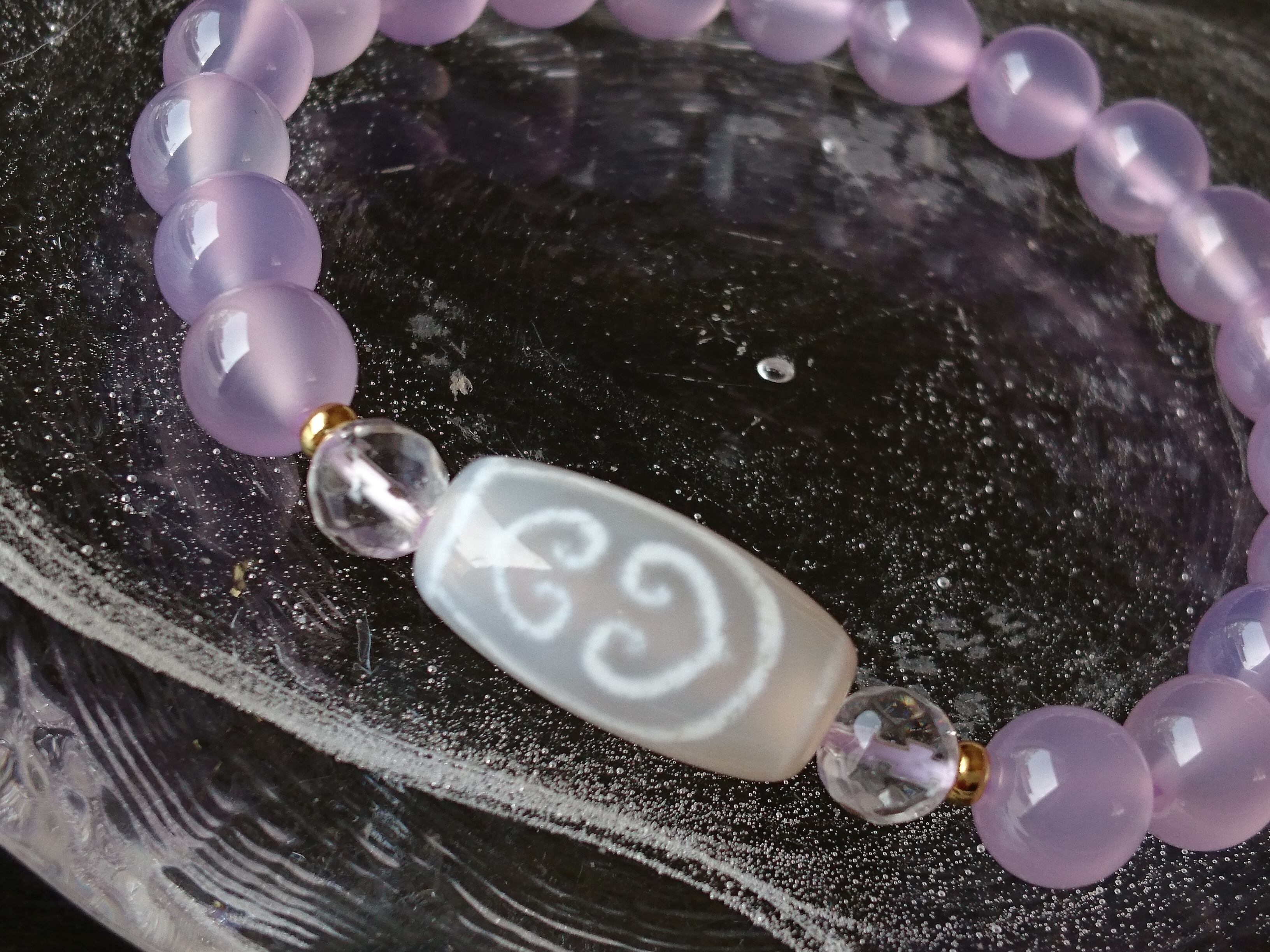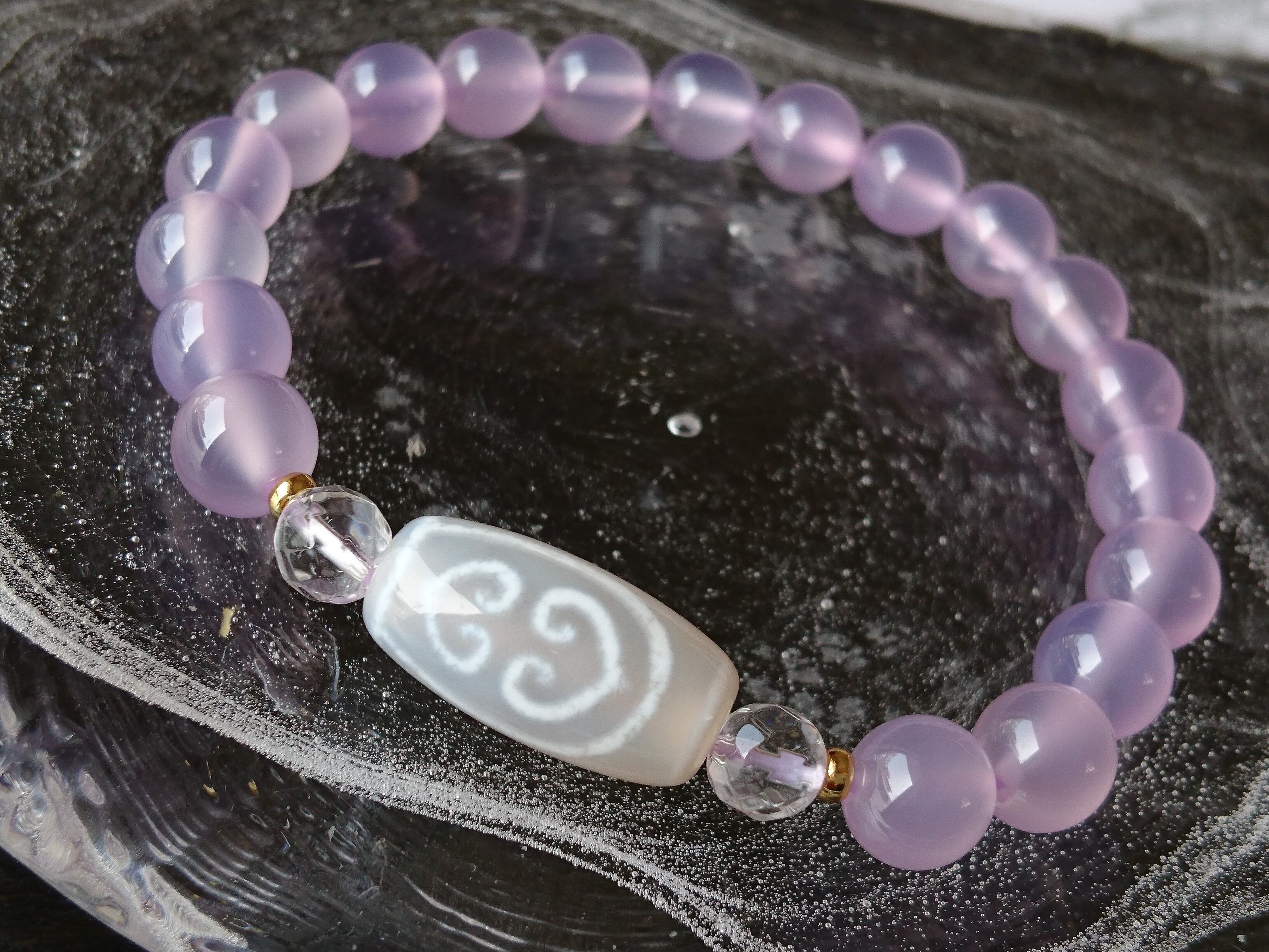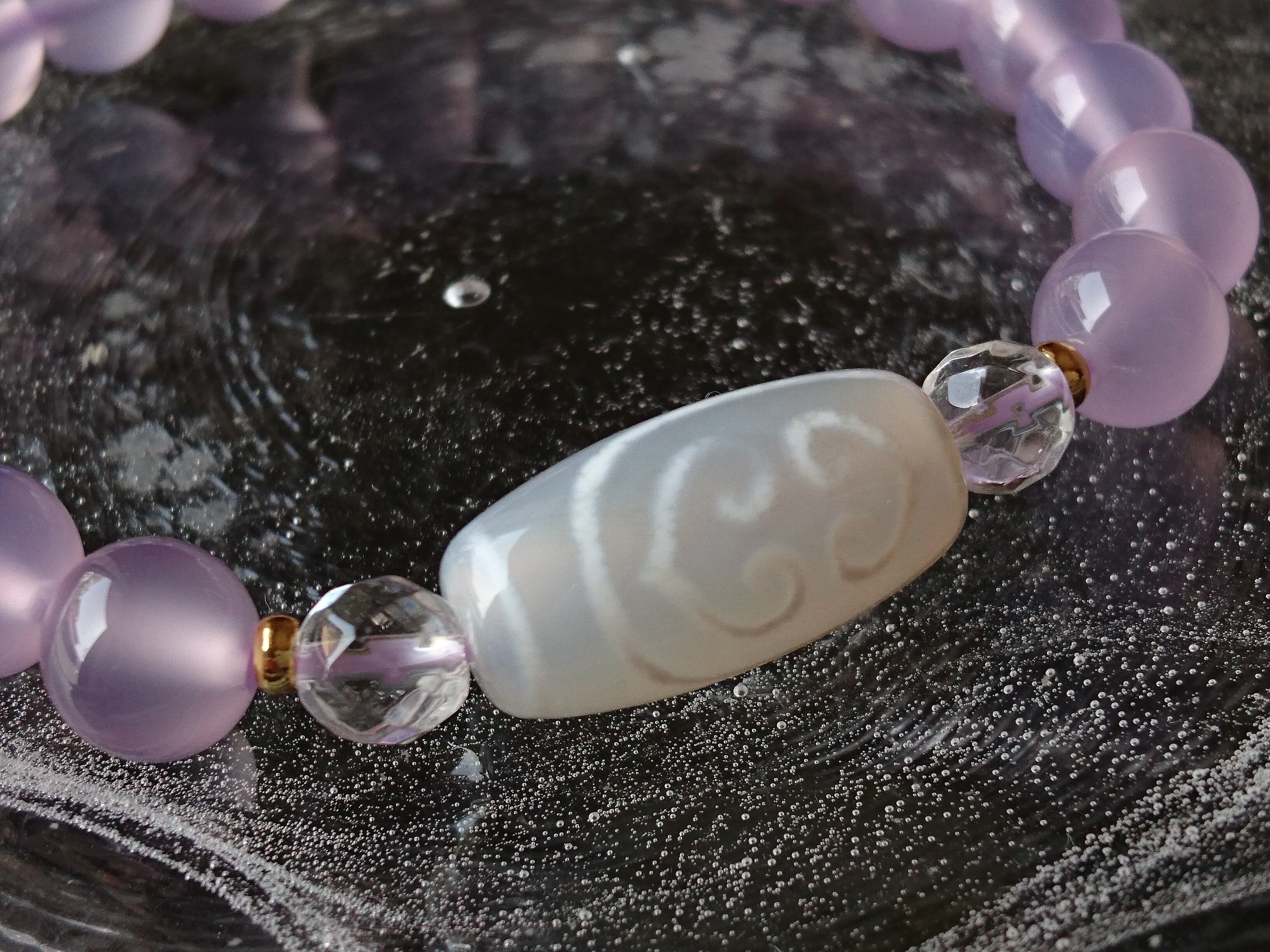 白玉髄双心天珠✨ラベンダーカルセドニーブレスレット
