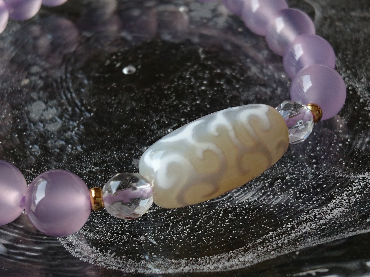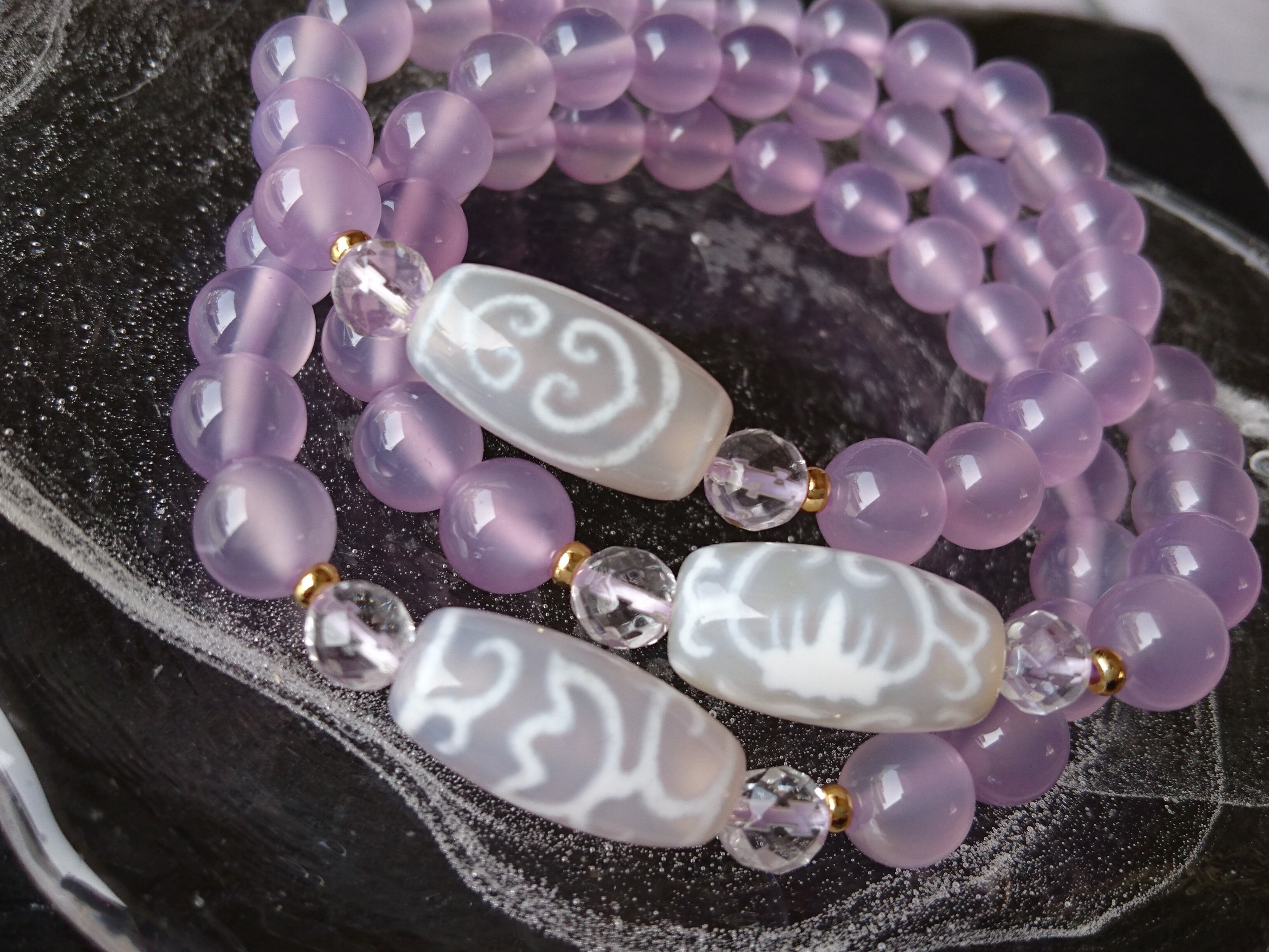 白玉髄如意蓮花天珠✨ラベンダーカルセドニーブレスレット