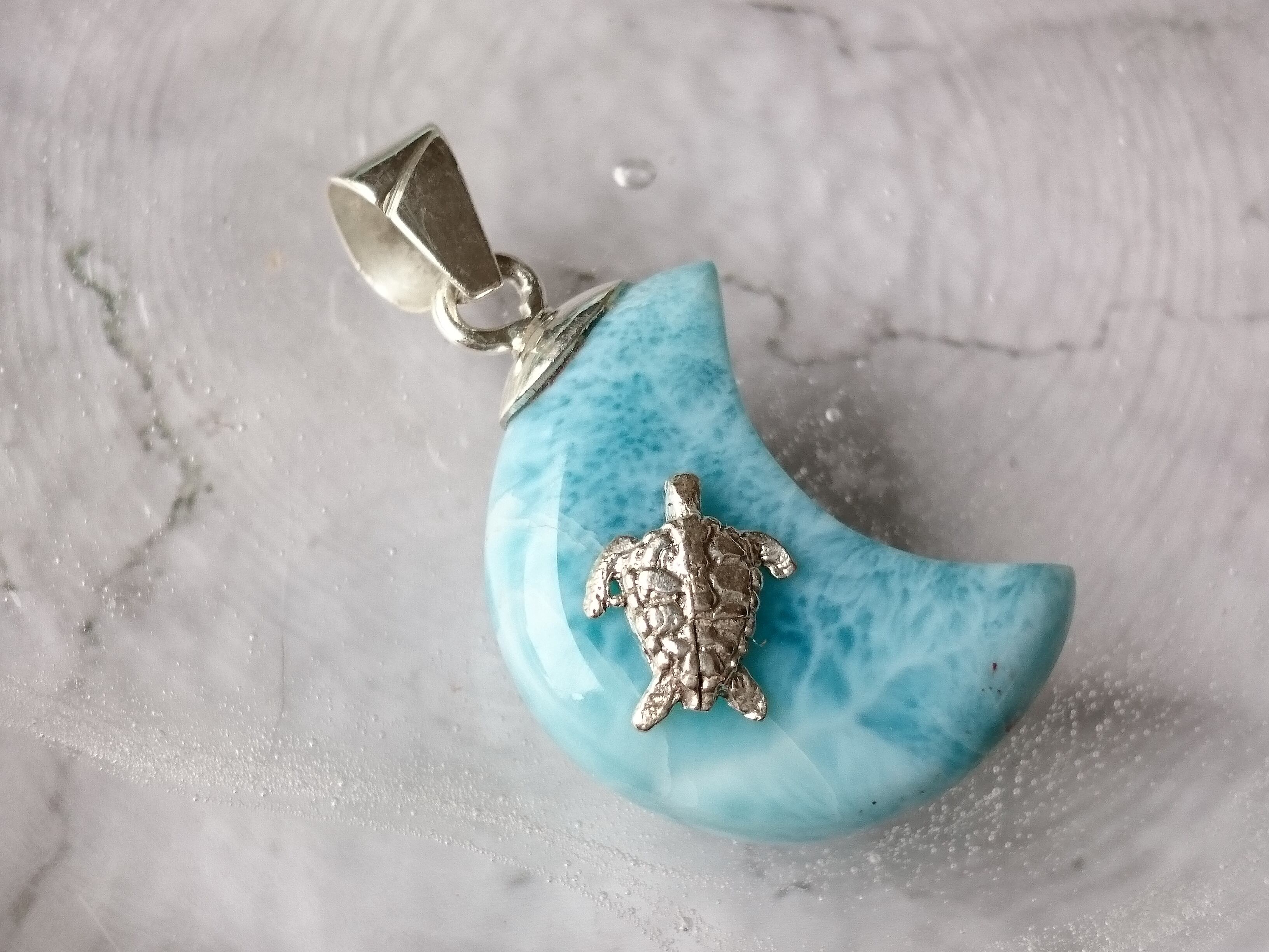 ブルーの波模様のラリマー月に亀です✨