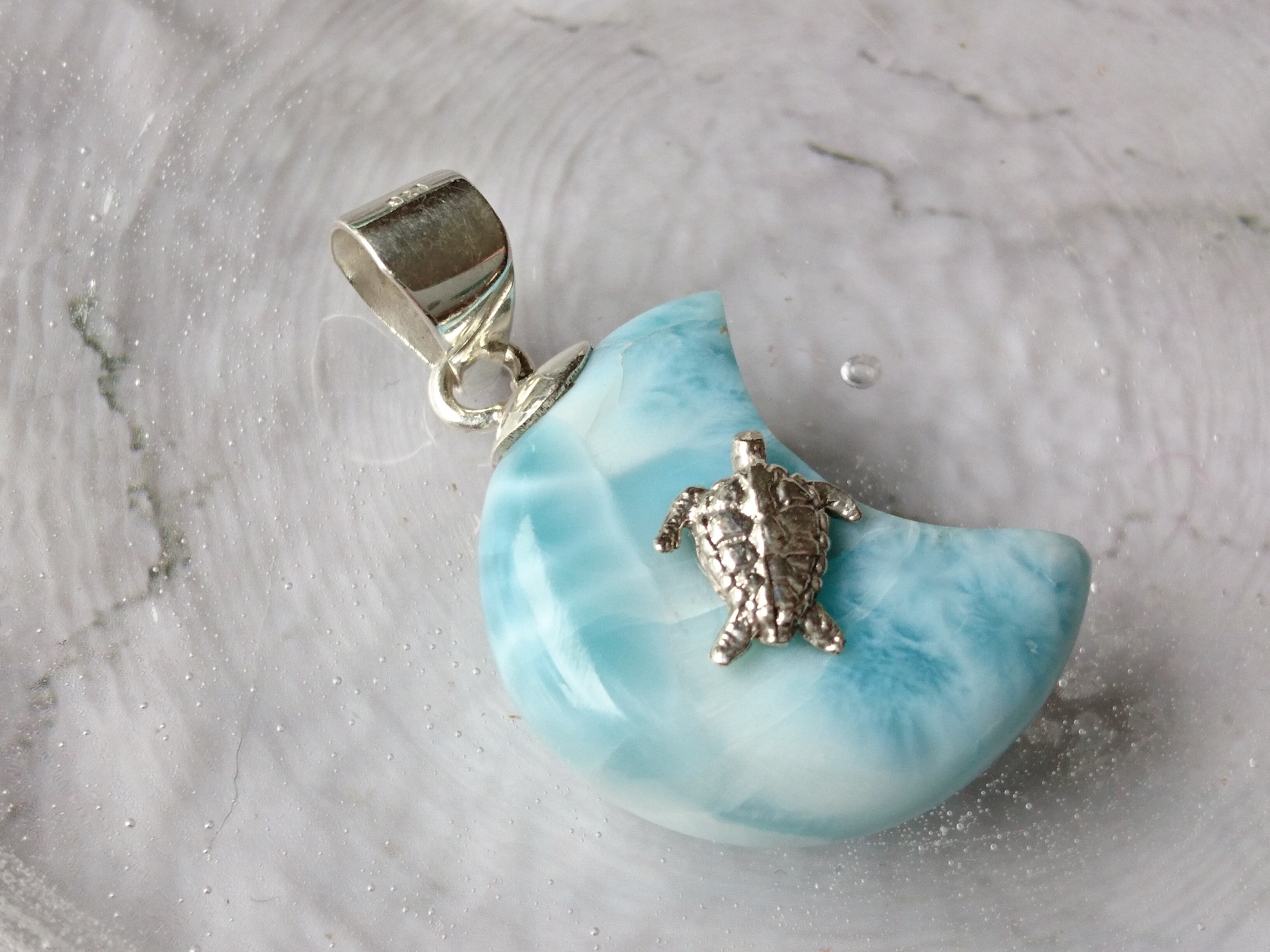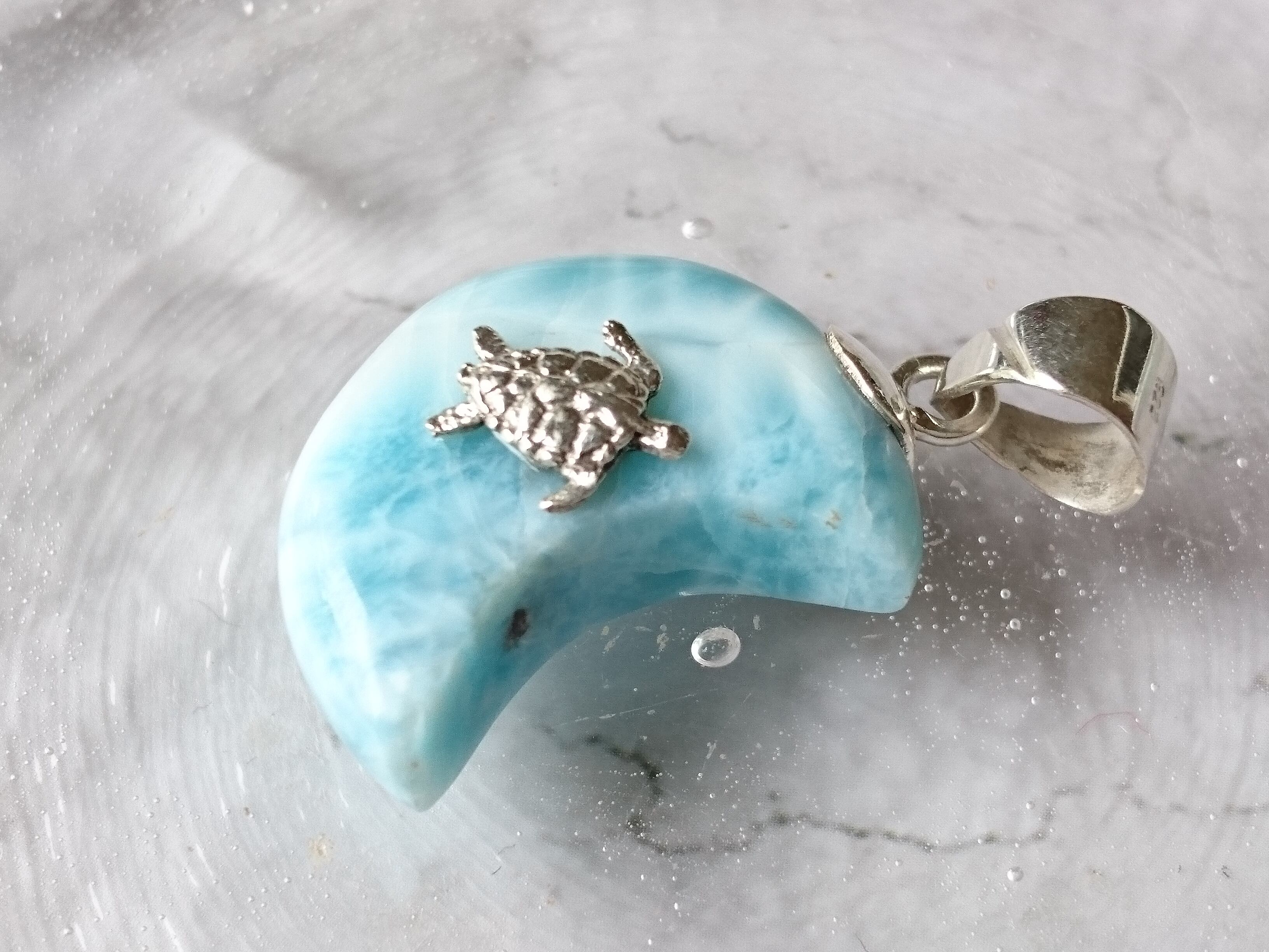 ブルーの波模様のラリマー月に亀です✨