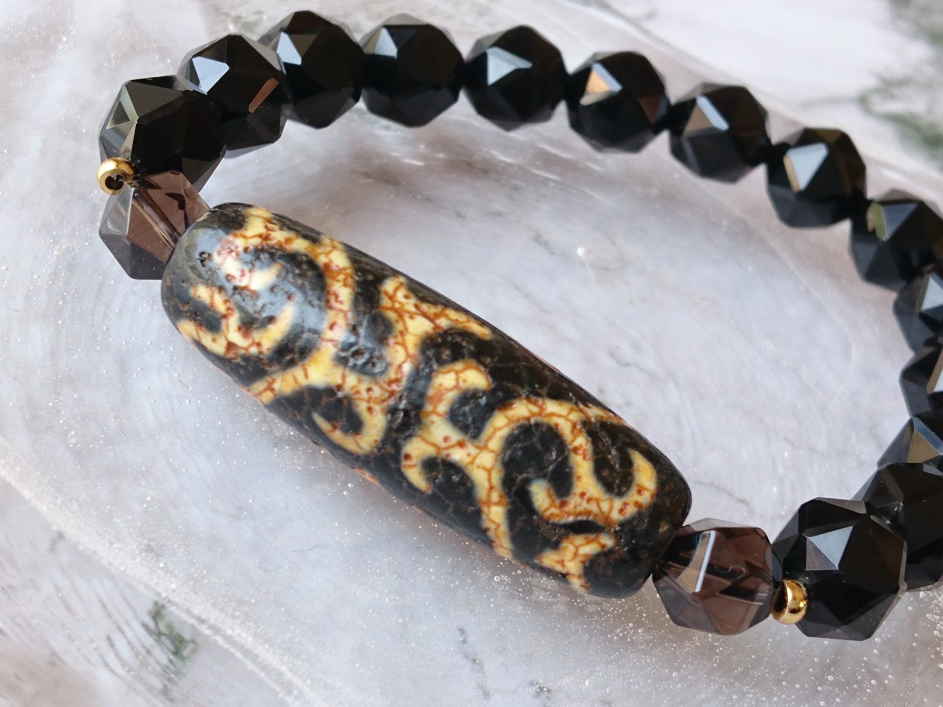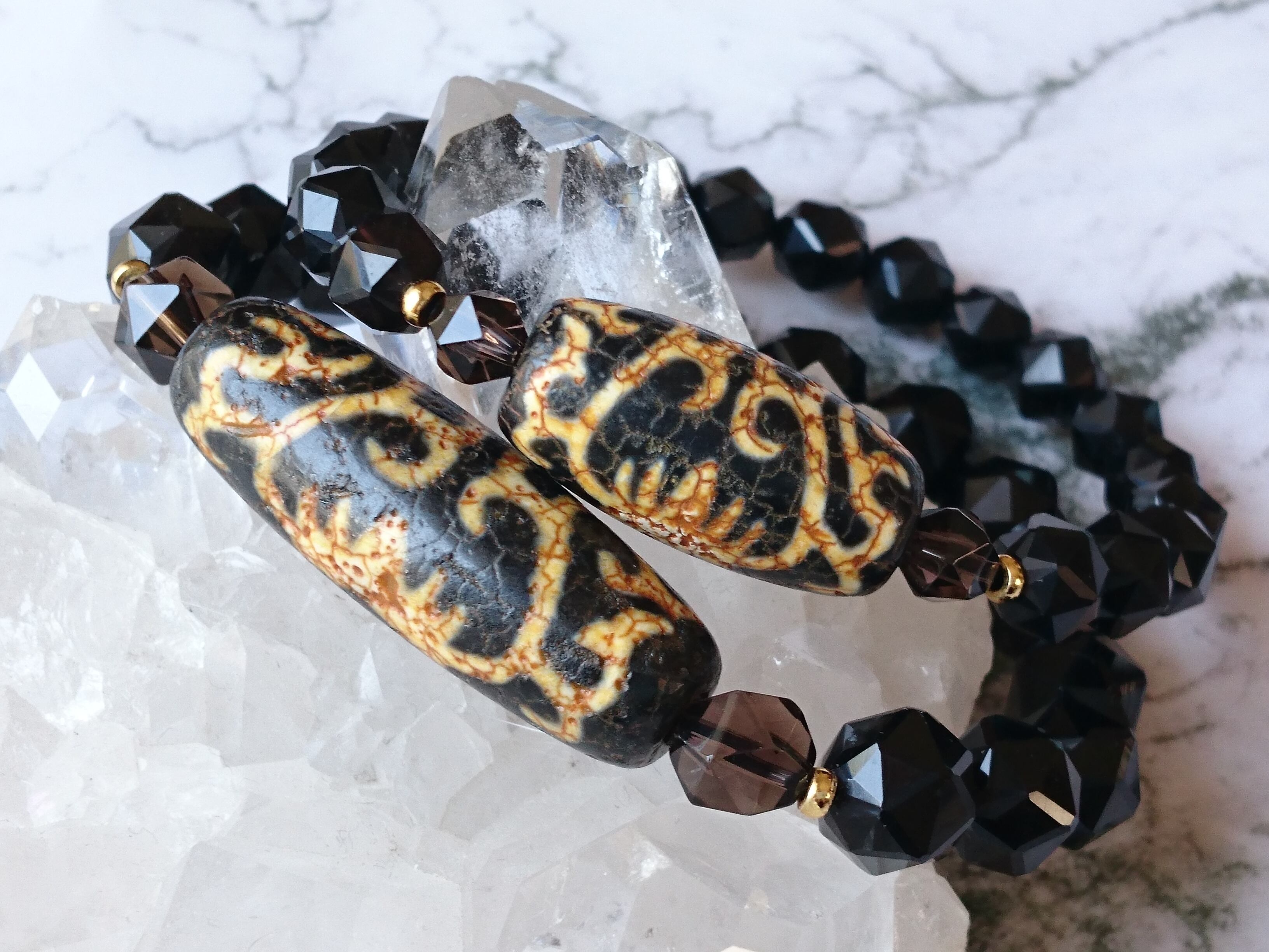 美しい模様がしっかり出た風化龍紋如意蓮花天珠と美しい輝きのチベットモリオンスターカットです✨