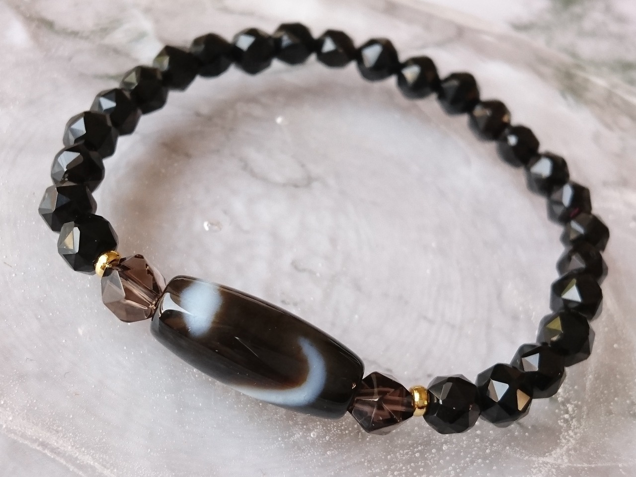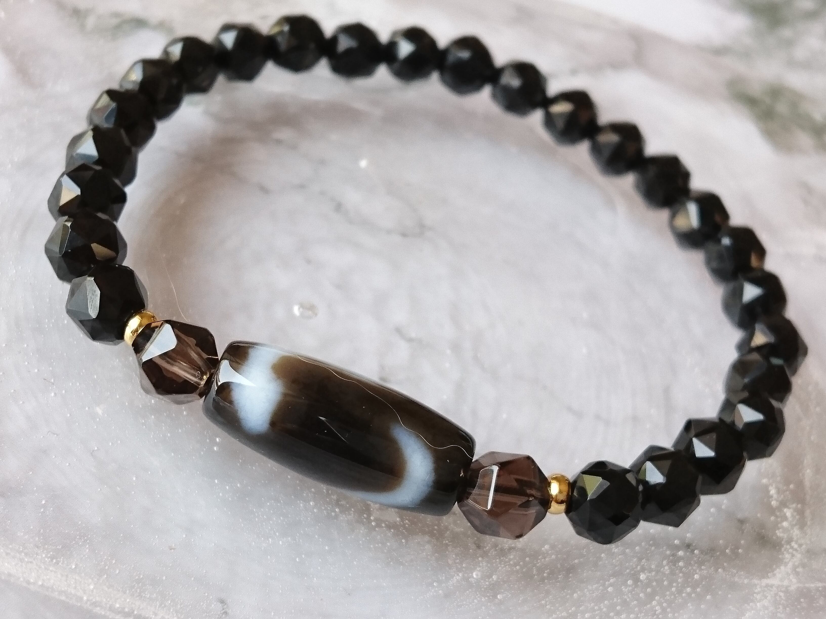 ミニ天珠と美しいカットのチベットモリオン、高品質スモーキーのスターカットです✨