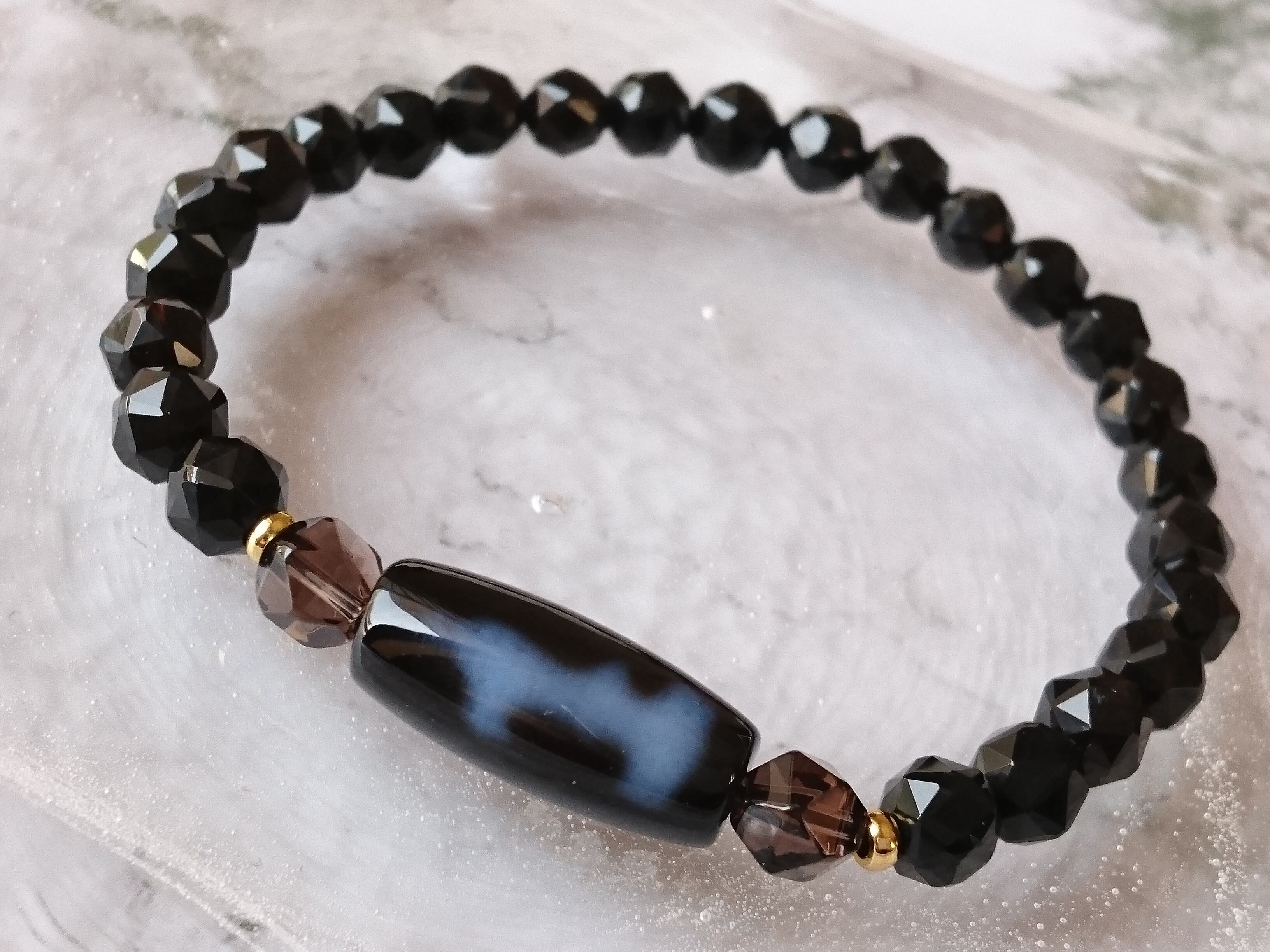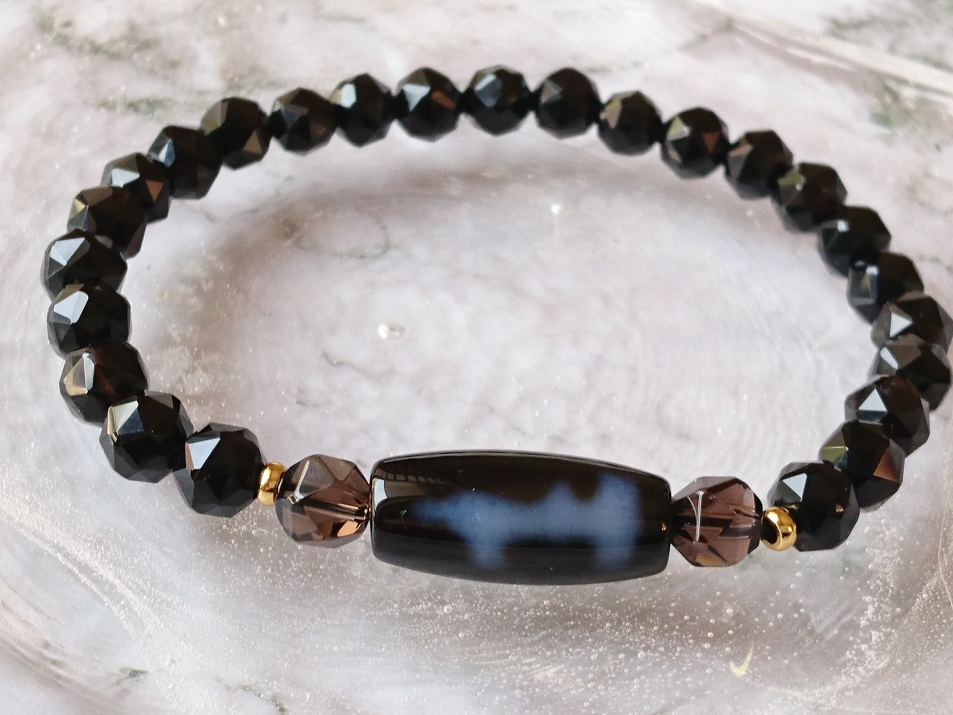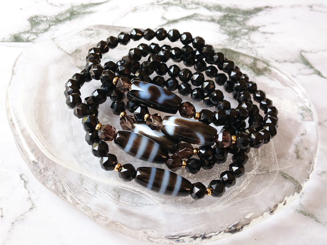ミニ天珠と美しいカットのチベットモリオン、高品質スモーキーのスターカットです✨