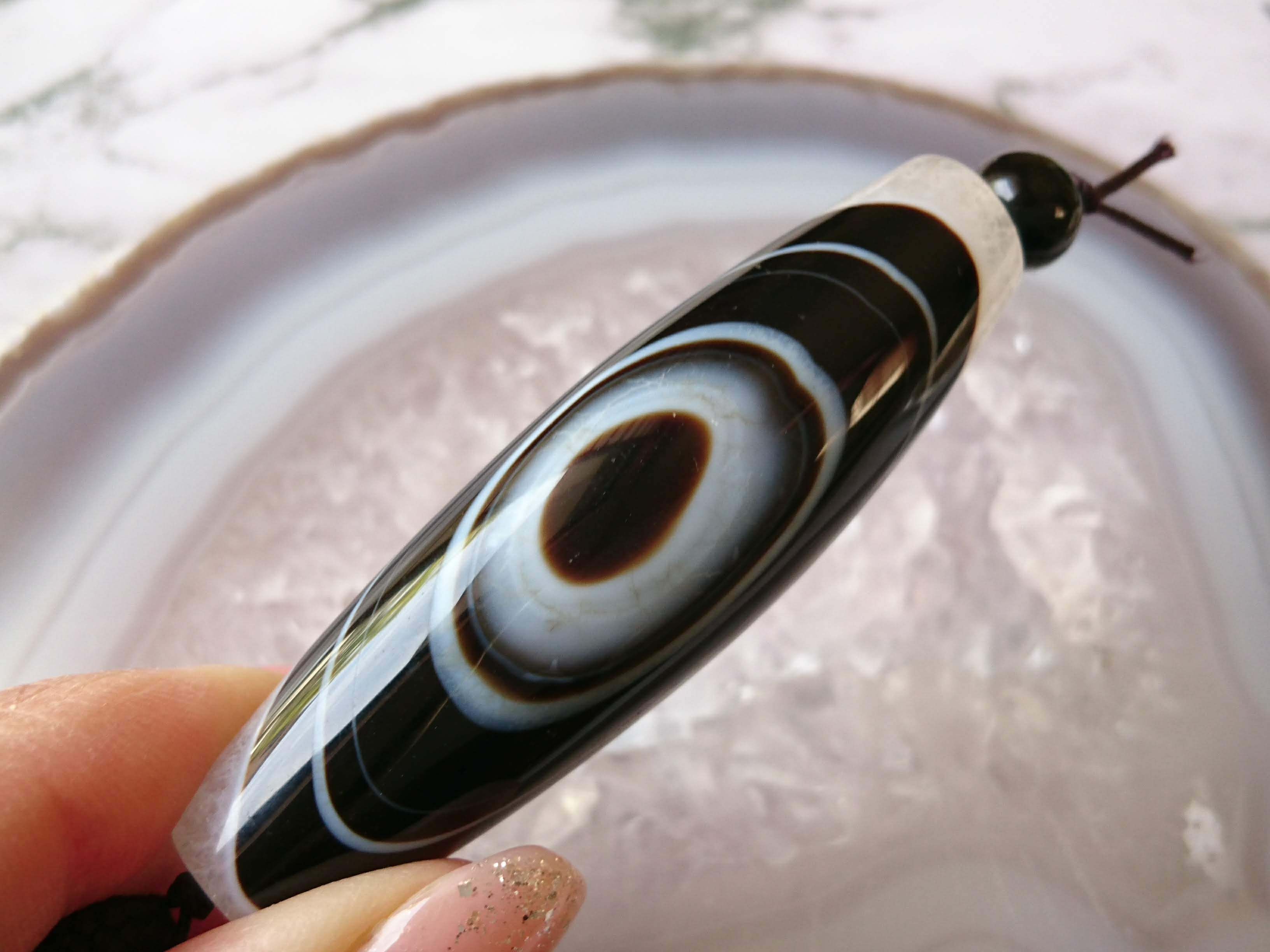 こちらの天眼天珠の模様は焼付けではなく、天然の瑪瑙の模様を削りだしたナチュラル✨