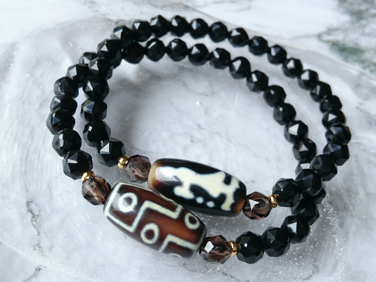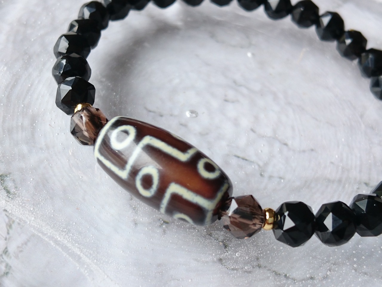 黒玉髄九眼天珠★チベットモリオンブレスレット