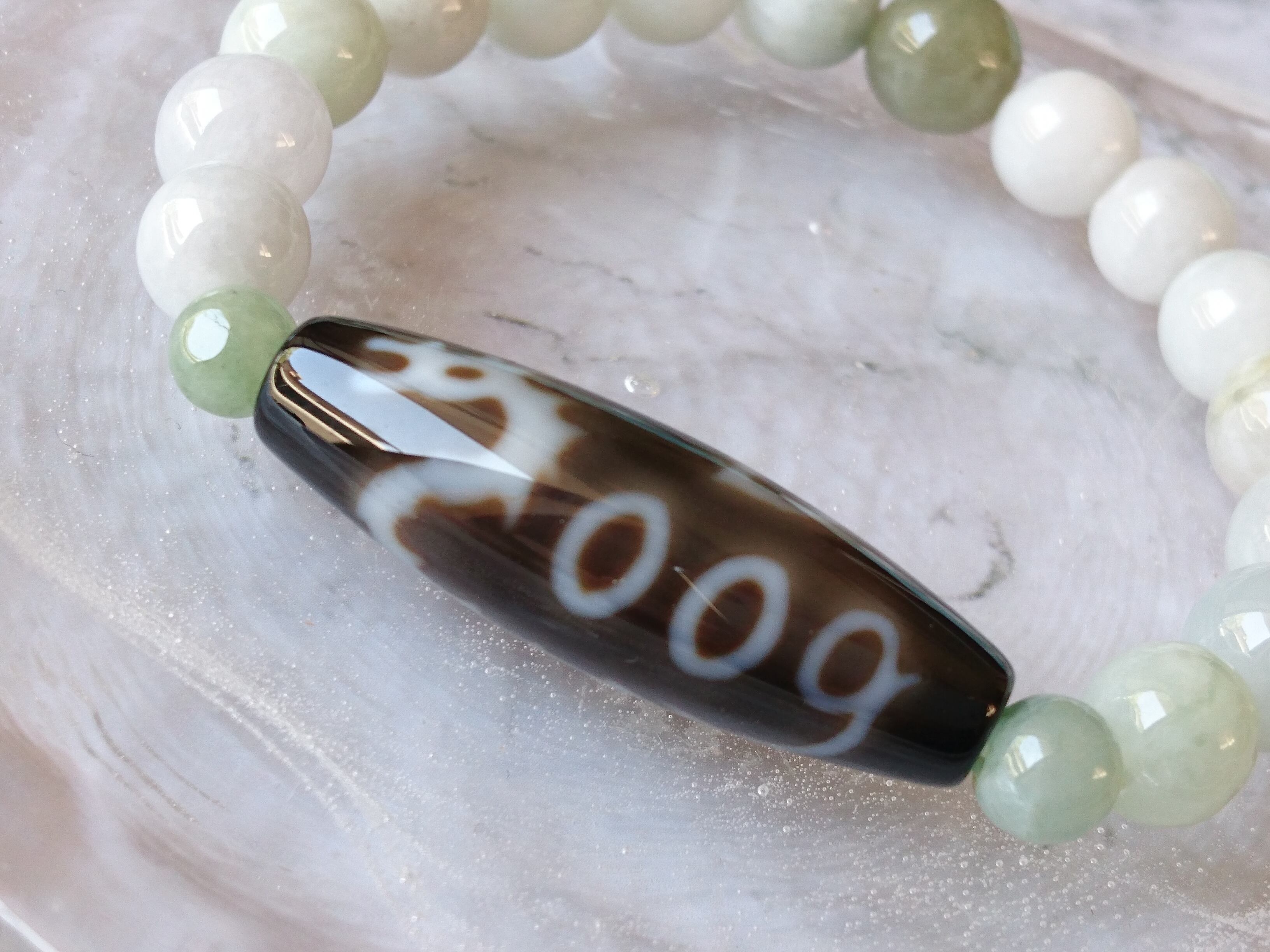 龍水蓮花三眼天珠✨ミャンマー翡翠✨ブレスレット