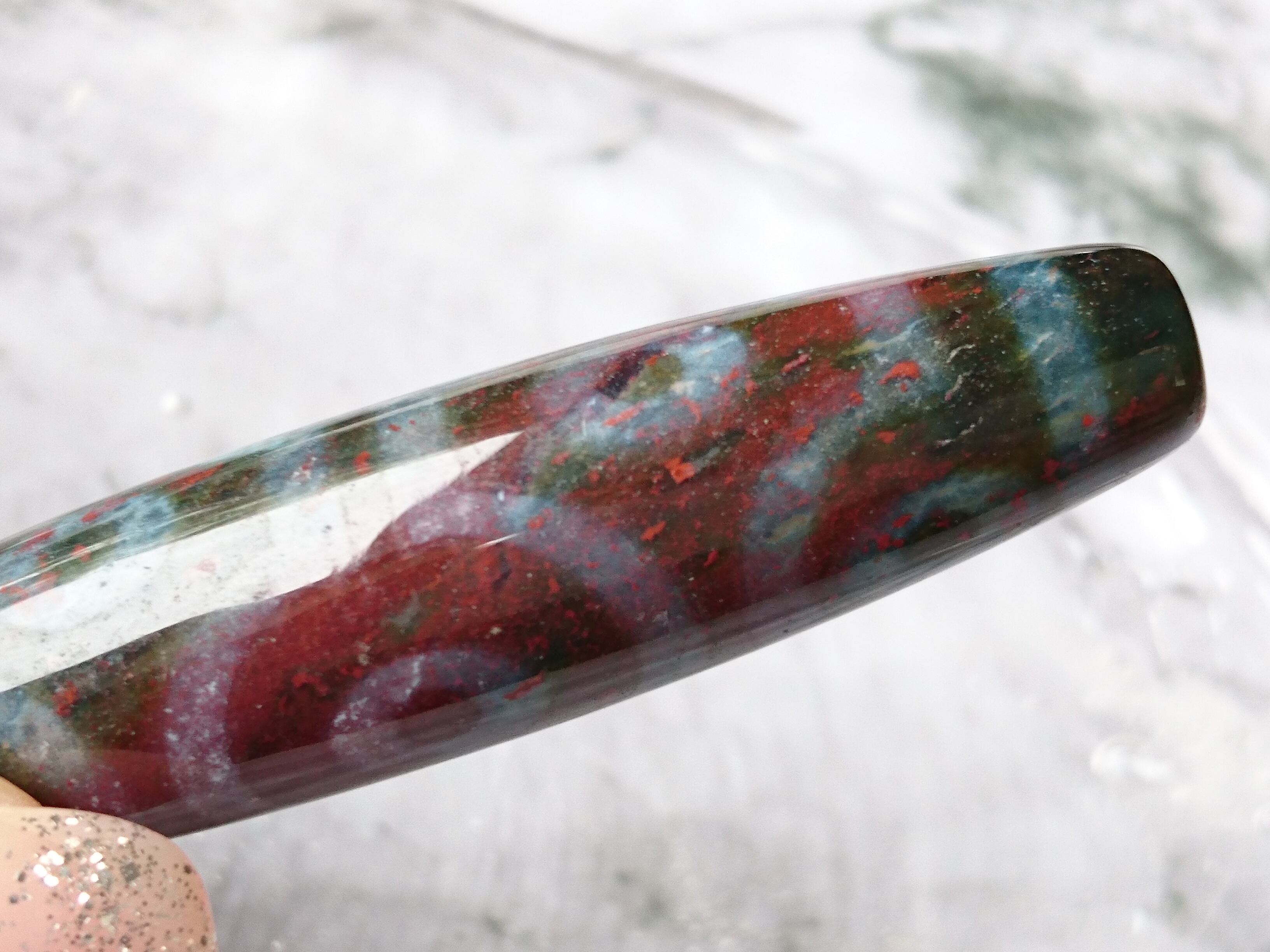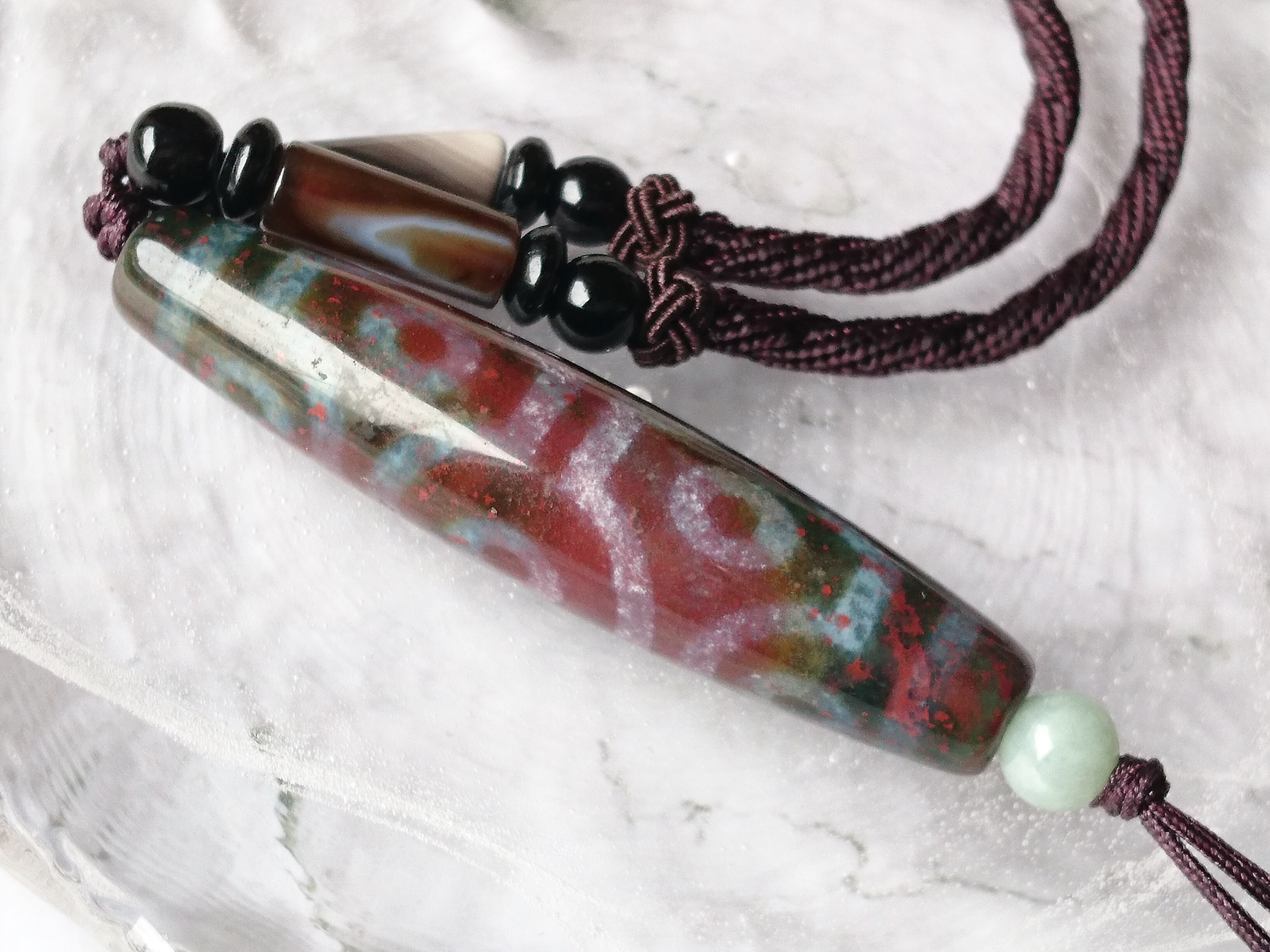 全面に朱砂入りグリーン瑪瑙の美しい十眼天珠です✨