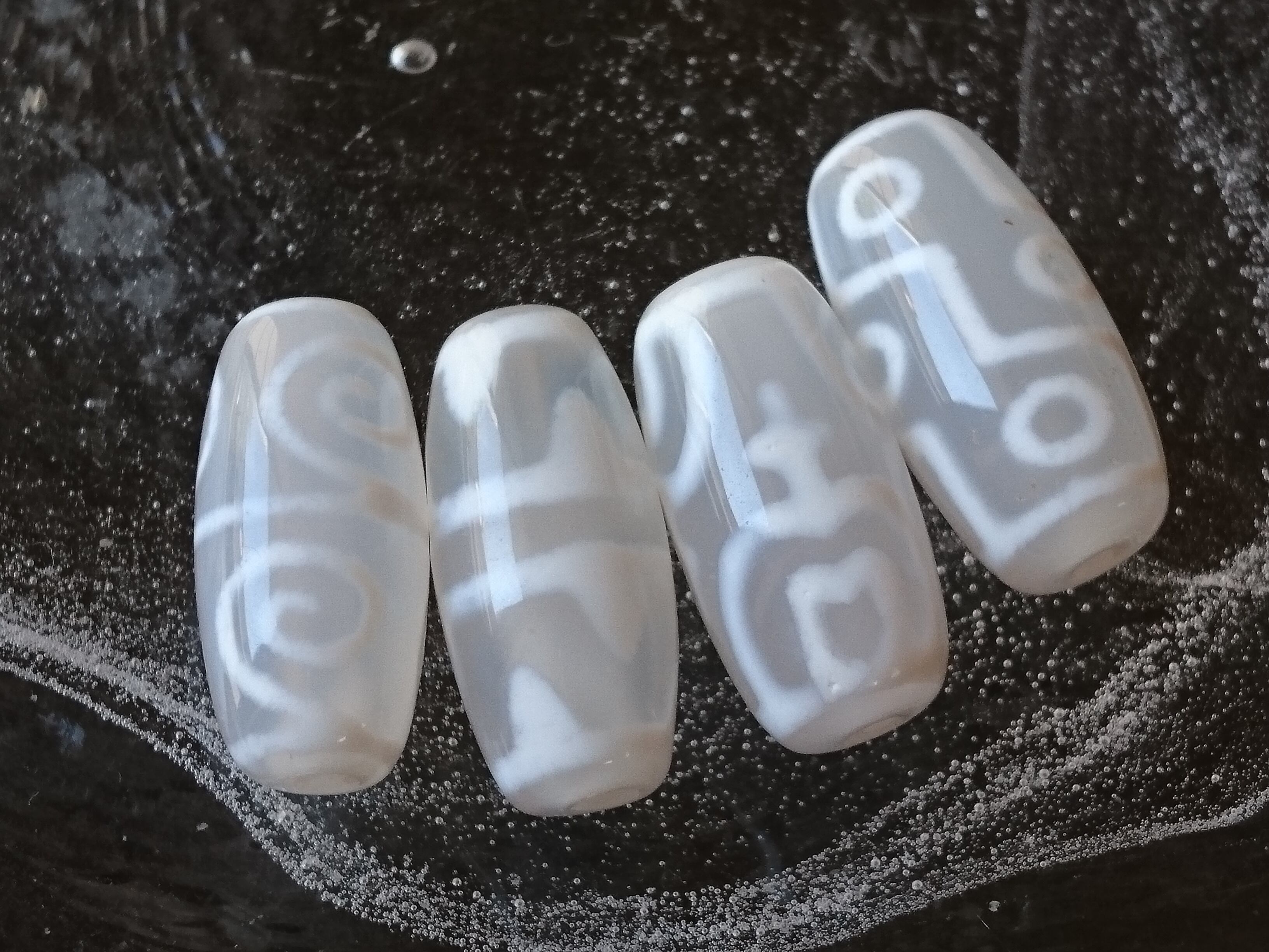 四線虎牙天珠とは、虎牙天珠の強化版を表す。非常に強力な魔除けであり、怨敵調伏、つまりはライバル、競争相手に勝ち、事故を除け、戦いに勝ちぬく力を授けてくれると云われている天珠です